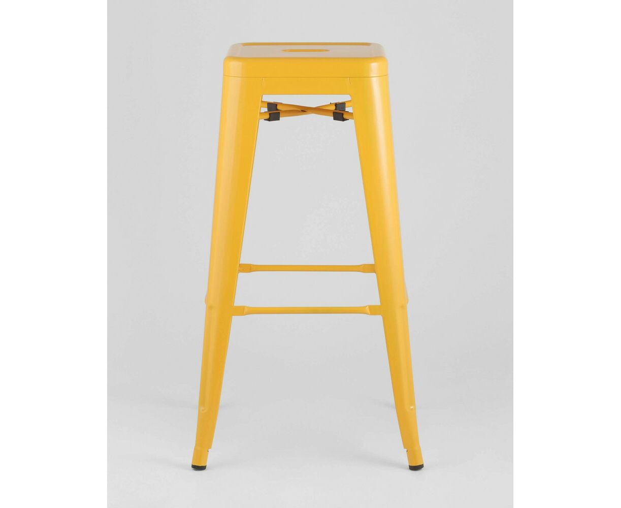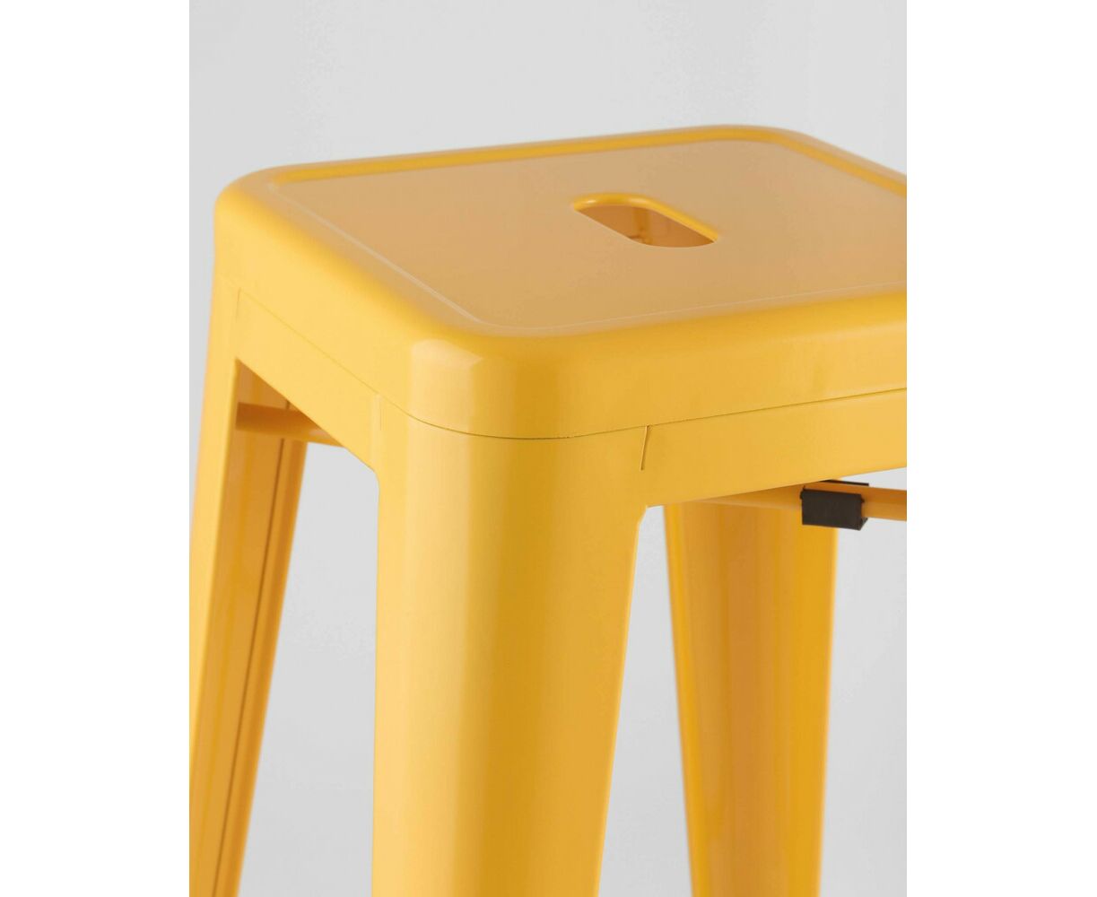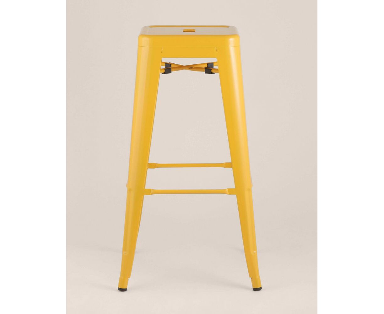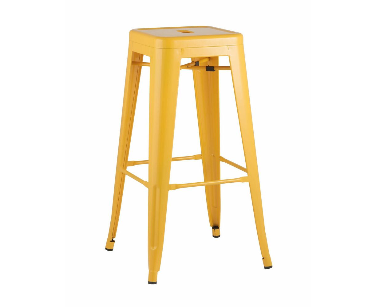Барный табурет Tolix – воплощение качества и практичности. Удобный металлический стул на четырех опорах окрашен в желтый глянцевый цвет. Он может стать стильным дополнением интерьера модного заведения или домашней столовой.