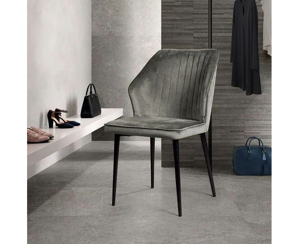 Изюминка стула Berg – невероятно тонкие металлические ножки черного матового цвета, излишне скошенные назад, как часть дизайнерской задумки. На ножках предусмотрены специальные пластиковые накладки, которые придают стулу дополнительную устойчивость и защищают пол от царапин.