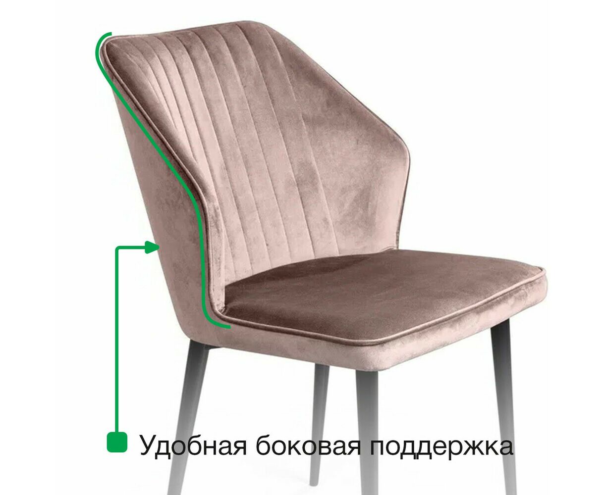Изюминка стула Berg – невероятно тонкие металлические ножки черного матового цвета, излишне скошенные назад, как часть дизайнерской задумки. На ножках предусмотрены специальные пластиковые накладки, которые придают стулу дополнительную устойчивость и защищают пол от царапин.