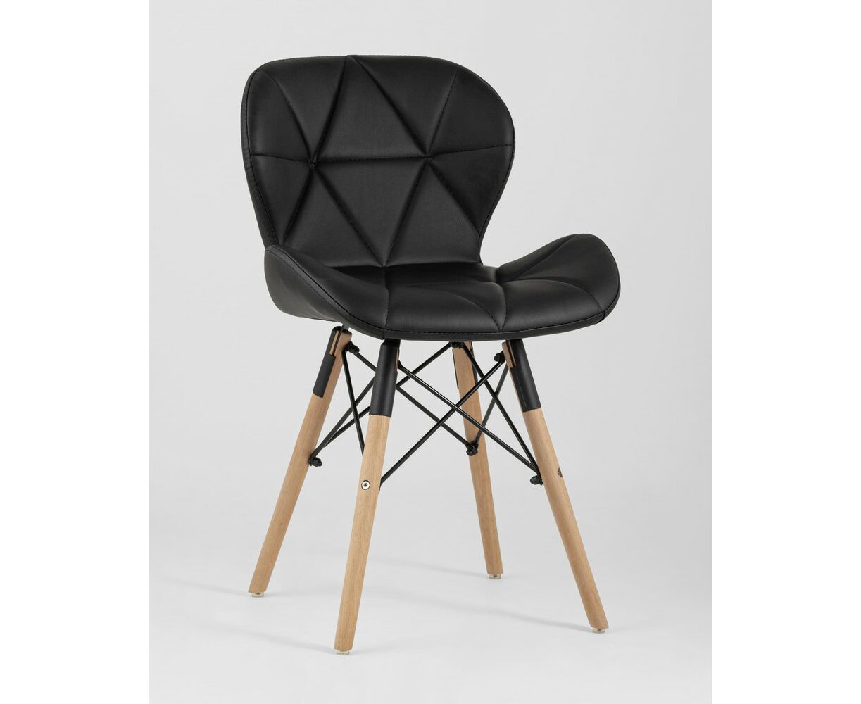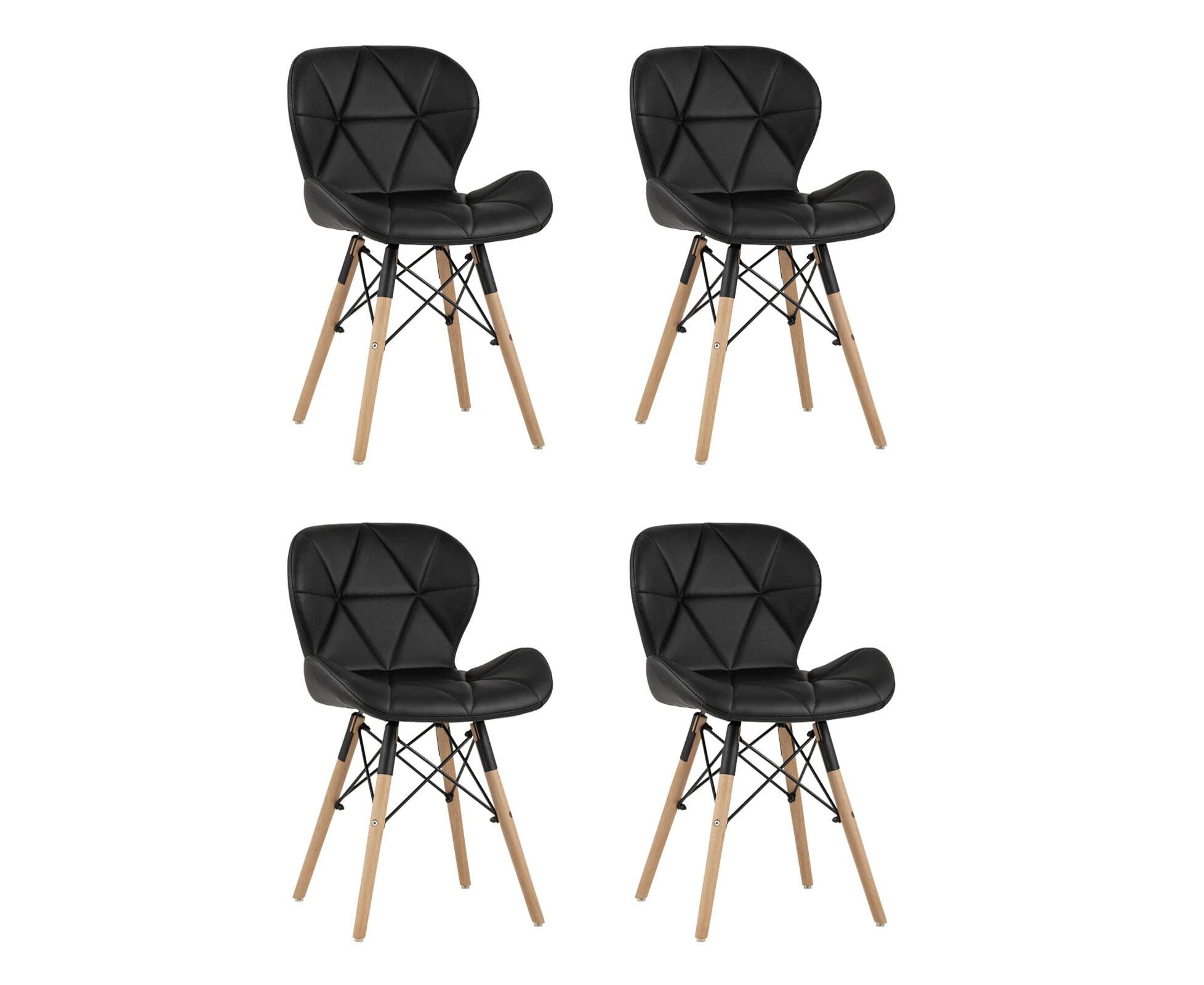 Комплект из четырех стульев Бон экокожа черный ножки из массива бука