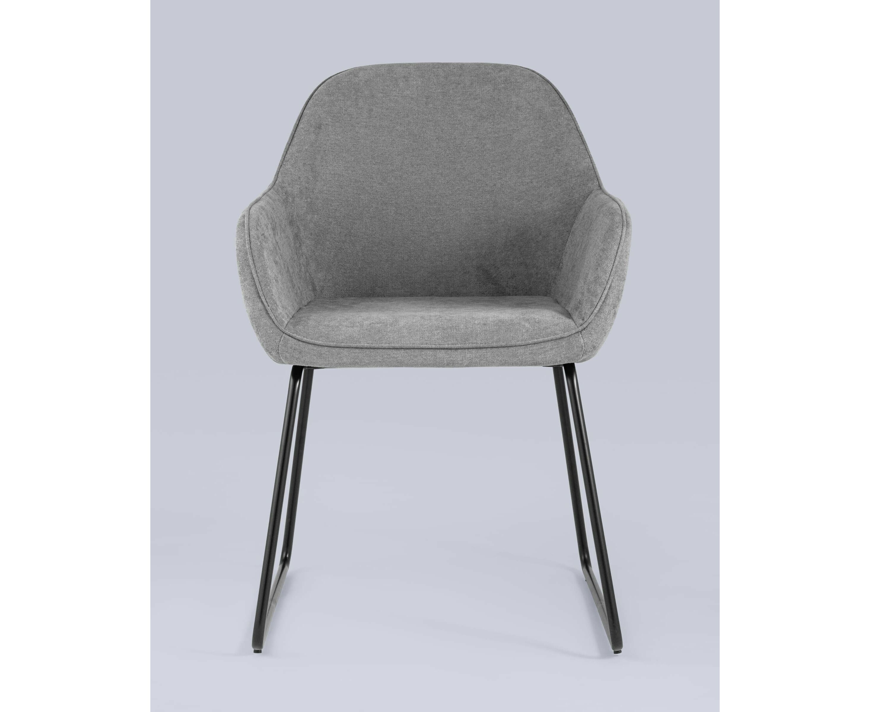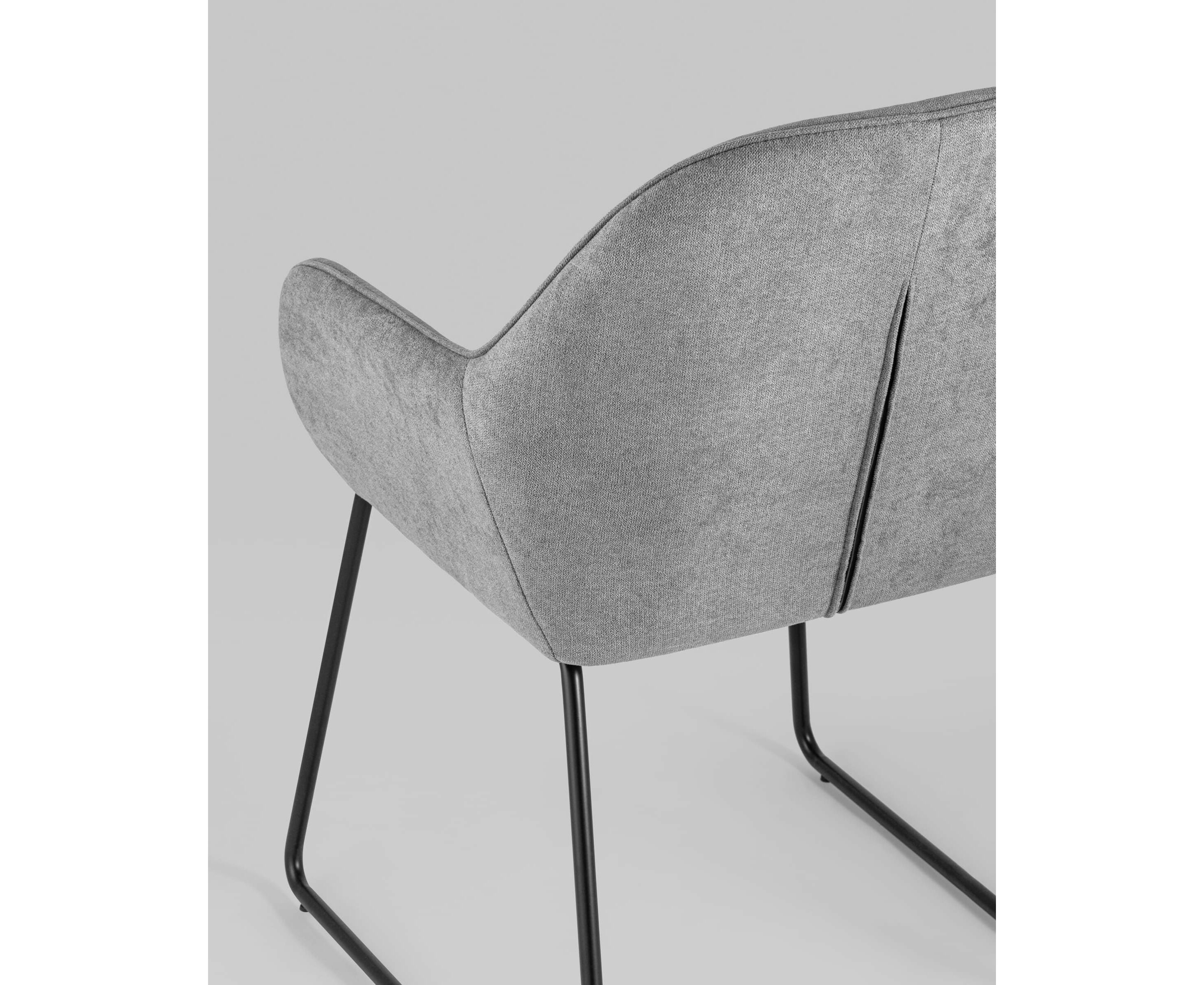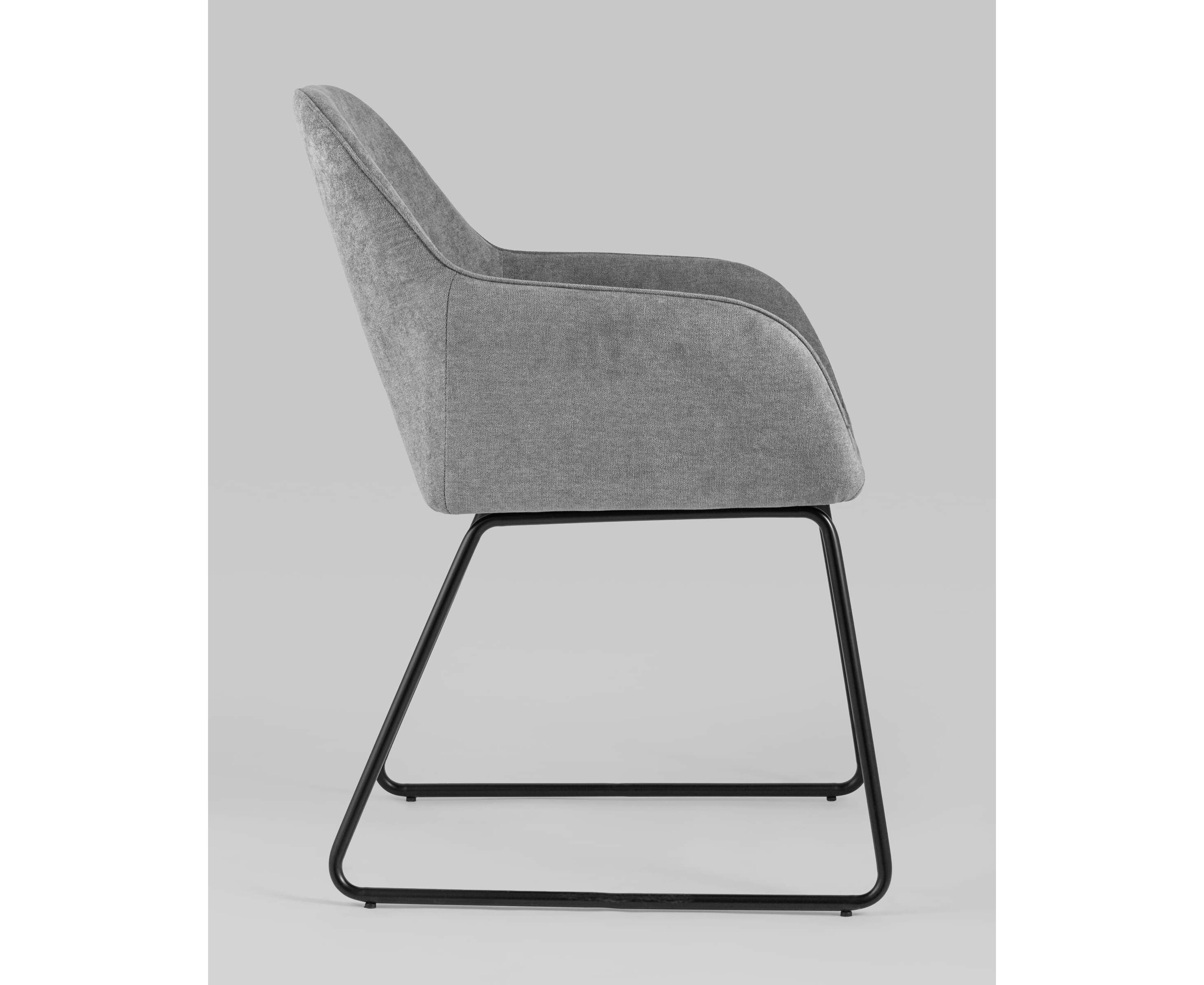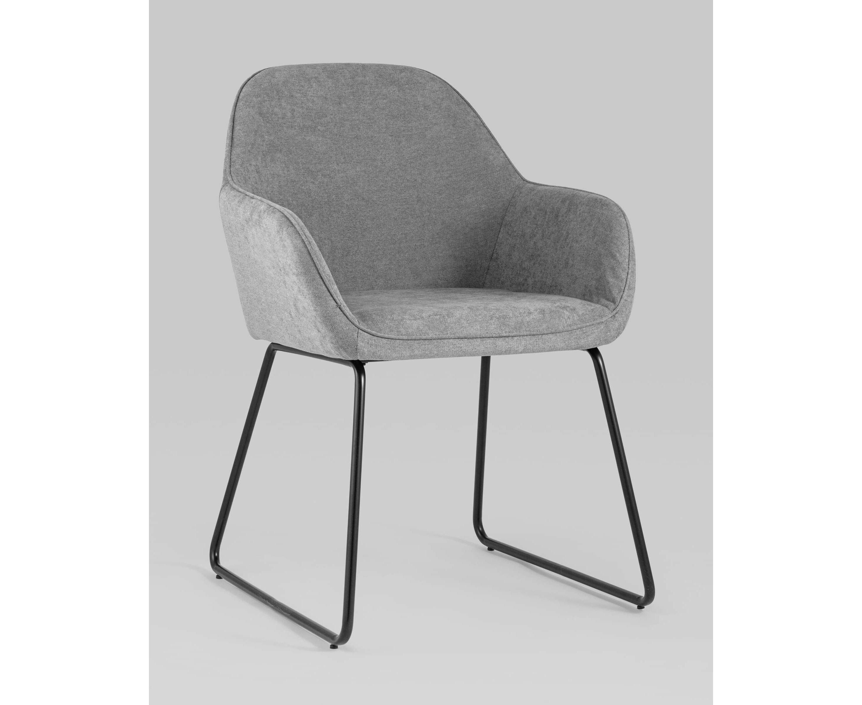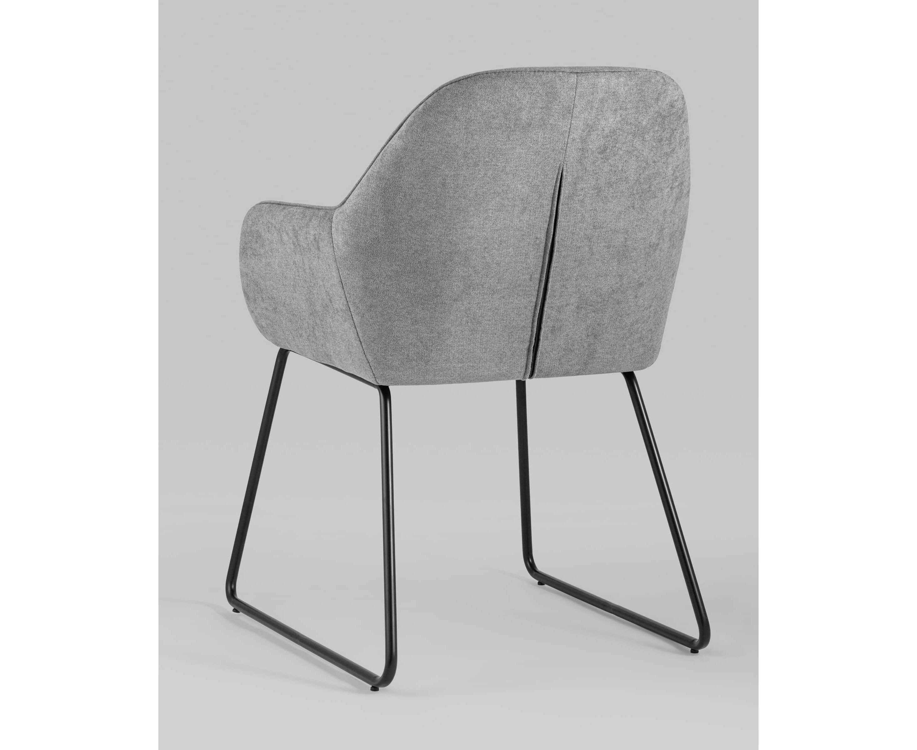Мягкий обеденный стул на ножках-полозьях черного цвета.