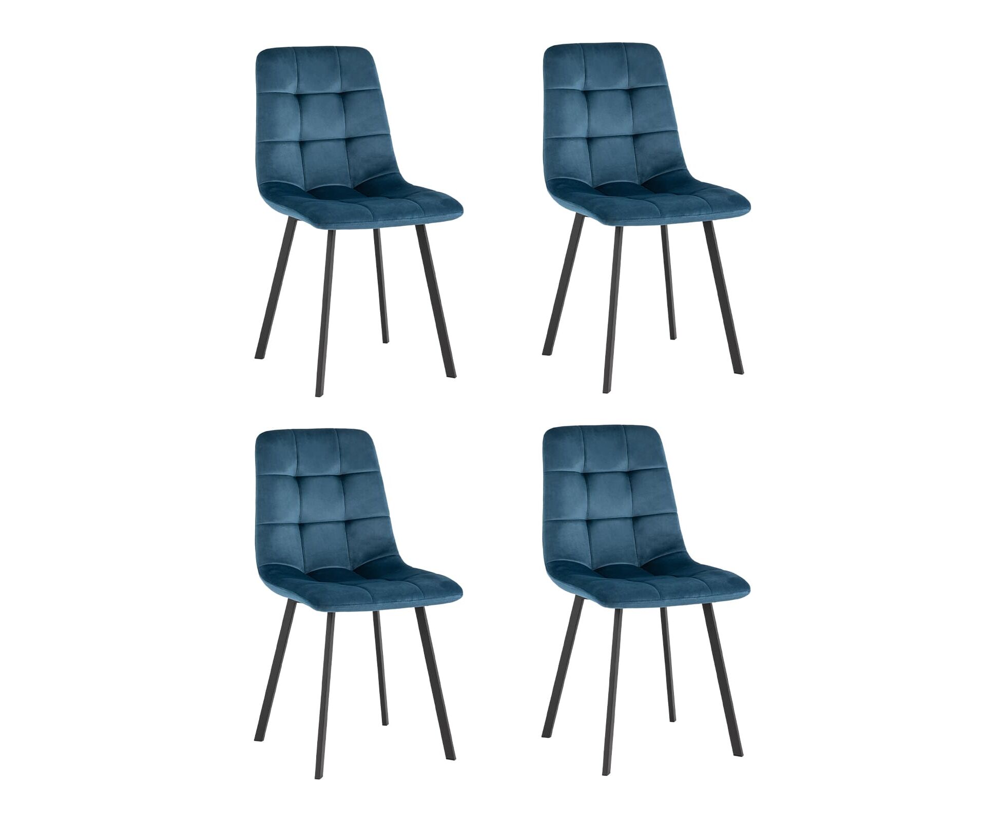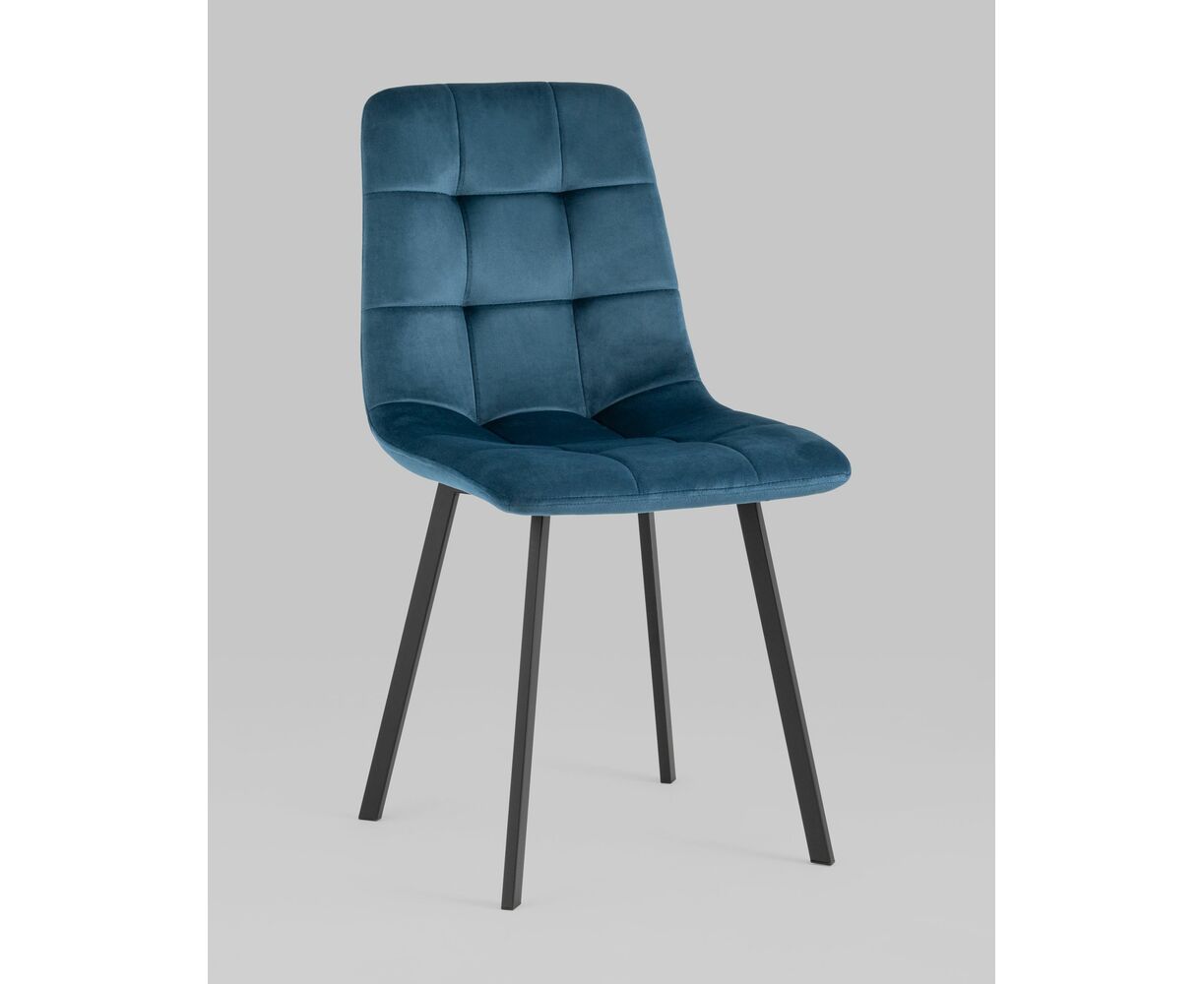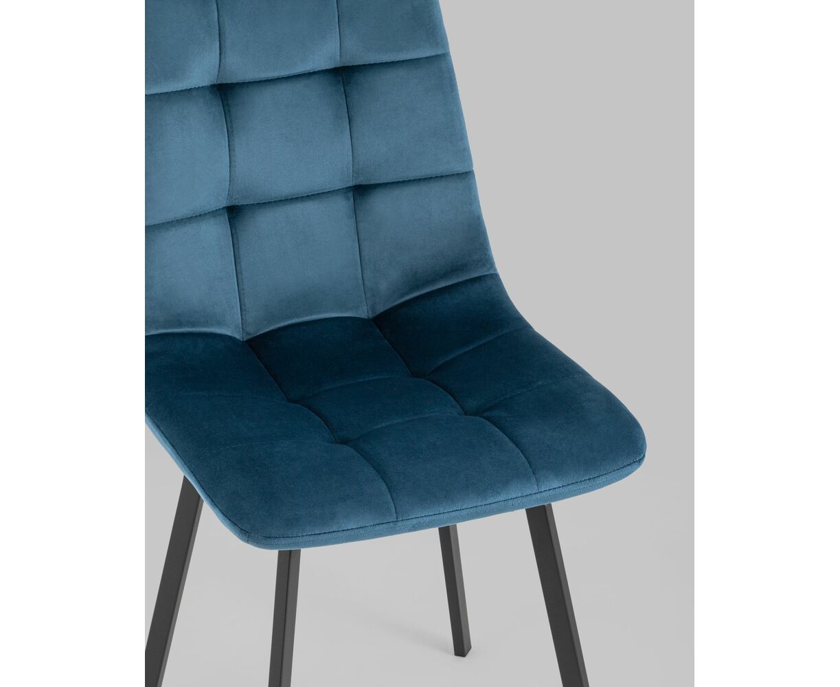 Комплект из четырех стульев Chilly велюр сине-зеленый ножки металл черные
