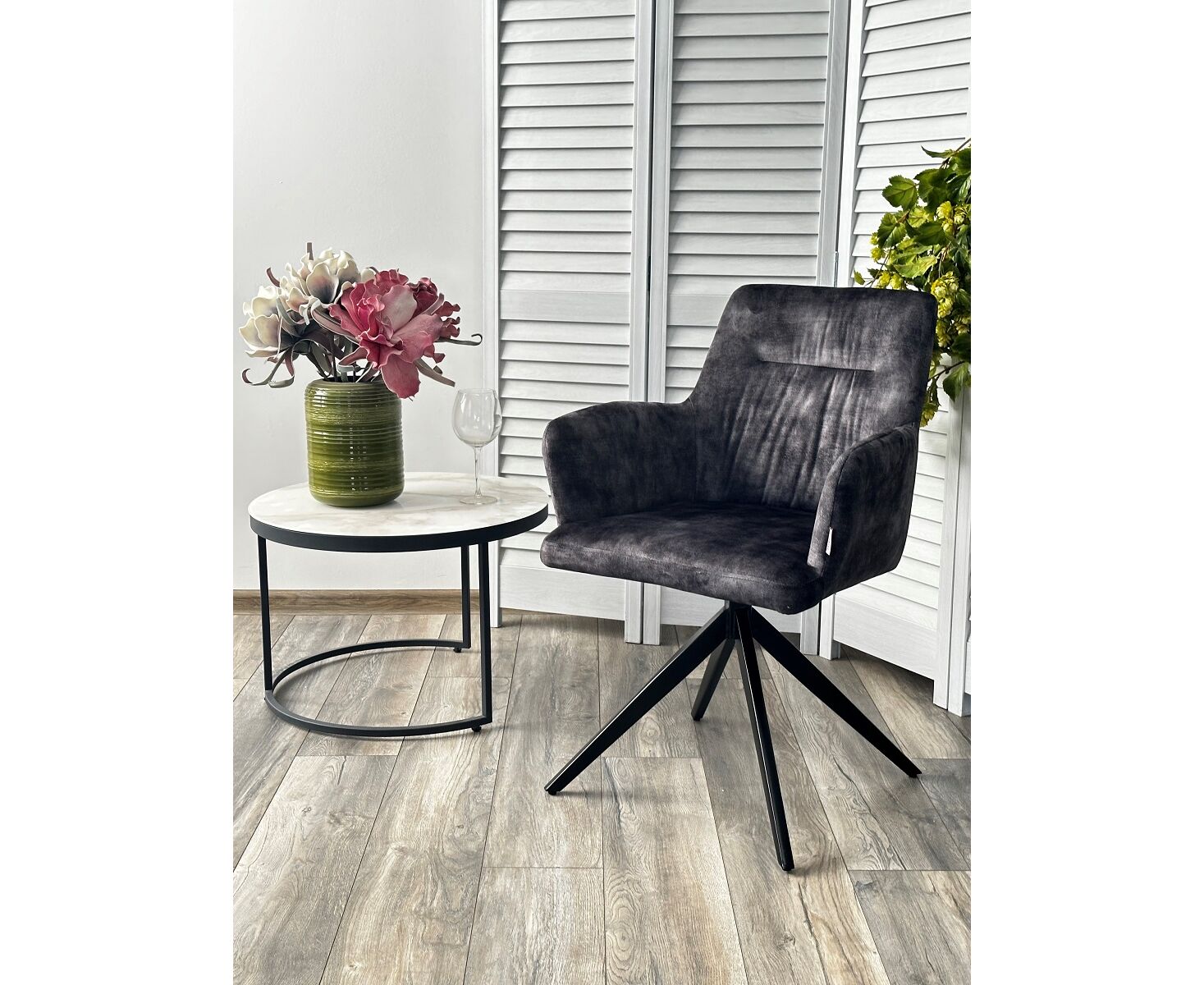 Стул DANTE 360 град.поворот UF912-06В античный серый, велюр без "пальчиковый"/черный, ®DISAUR