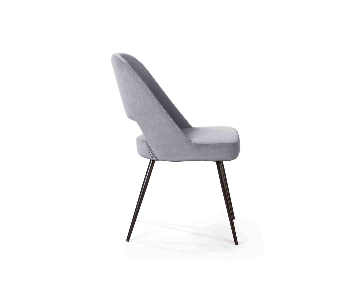 Утонченный образ завершается конусовидными ножками черного матового цвета. На ножках предусмотрены специальные пластиковые накладки, которые придают стулу дополнительную устойчивость и защищают пол от царапин.