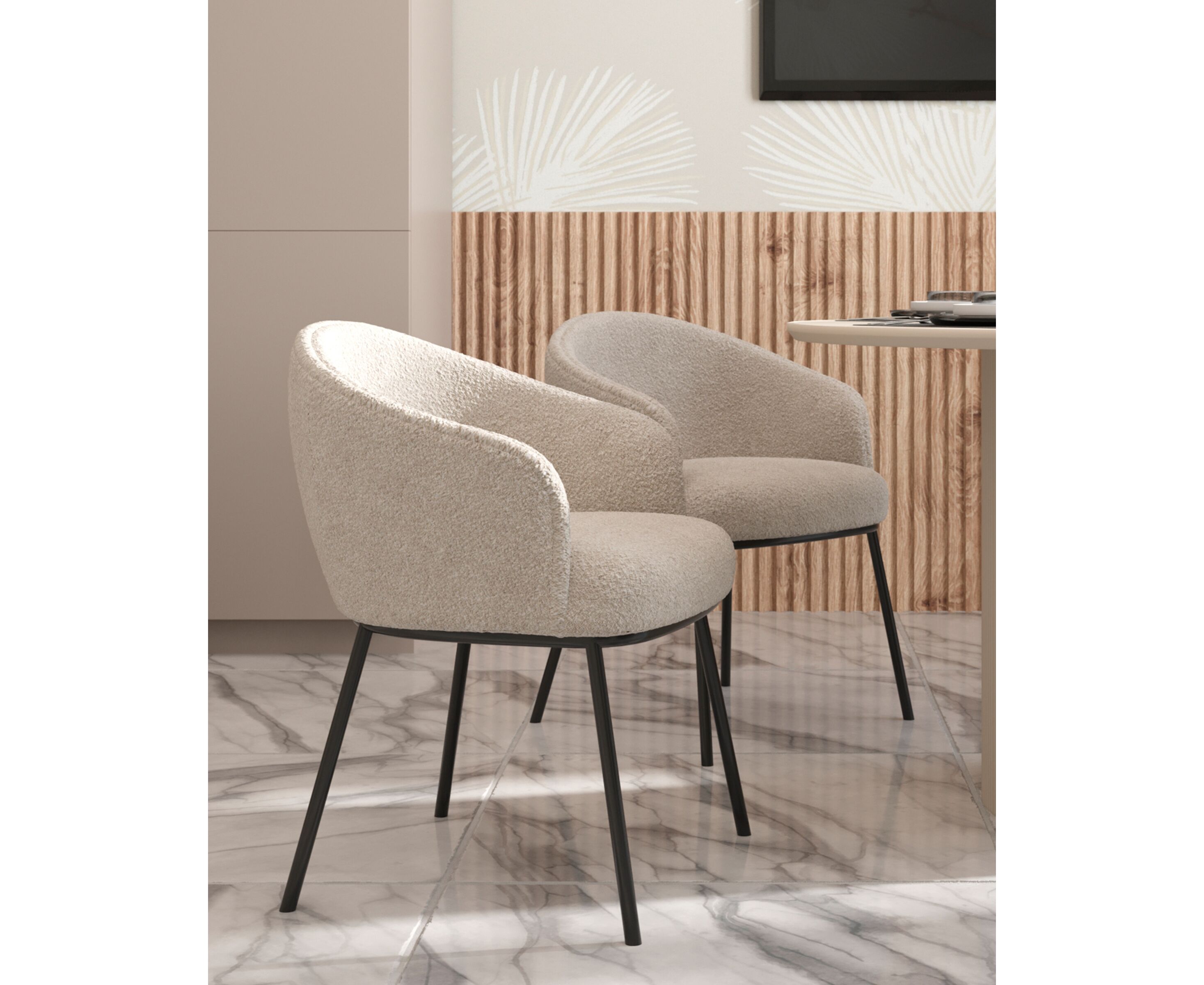 Стул обеденный Дон с подлокотниками бежевый тканевая обивка, металлические ножки