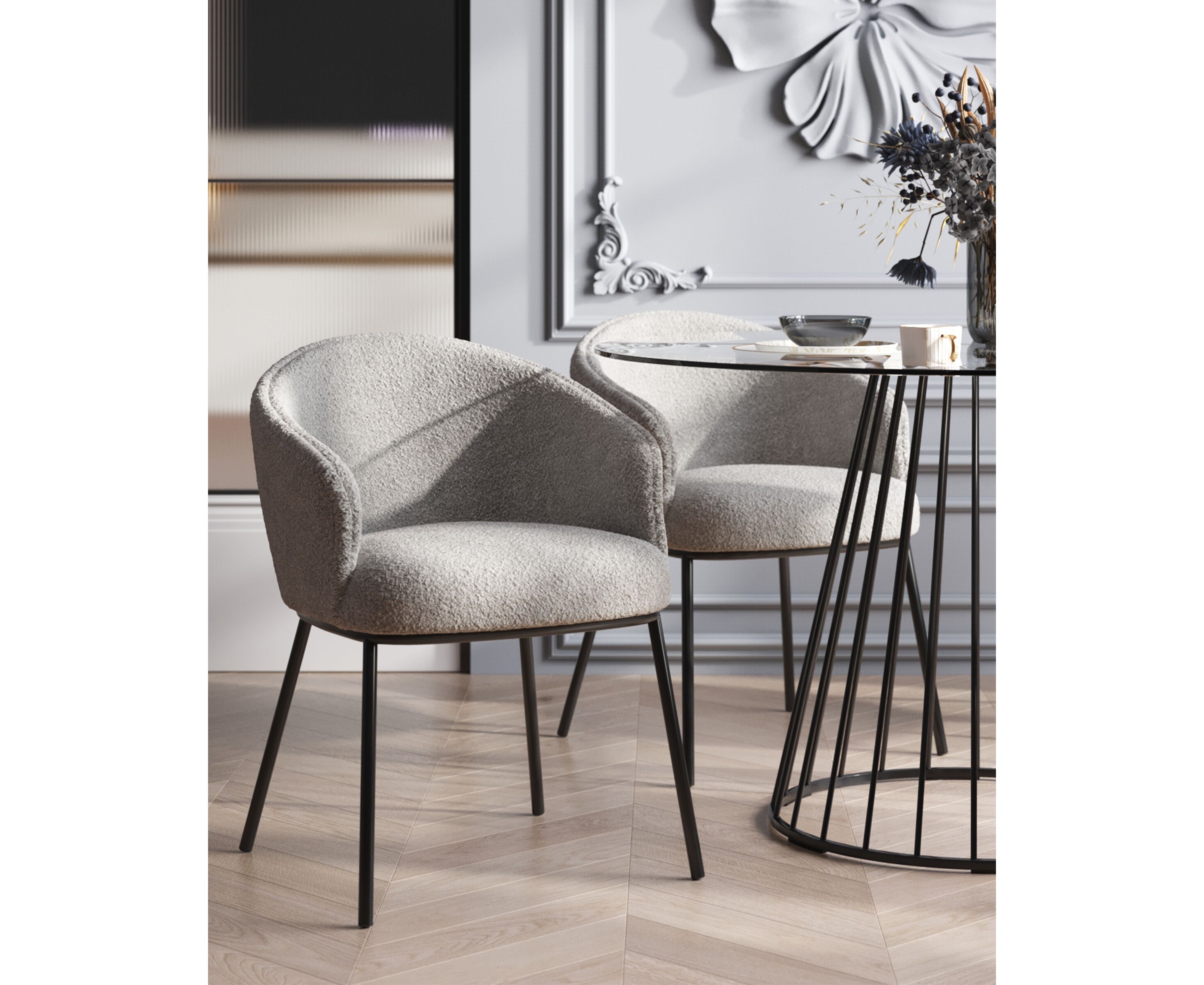 Стул обеденный Дон с подлокотниками серый тканевая обивка, металлические ножки