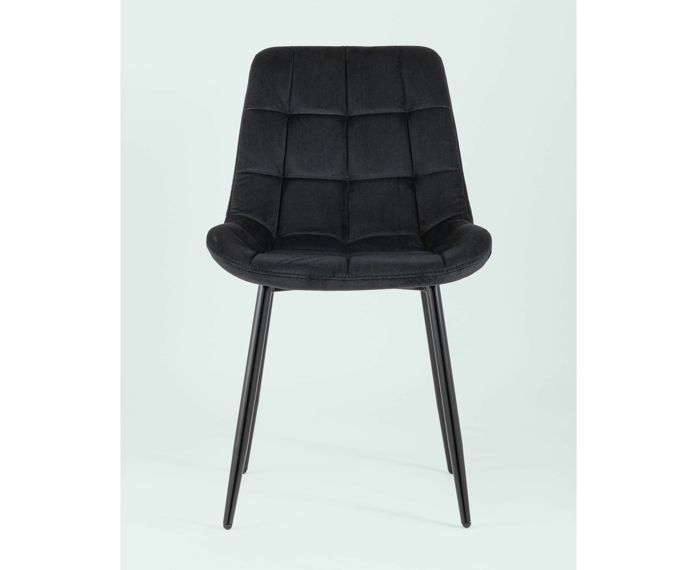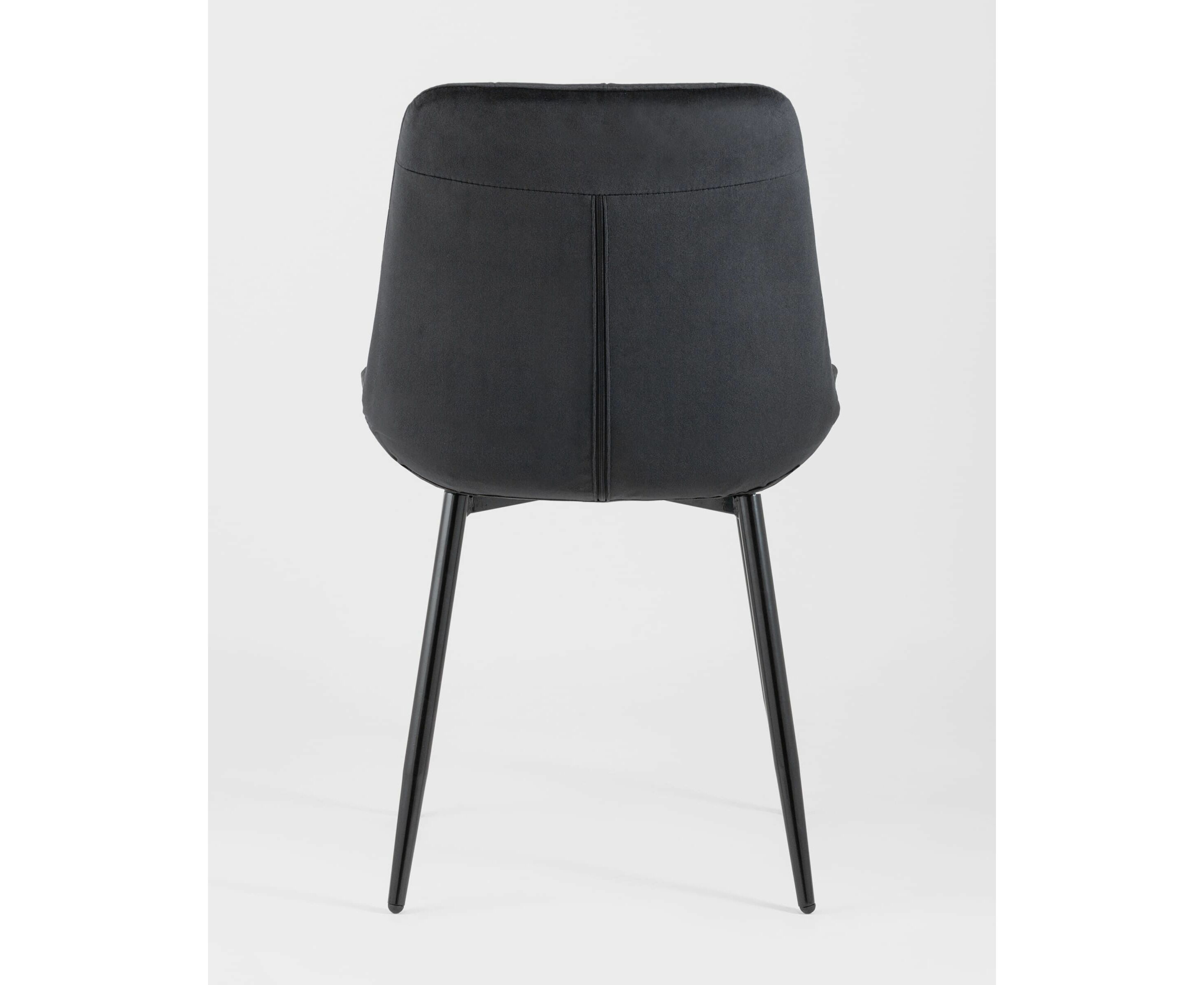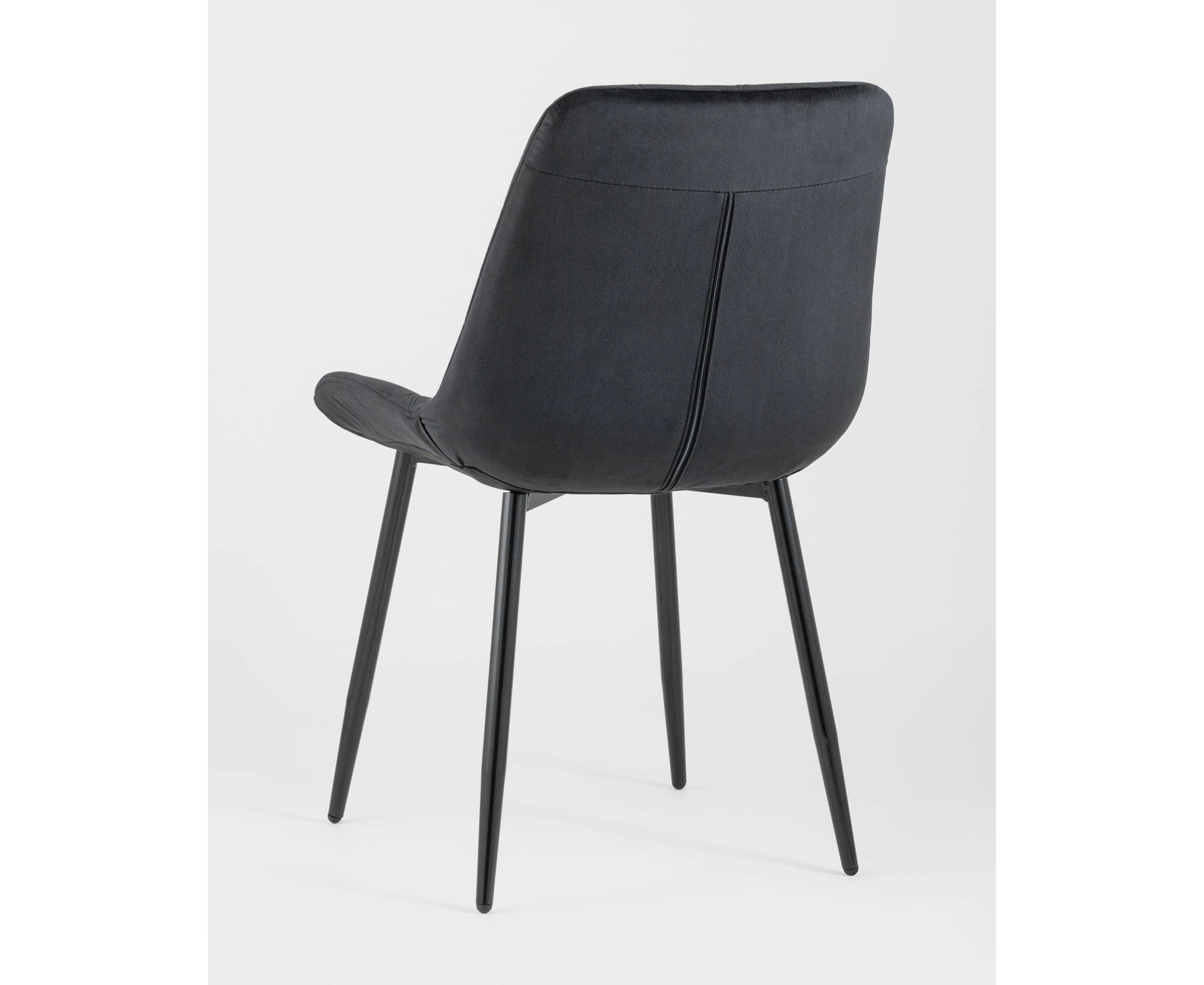 Чёрный кухонный стул в мягкой обивке из велюра без подлокотников. Анатомическая форма сиденья обеспечивает удобство, а декоративная стяжка придает объём и защищает от образования вмятин. Металлические ножки с крестовидным каркасом выдерживают значительные нагрузки. Подпятники ножек не испортят напольное покрытие и предохраняют от скольжения. Лаконичный дизайн украсит любой кухонный интерьер.