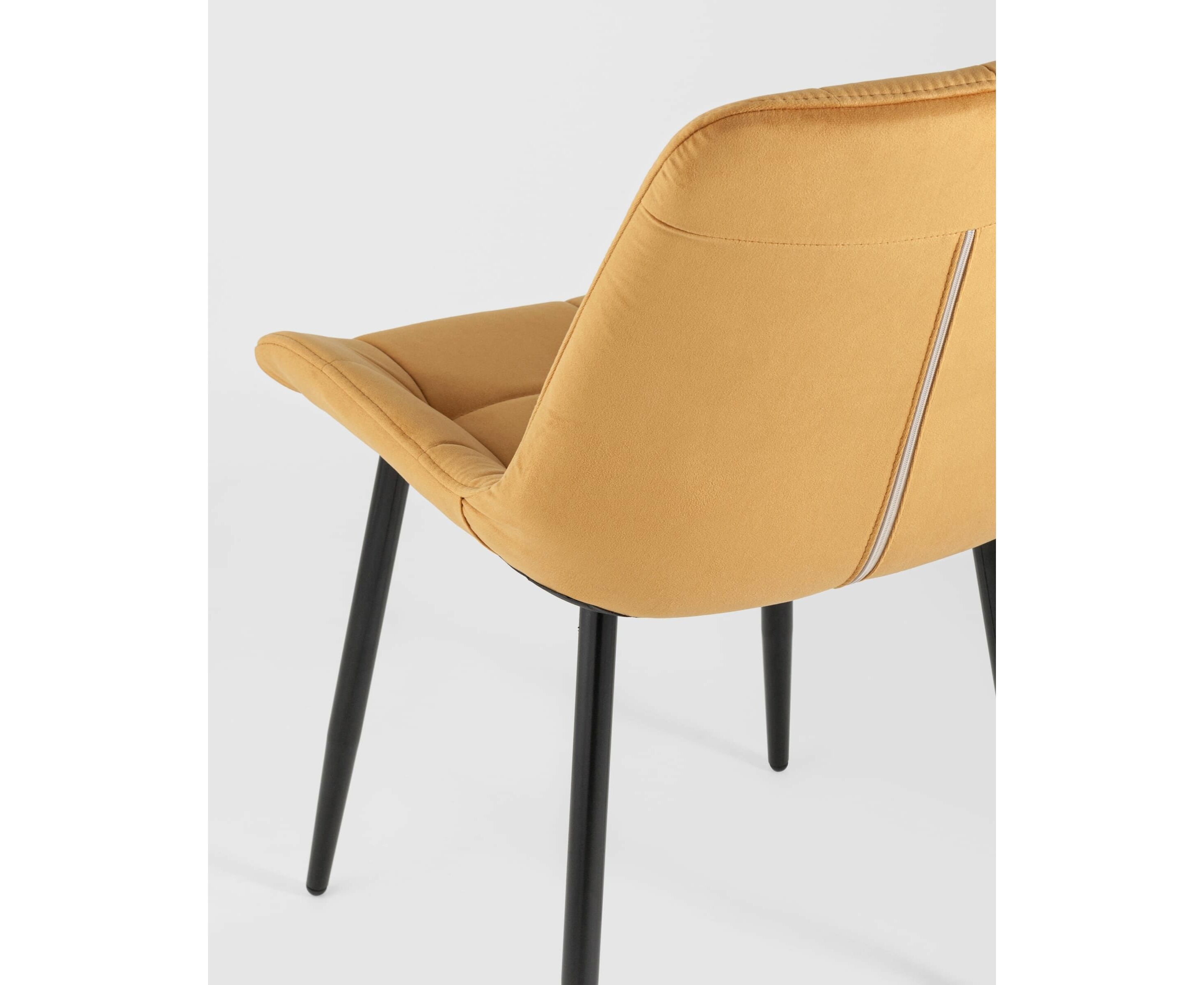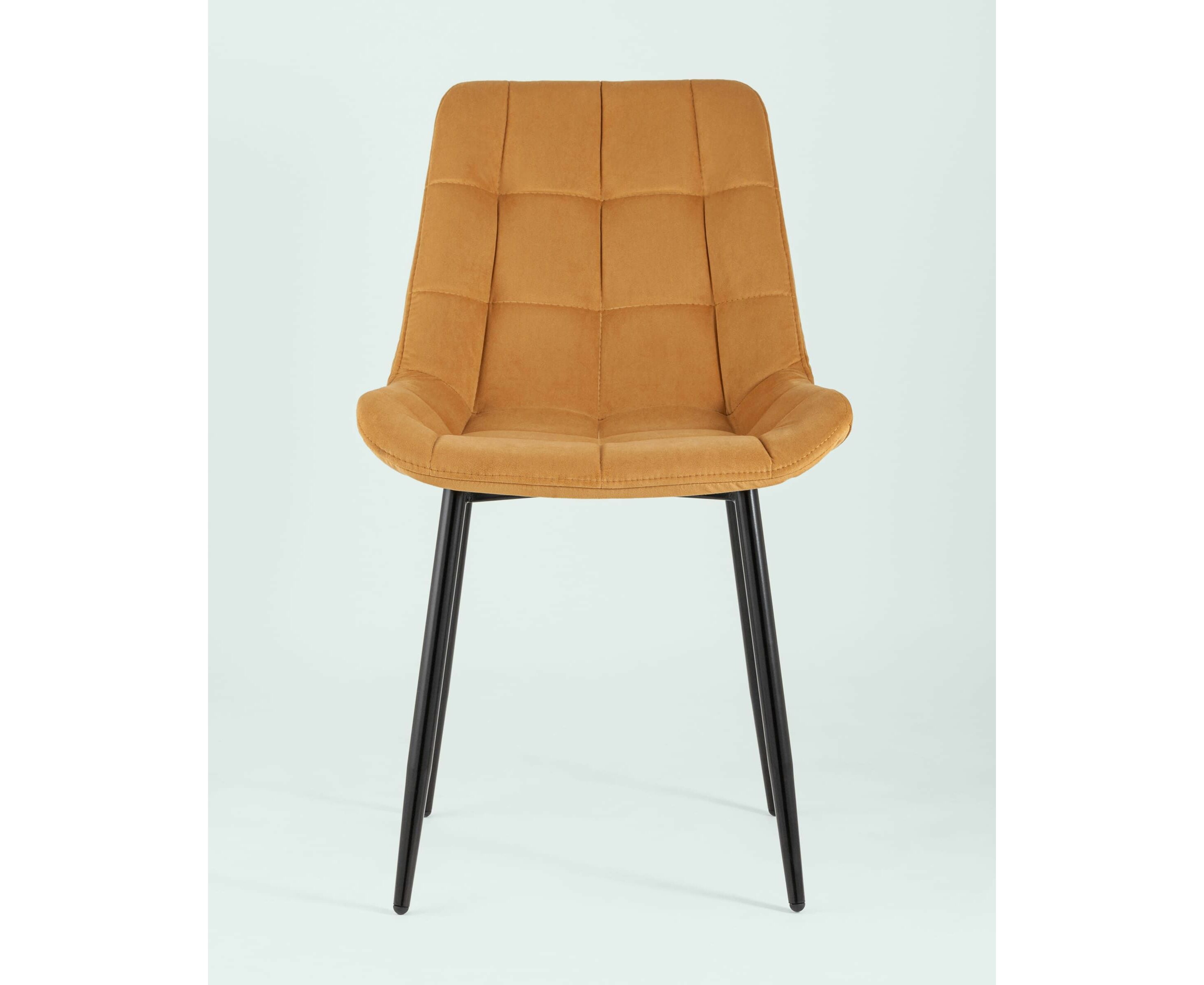 Кухонный стул в мягкой обивке из велюра без подлокотников. Анатомическая форма сиденья обеспечивает удобство, а декоративная стяжка придает объём и защищает от образования вмятин. Металлические ножки с крестовидным каркасом выдерживают значительные нагрузки. Подпятники ножек не испортят напольное покрытие и предохраняют от скольжения. Лаконичный дизайн украсит любой кухонный интерьер.