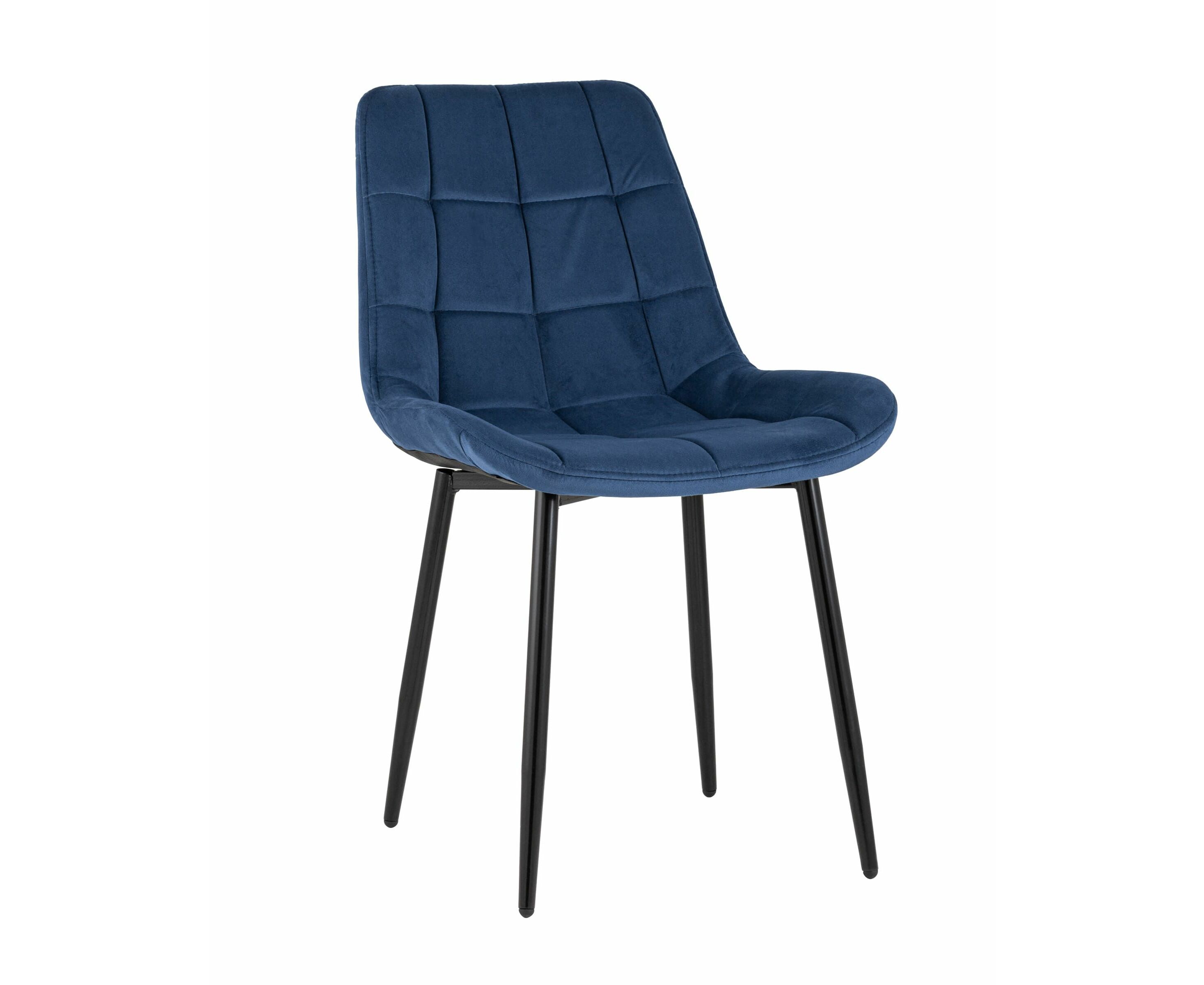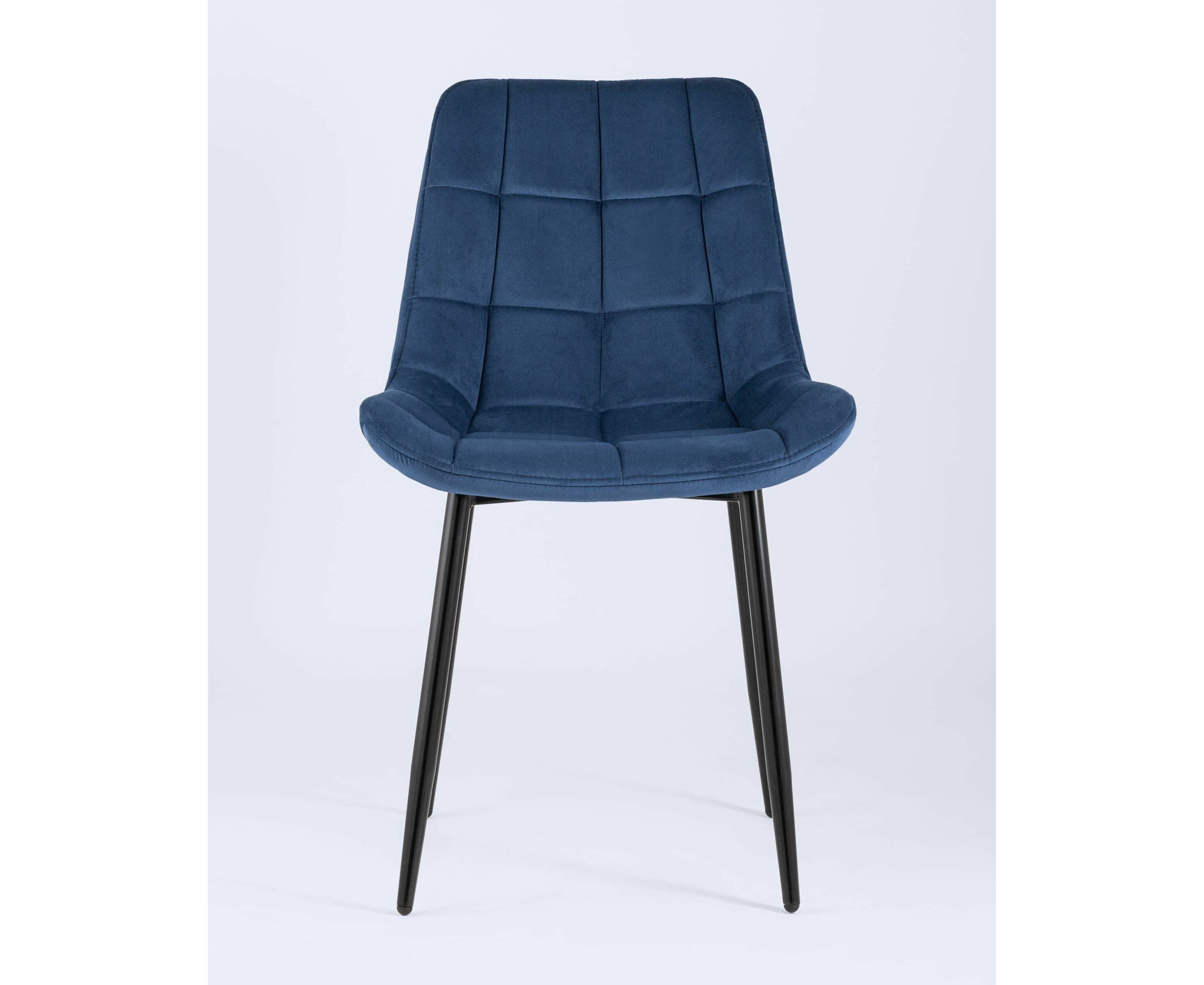 Кухонный стул синего цвета в мягкой обивке из велюра без подлокотников. Анатомическая форма сиденья обеспечивает удобство, а декоративная стяжка придает объём и защищает от образования вмятин. Металлические ножки с крестовидным каркасом выдерживают значительные нагрузки. Подпятники ножек не испортят напольное покрытие и предохраняют от скольжения. Лаконичный дизайн украсит любой кухонный интерьер.