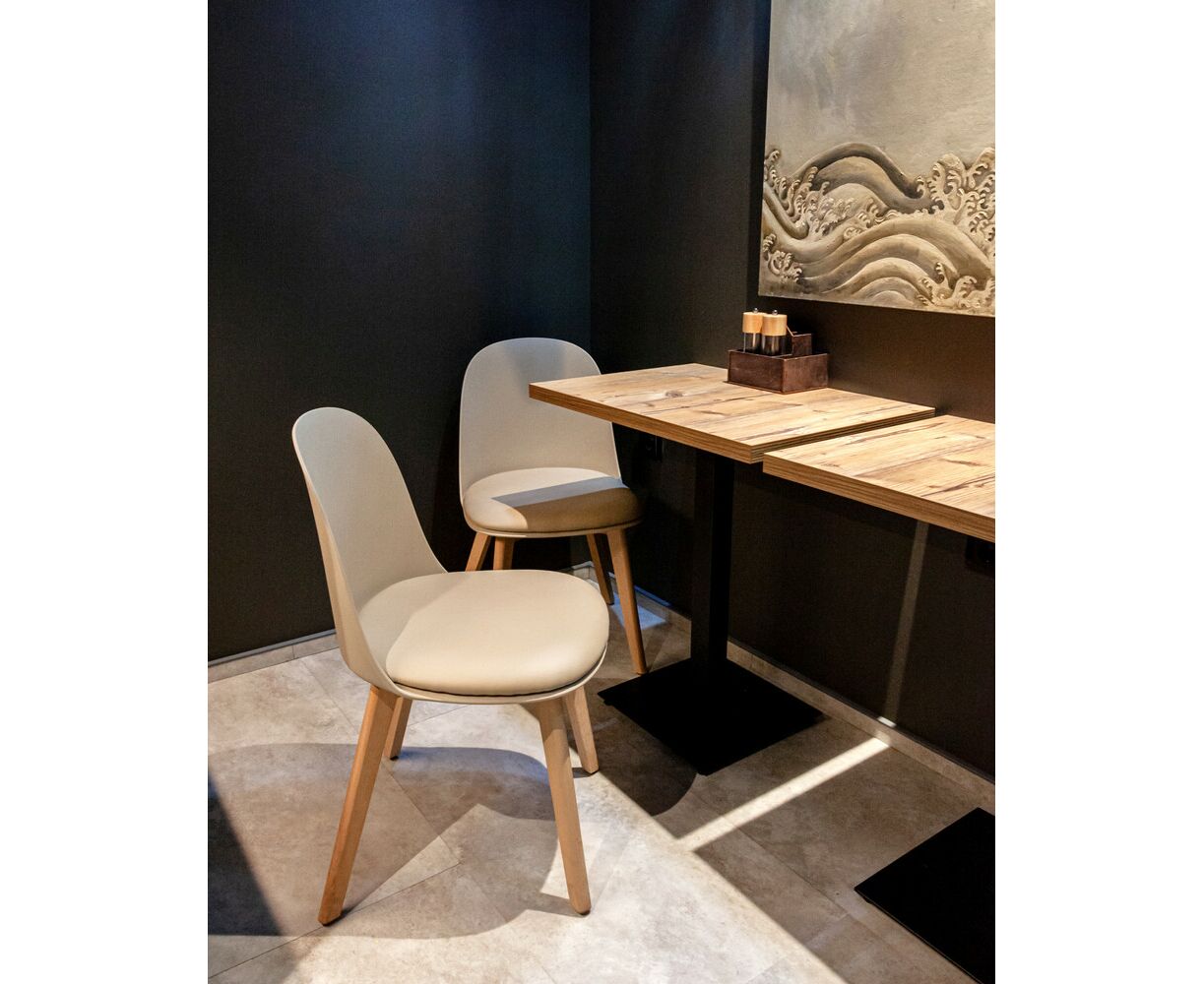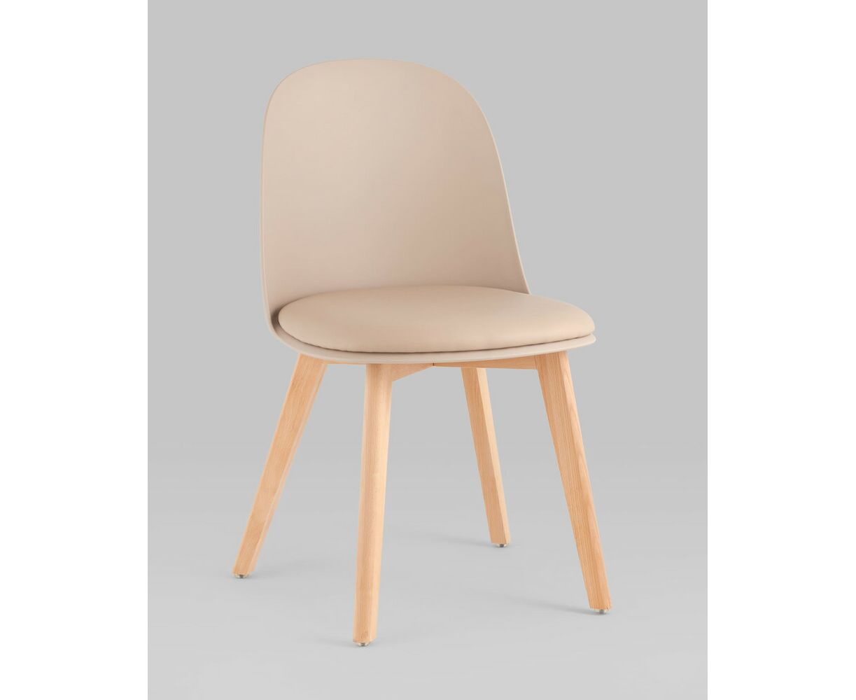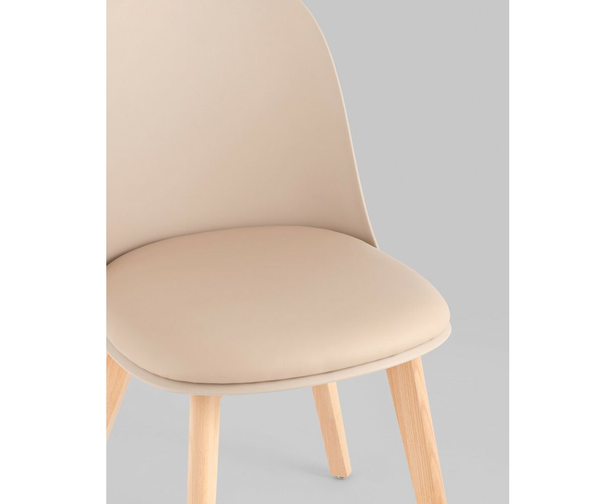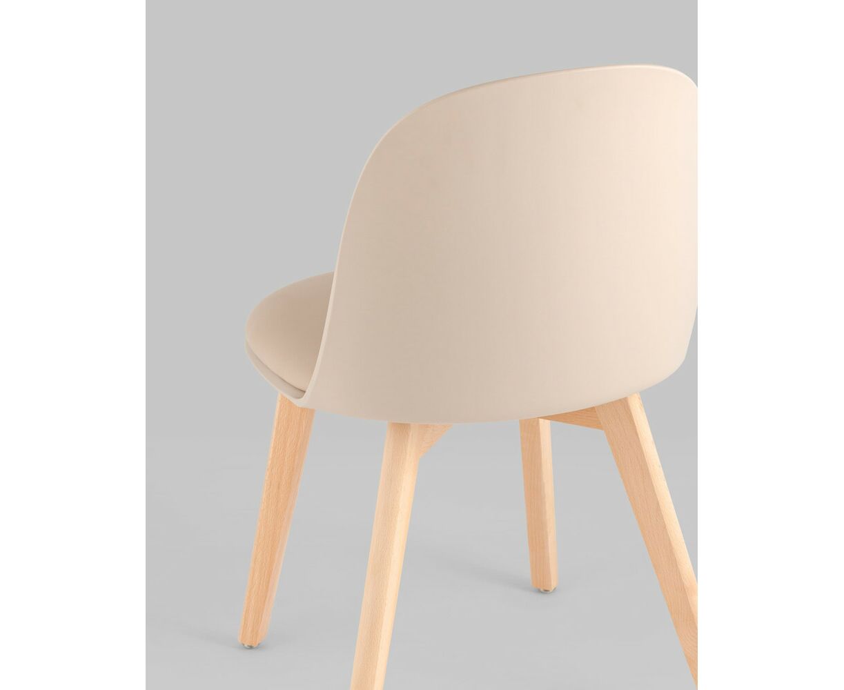 Стул пластиковый Fog с подушкой бежевый деревянные ножки