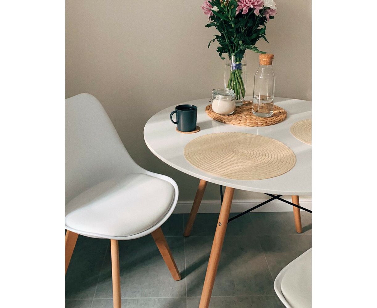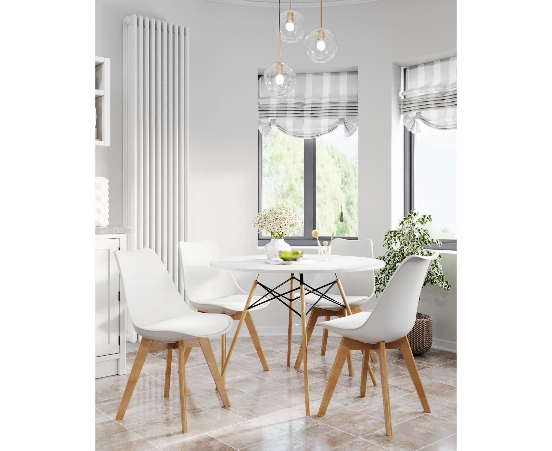 Комплект из четырех стульев FRANKFURT белый пластик сиденье из экокожи ножки массив бука