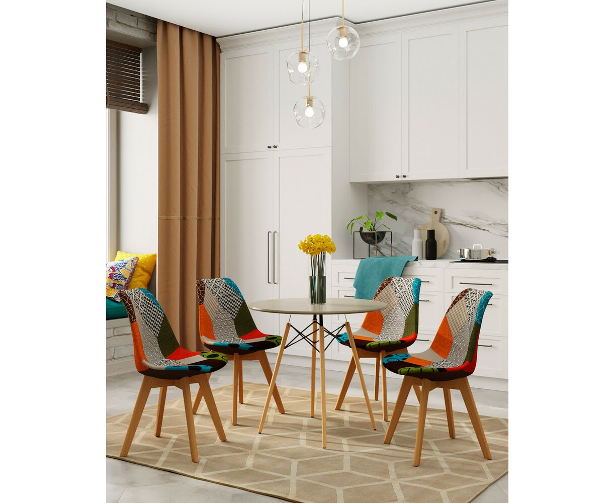 Яркий и стильный стул Франкфурт притягивает внимание. Обивка выполнена из ткани в стиле пэчворк. Лаконичные ножки изготовлены из прочного массива бука. Спинка этого стула анатомически повторяет изгибы тела, что позволяет с комфортом находиться за обеденным столом.