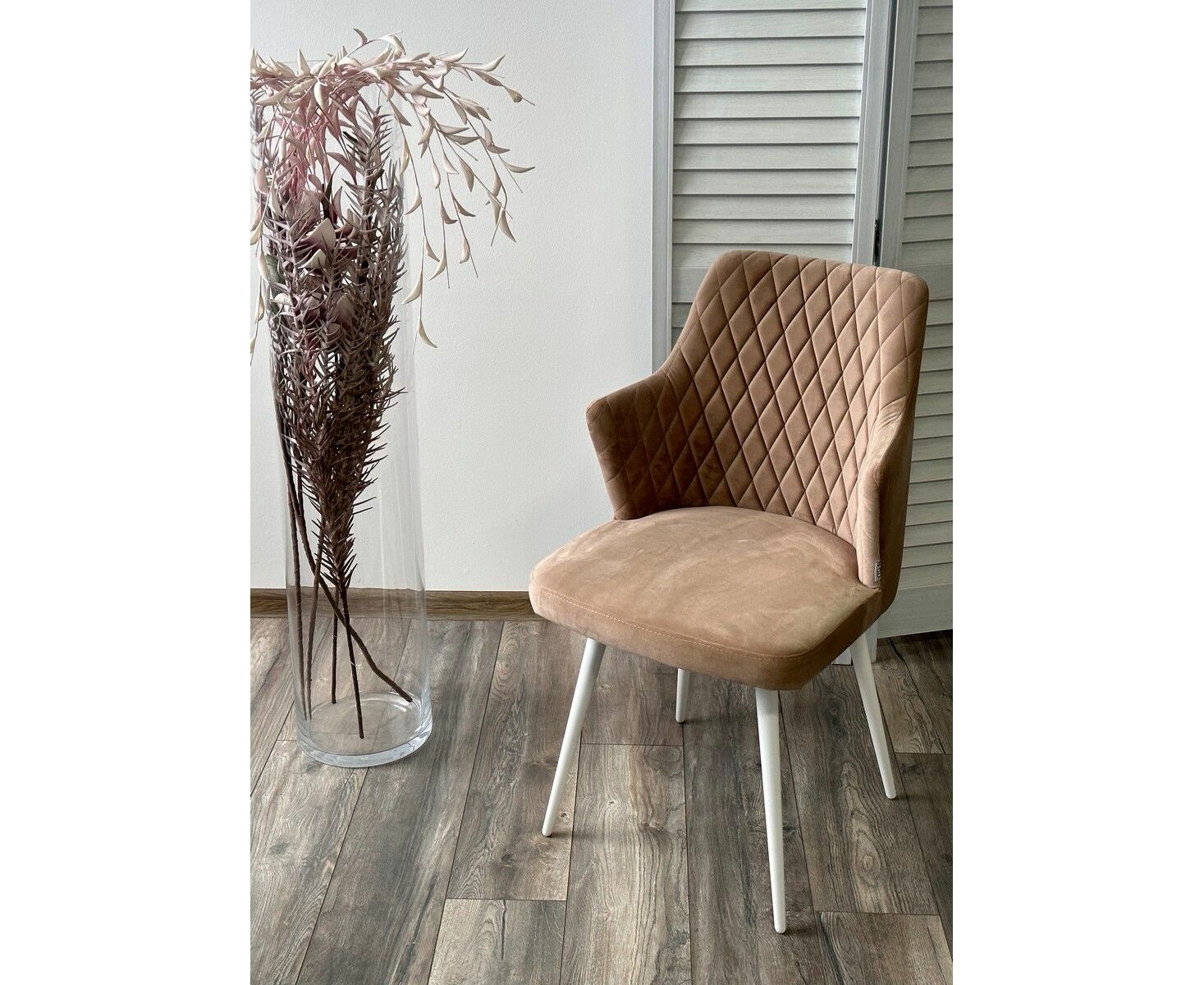 Стул HERMAN БЕЖЕВЫЙ #5, велюр / белый каркас М-City
