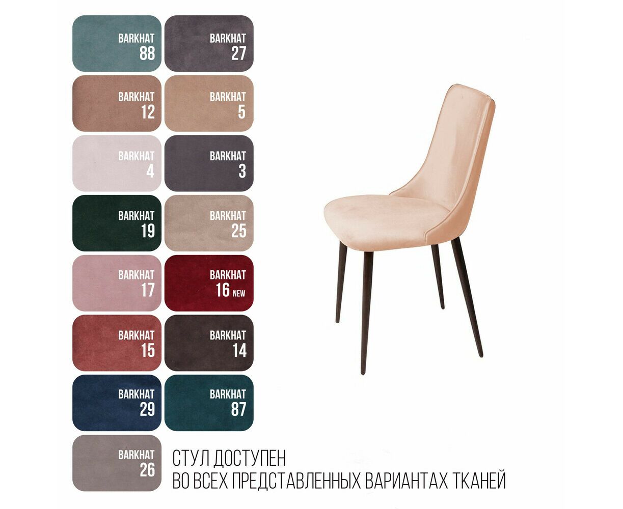 Металлические ножки черного или белого матового цвета. На опорах предусмотрены защитные пластиковые накладки, которые придают стулу дополнительную устойчивость и защищают пол от царапин.