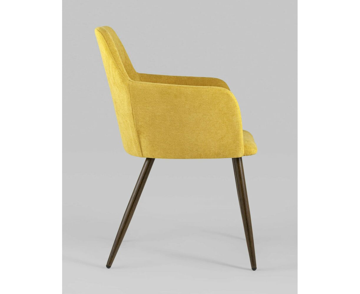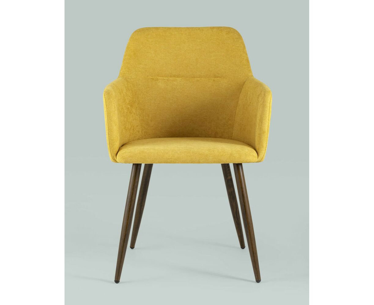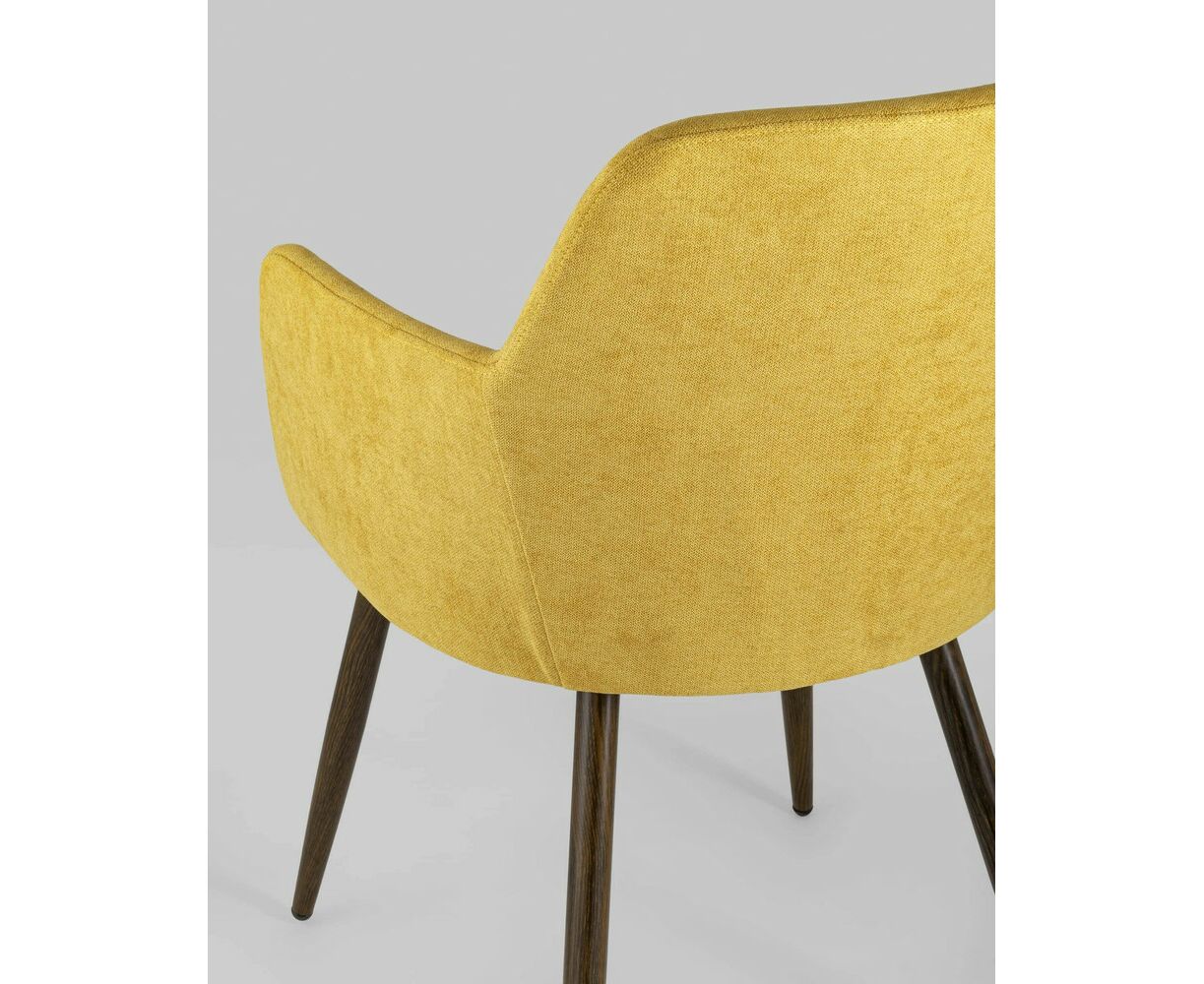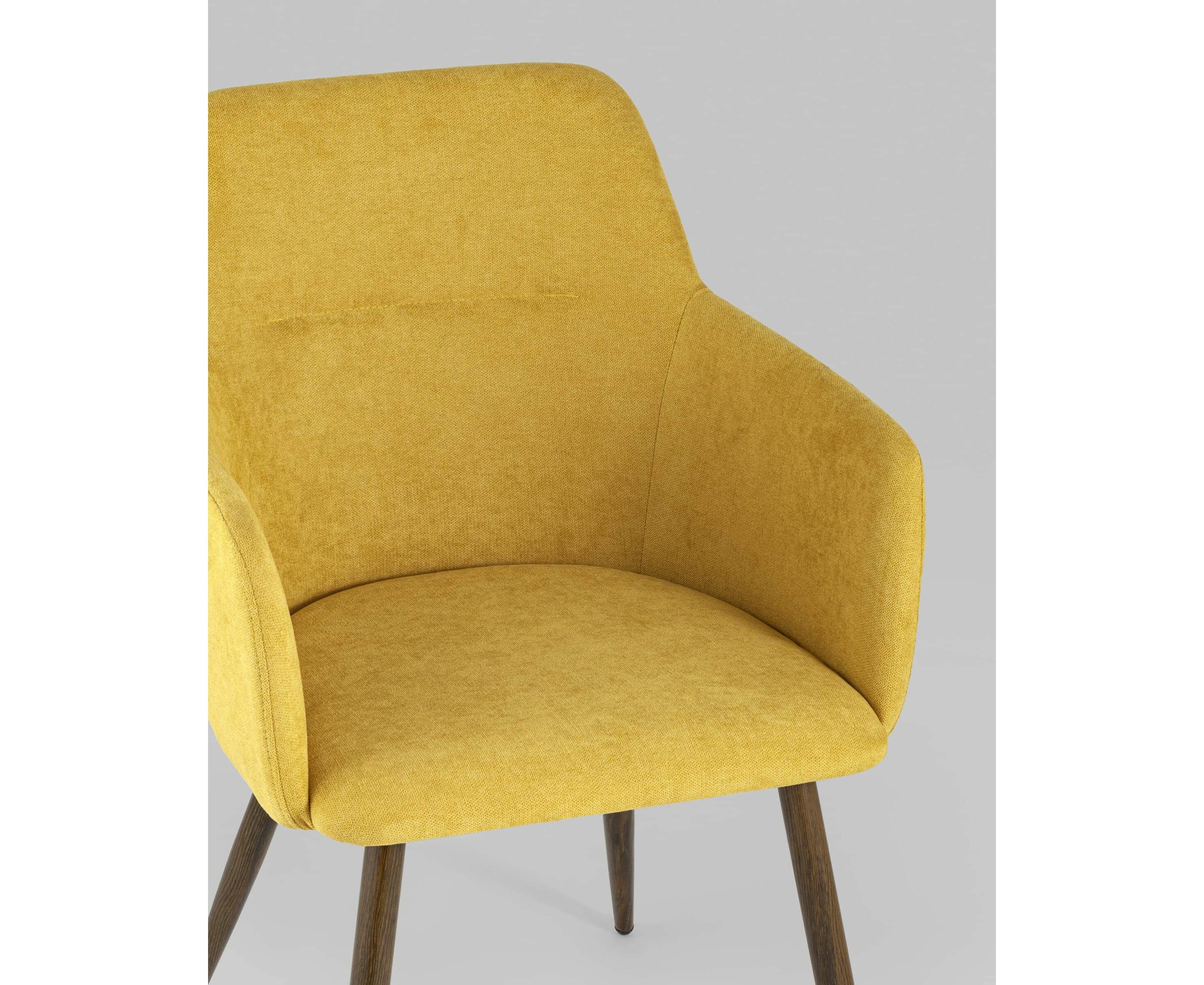 Стильный и мягкий стул имеет широкую эргономичную спинку и удобные подлокотники. Обивкой послужила высококачественная плотная ткань. Ножки выполнены из металла.