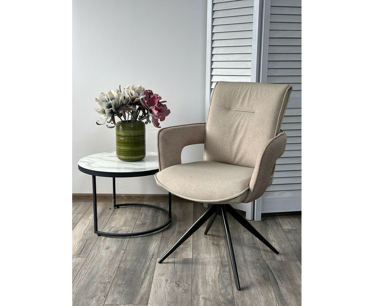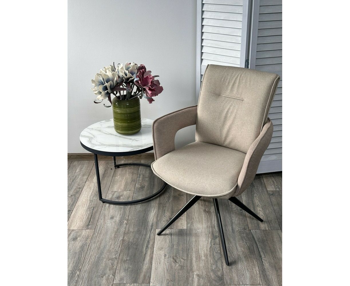 Стул KINNET 360 град. поворот. MOHAIR-110 / CASTEL-15 Бежевый,ткань/ Тем.-серый каркас, ®DISAUR