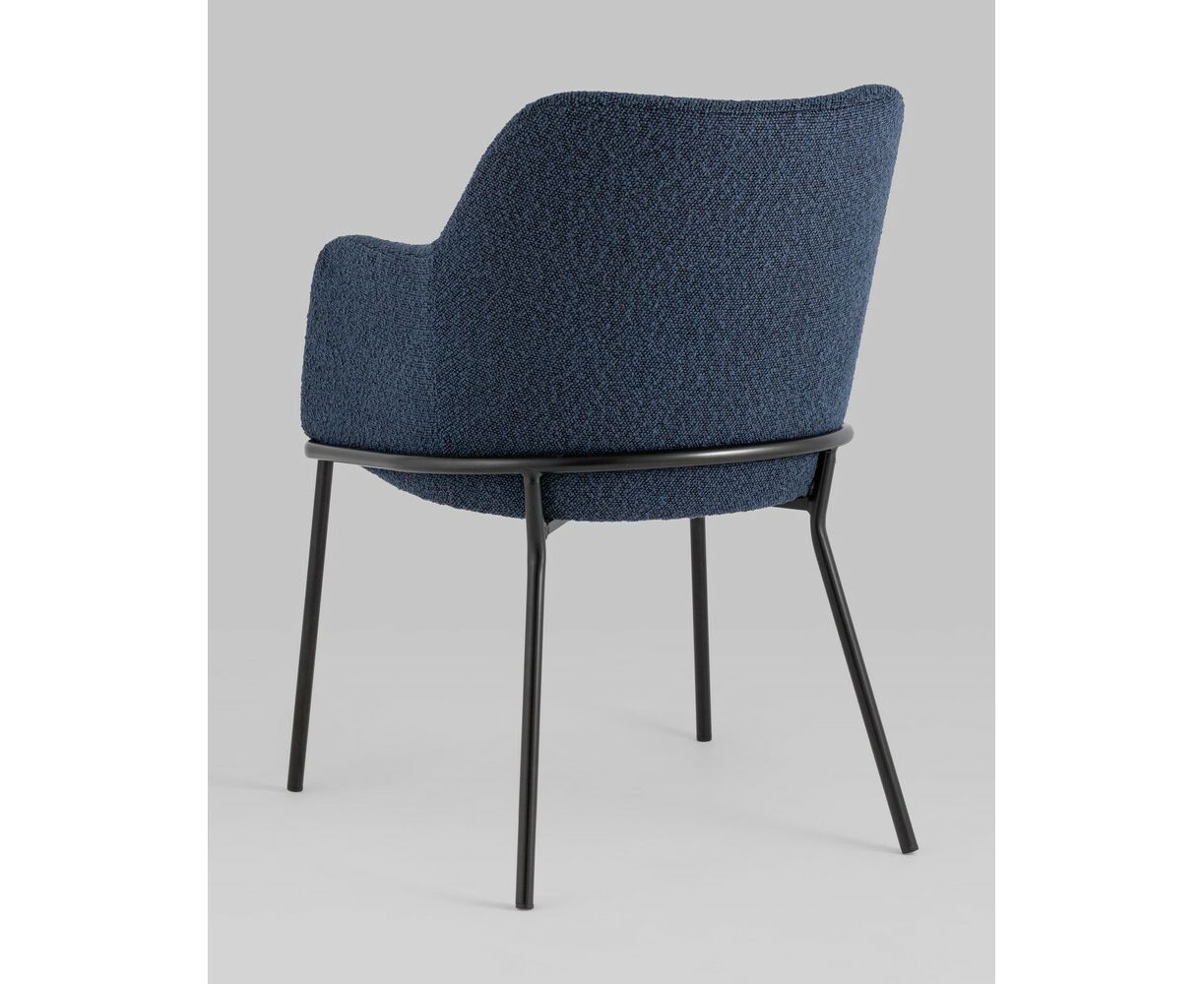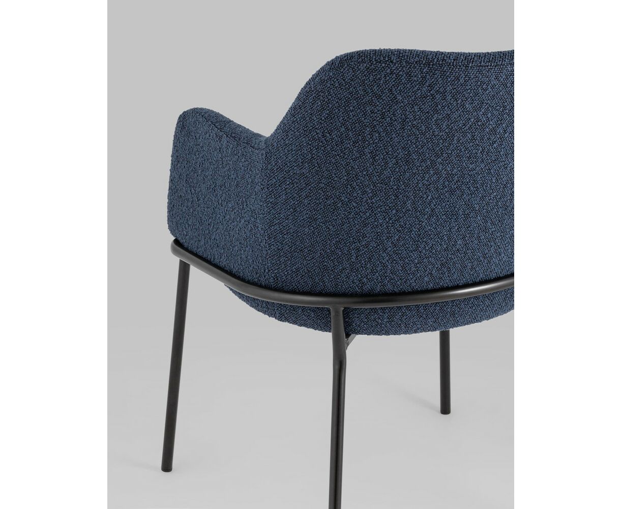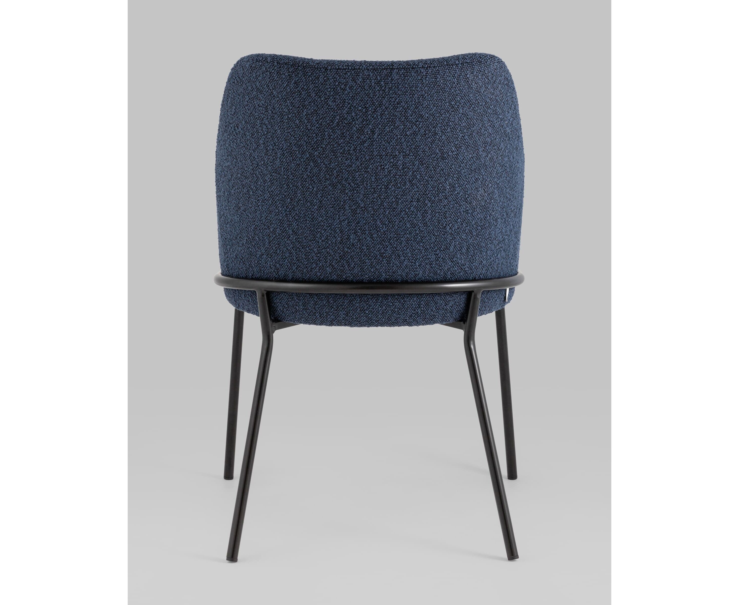 Изящный стул с комфортным сиденьем и спинкой. Основание и ножки черного матового цвета изготовлены из прочного металла. Обивка выполнена из прочной ткани с мягким ворсом в стиле букле, необычная фактура и мягкость добавляют стулу больше уюта.