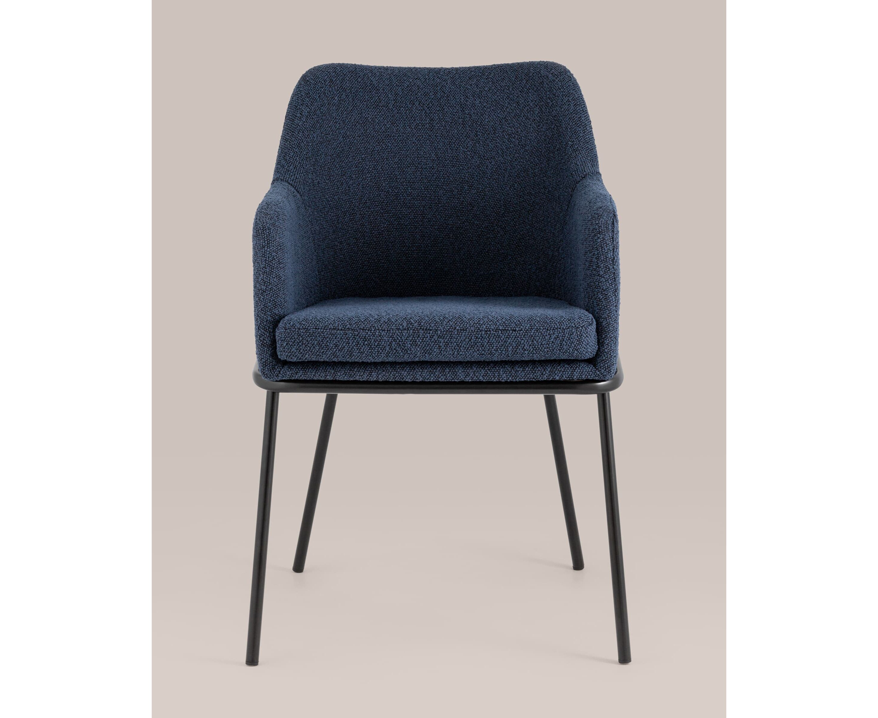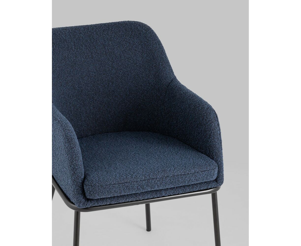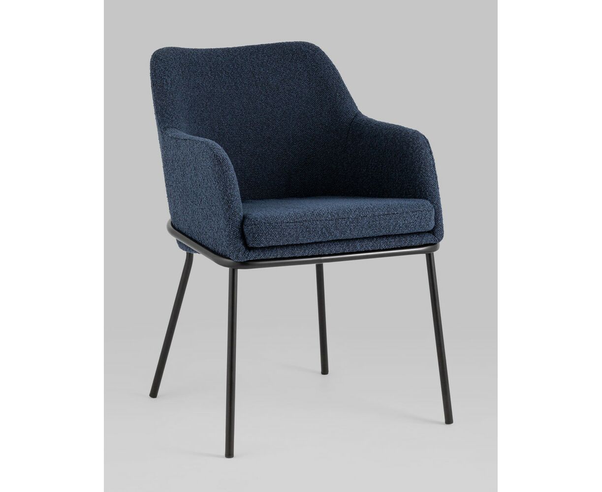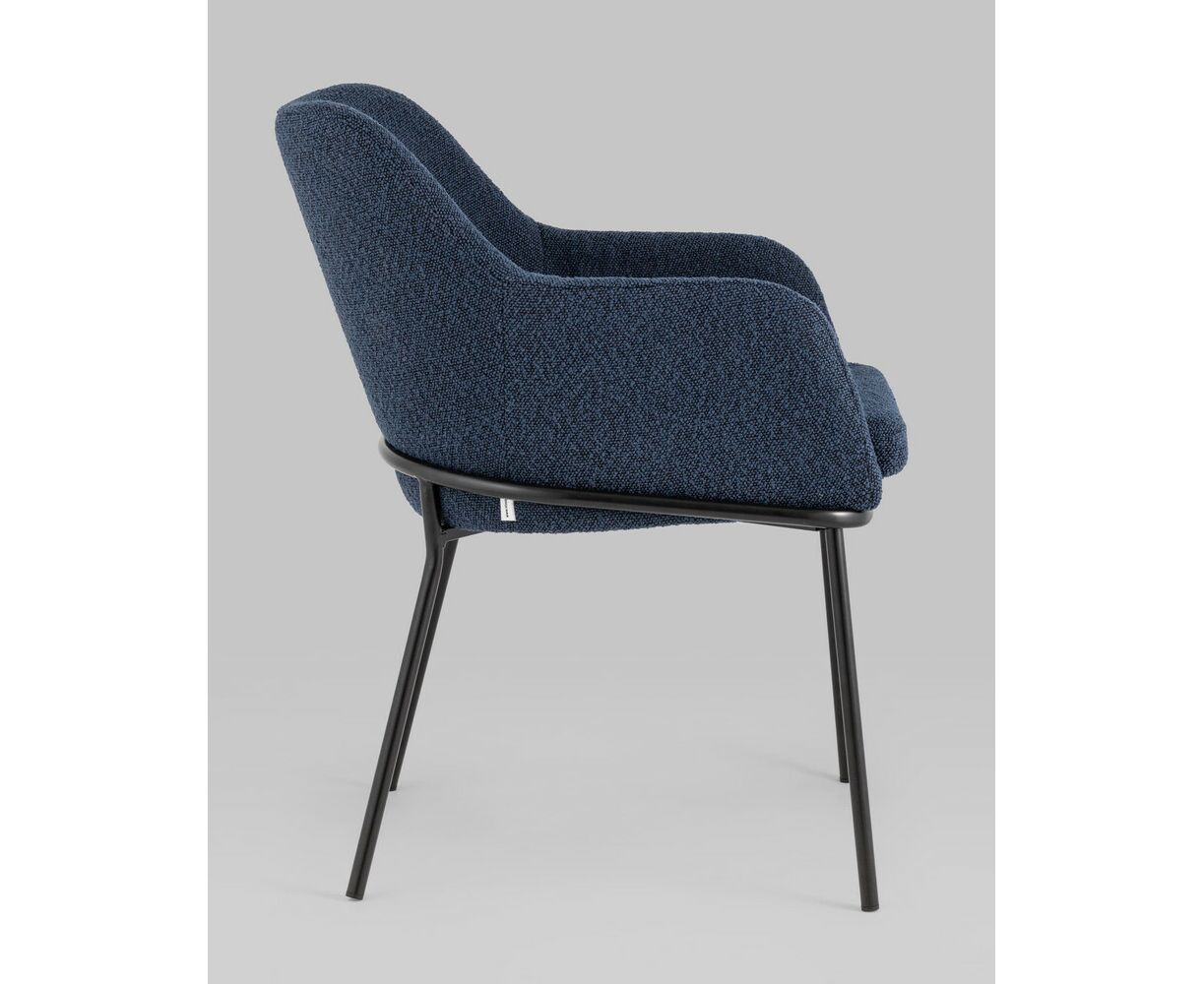 Изящный стул с комфортным сиденьем и спинкой. Основание и ножки черного матового цвета изготовлены из прочного металла. Обивка выполнена из прочной ткани с мягким ворсом в стиле букле, необычная фактура и мягкость добавляют стулу больше уюта.