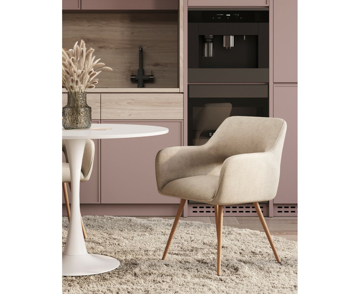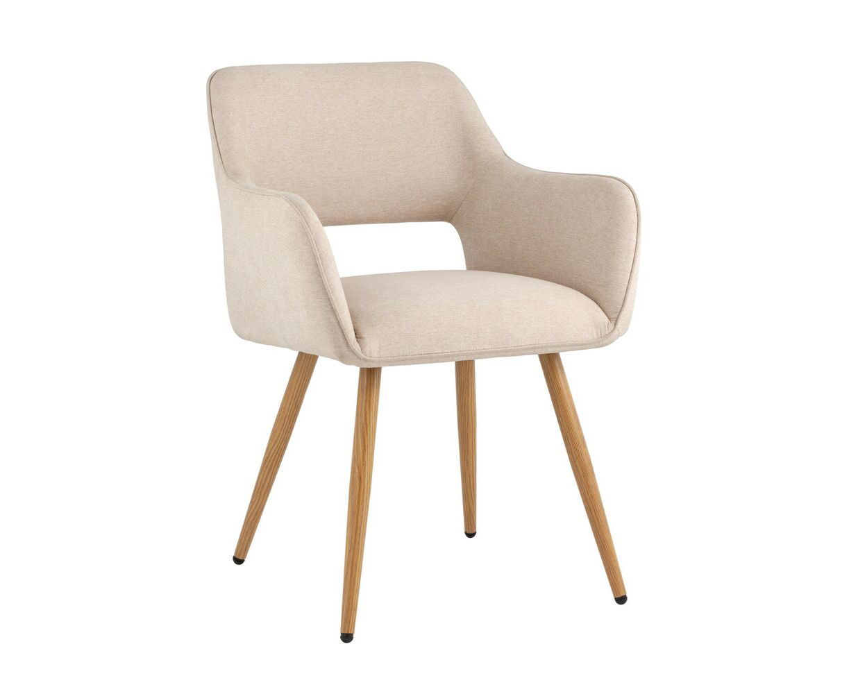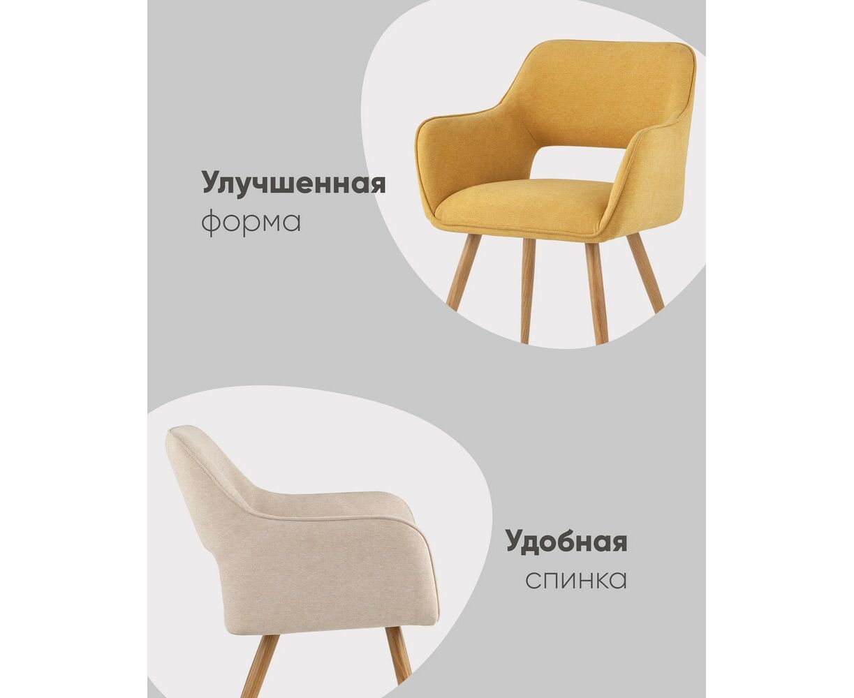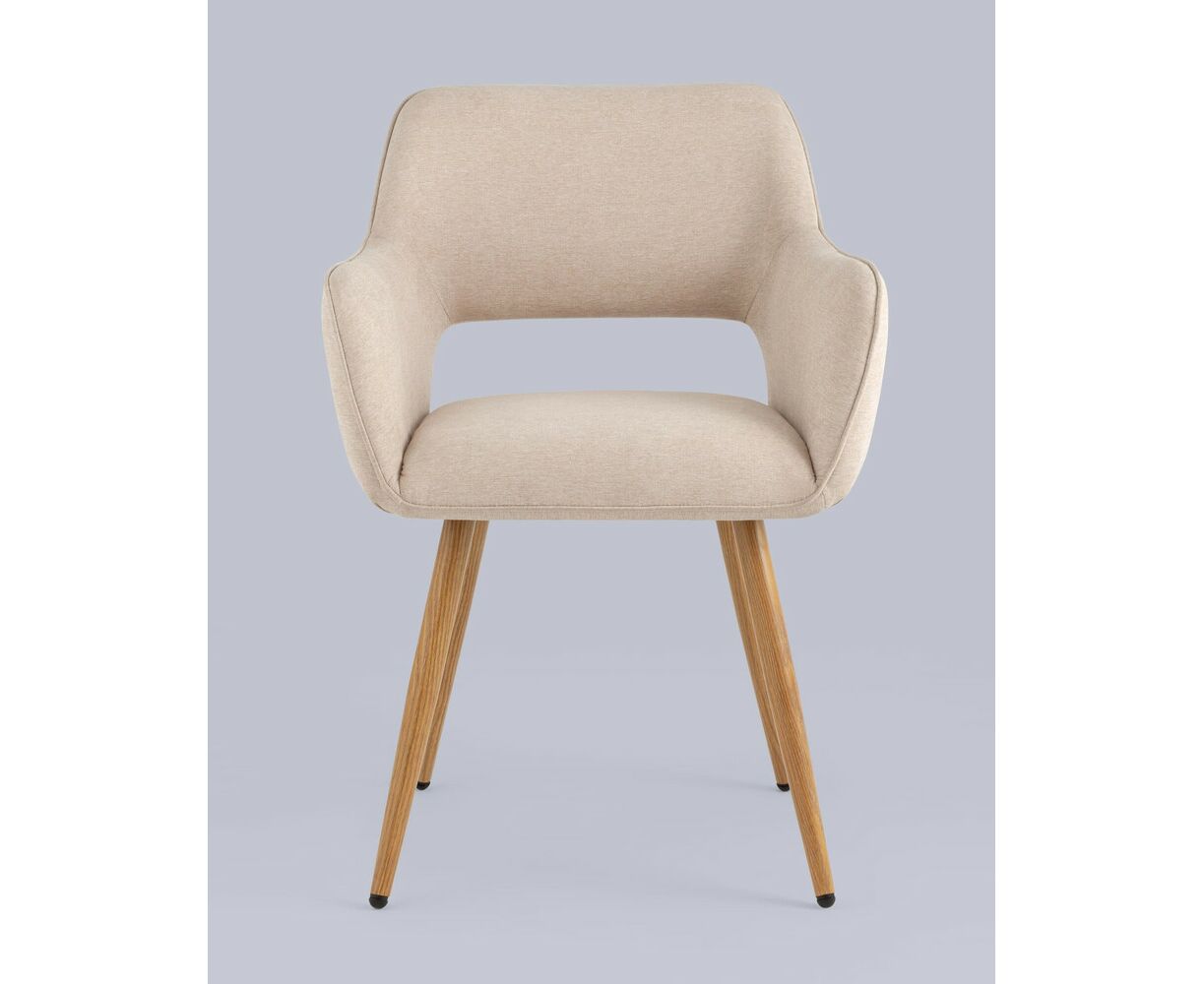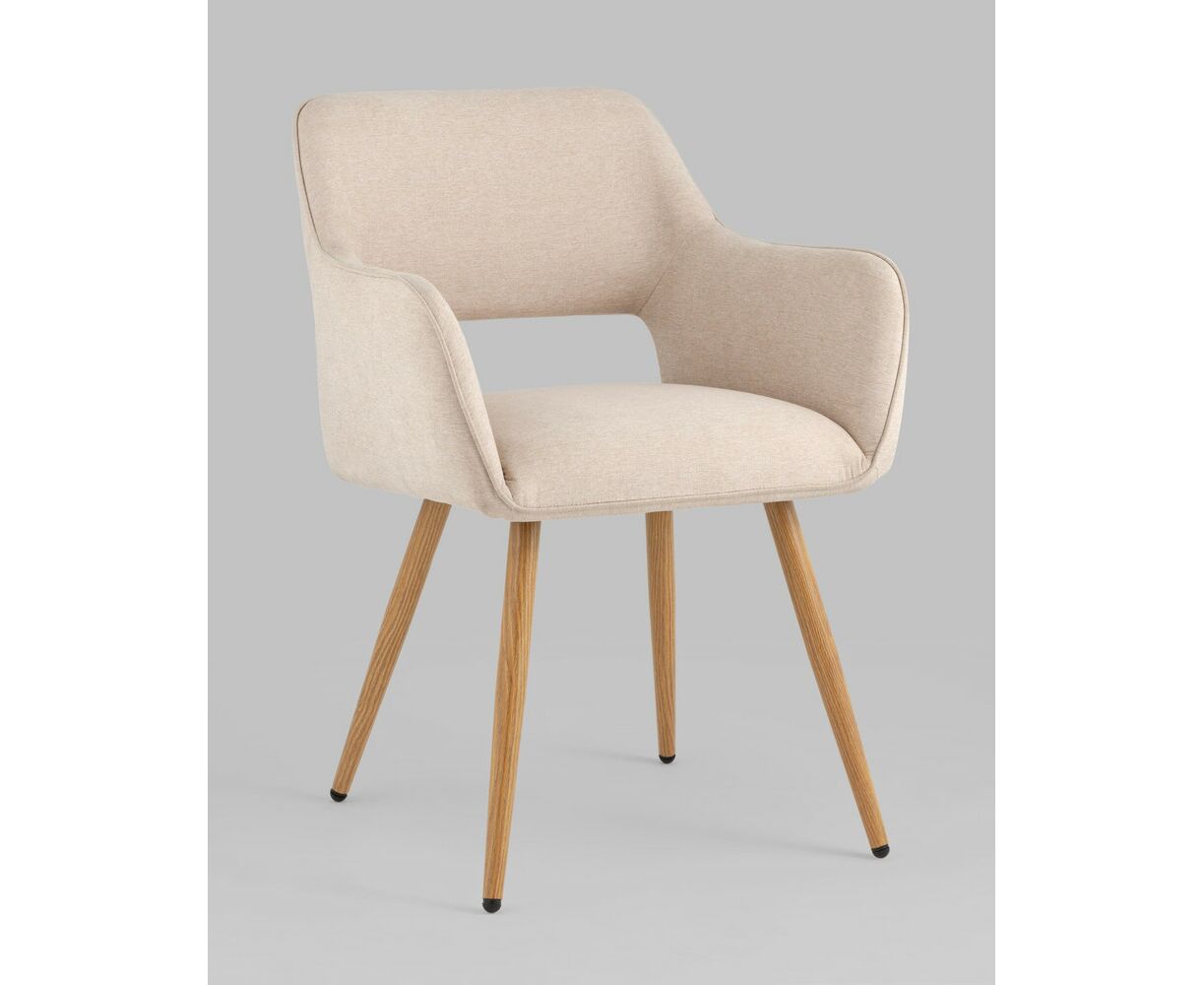 Стул Stool Group Кромвель II бежевый, широкая эргономичная спинка, удобные подлокотники, обивка плотная ткань, металлические ножки с принтом под дерево