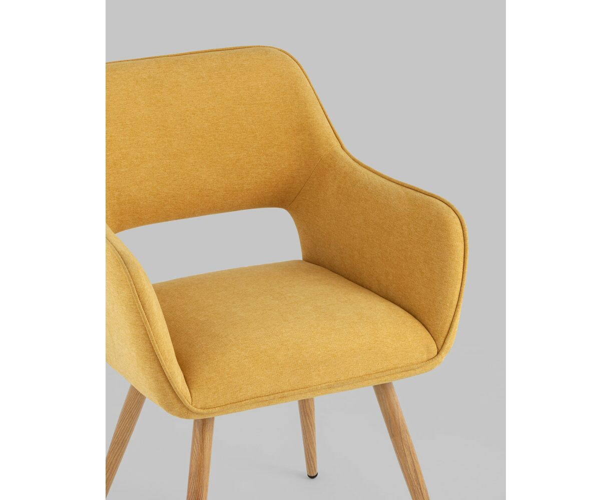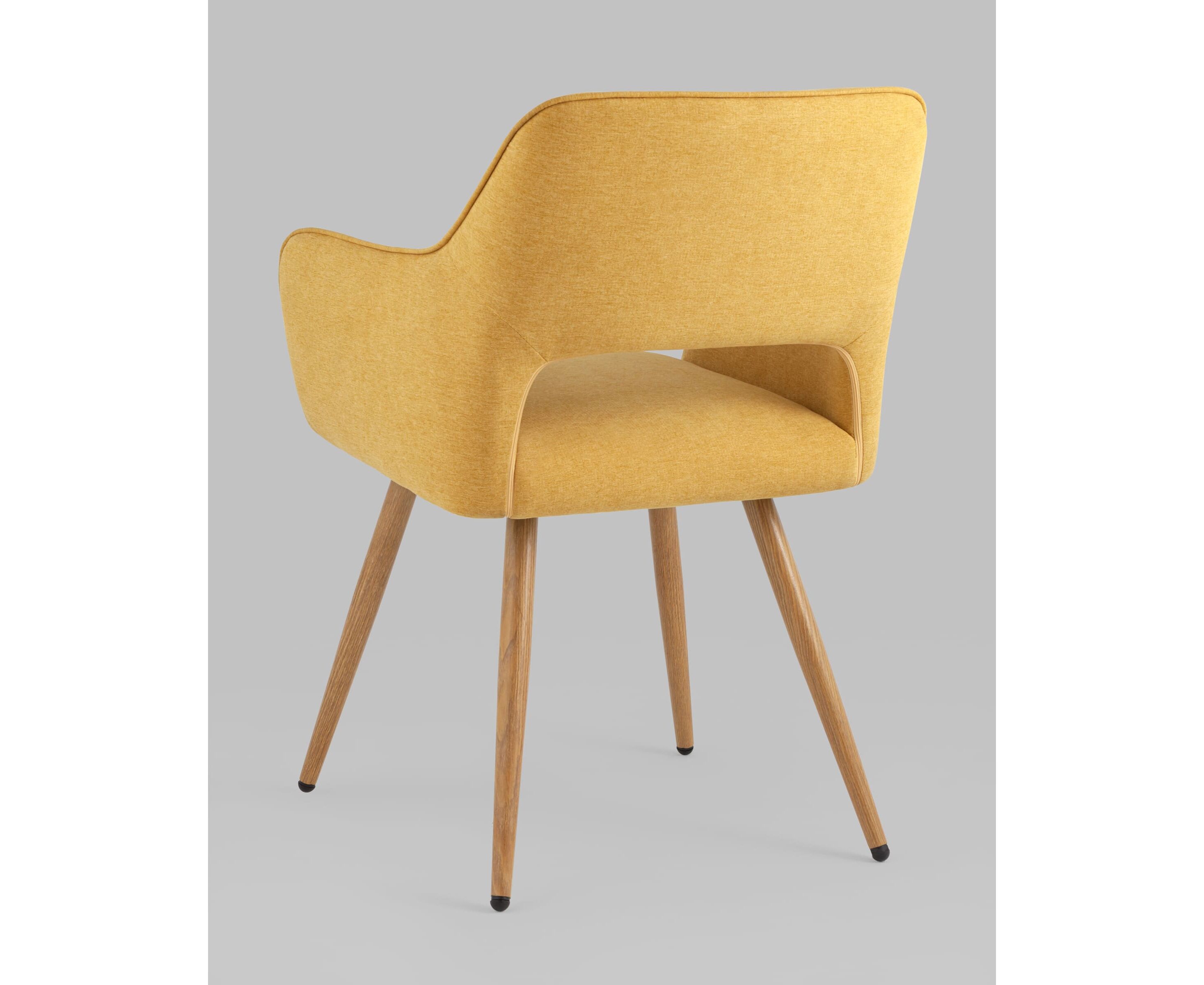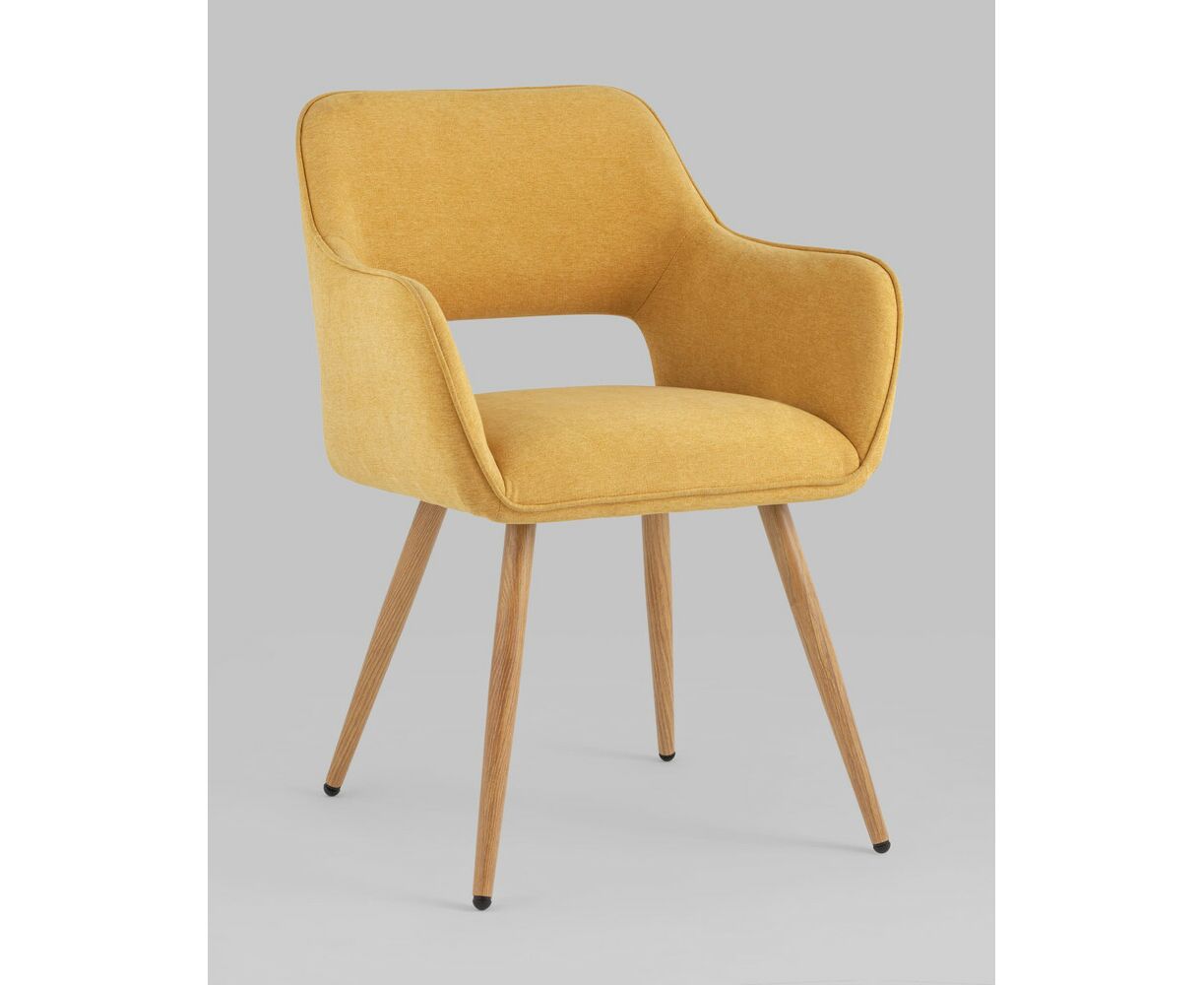 Стул Stool Group Кромвель II желтый, широкая эргономичная спинка, удобные подлокотники, обивка плотная ткань, металлические ножки с принтом под дерево