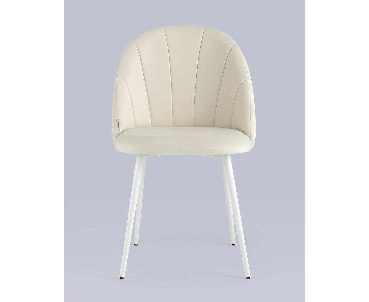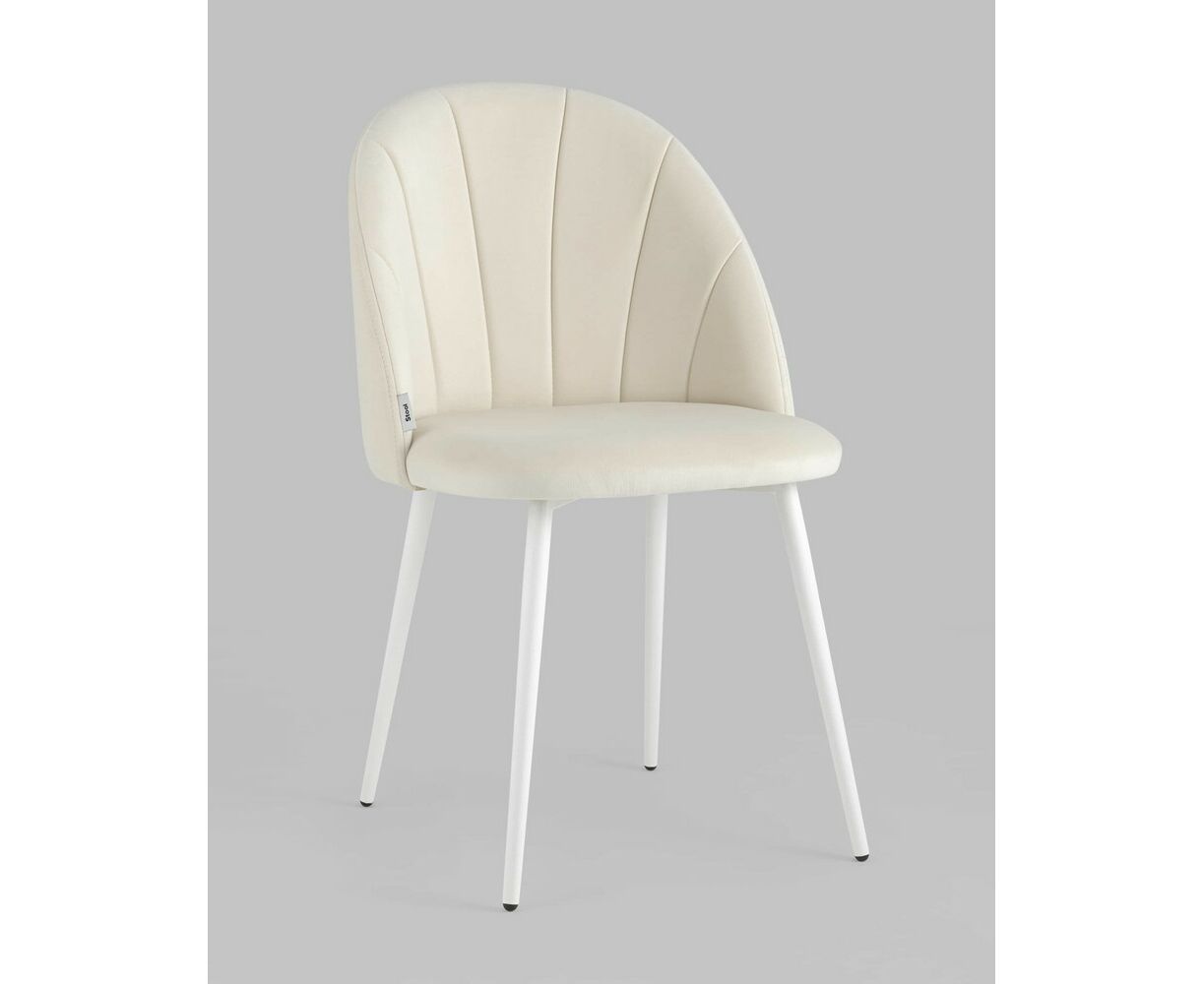 Стул Логан велюр молочный белые ножки