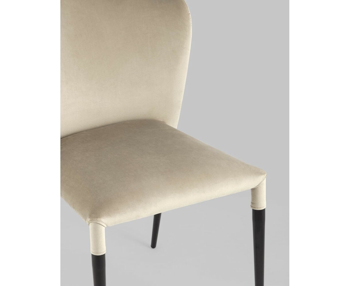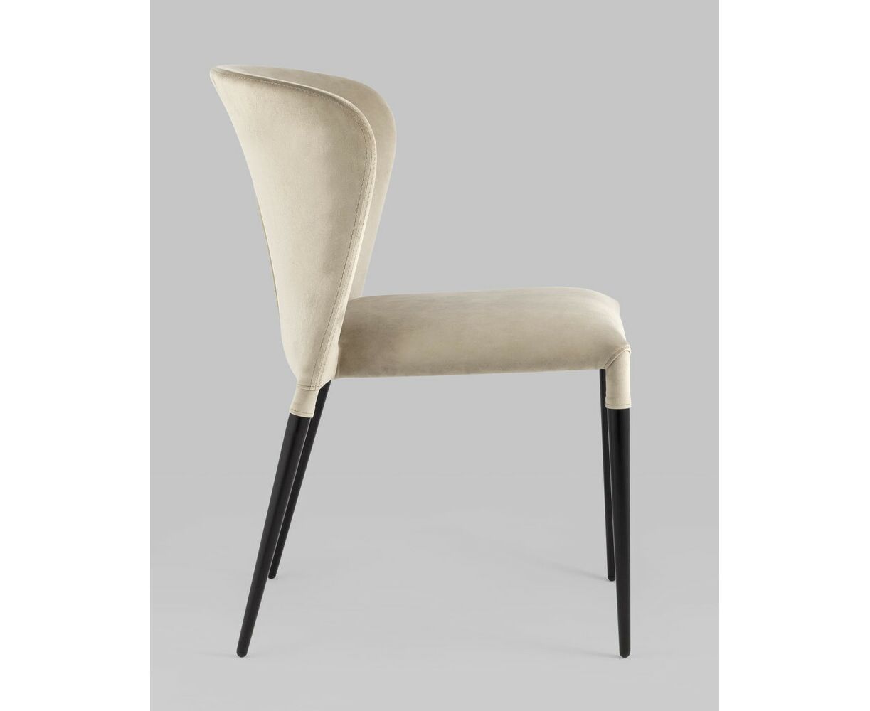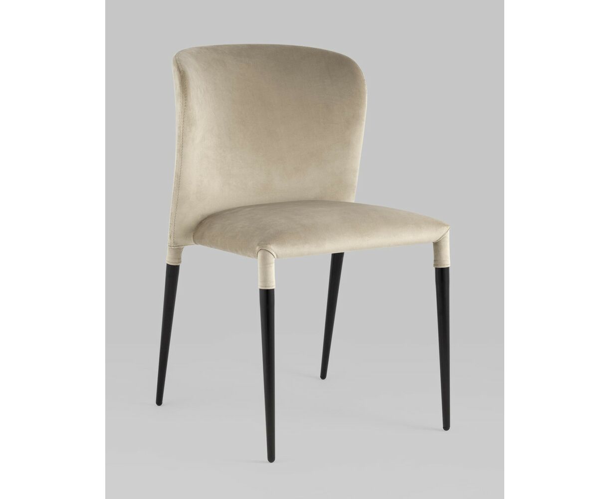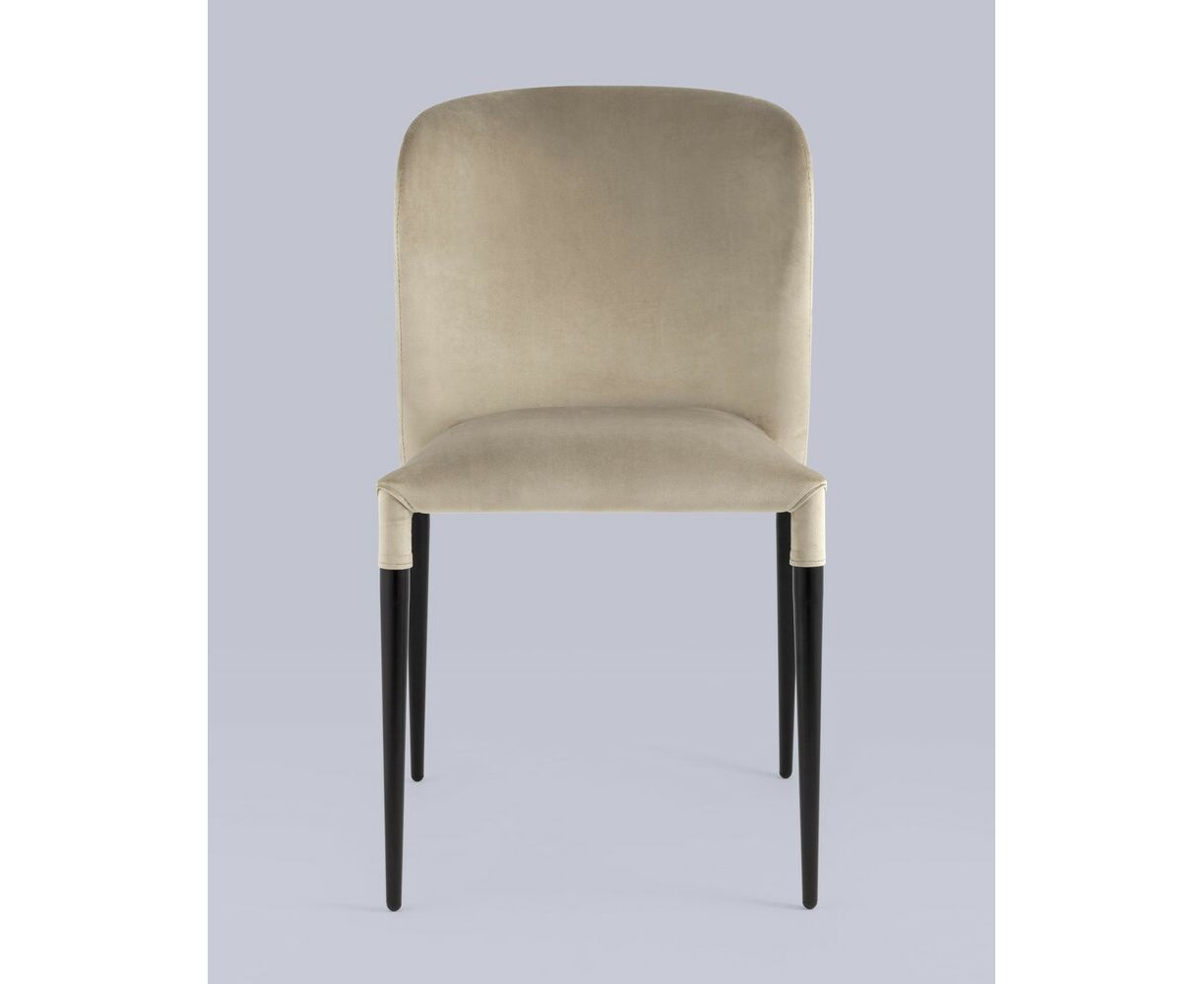Обивка стула выполнена из велюра. Материал тактильно приятный, износостойкий, прост в уходе и быстро восстанавливает первоначальную форму. Ножки изготовлены из металла в черном цвете. Закругленная эргономичная спинка с выступающими по бокам элементами обеспечивает максимальный комфорт. На ножках предусмотрены специальные подпятники, которые предотвращают скольжение и не царапают напольное покрытие.