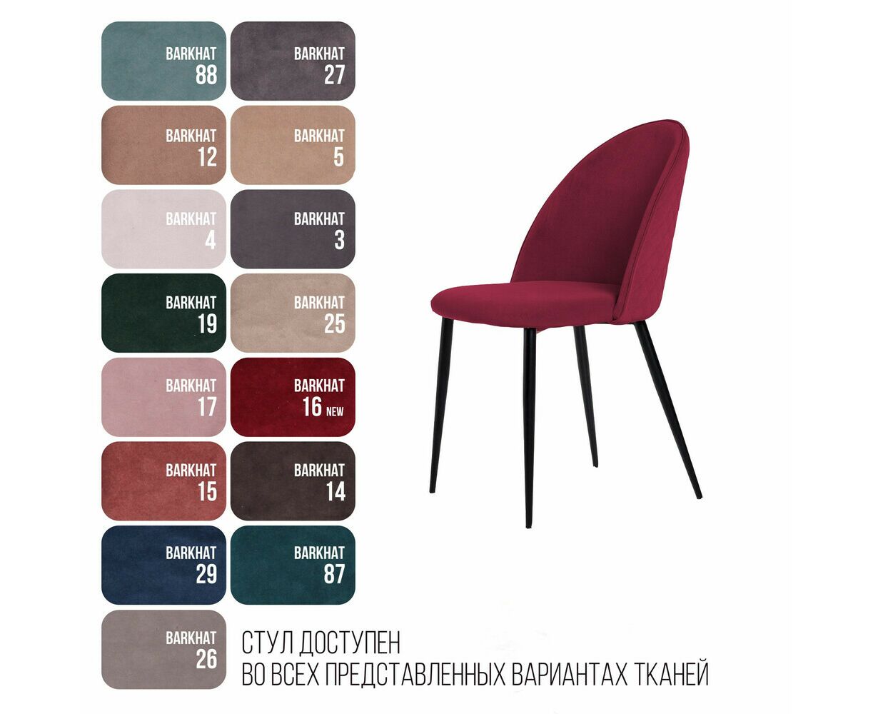 Металлические ножки окрашены в черный матовый цвет, расположены так, чтобы обеспечивать абсолютную устойчивость и защитить стул от раскачивания. На ножках предусмотрены специальные пластиковые накладки, которые защищают пол от царапин.