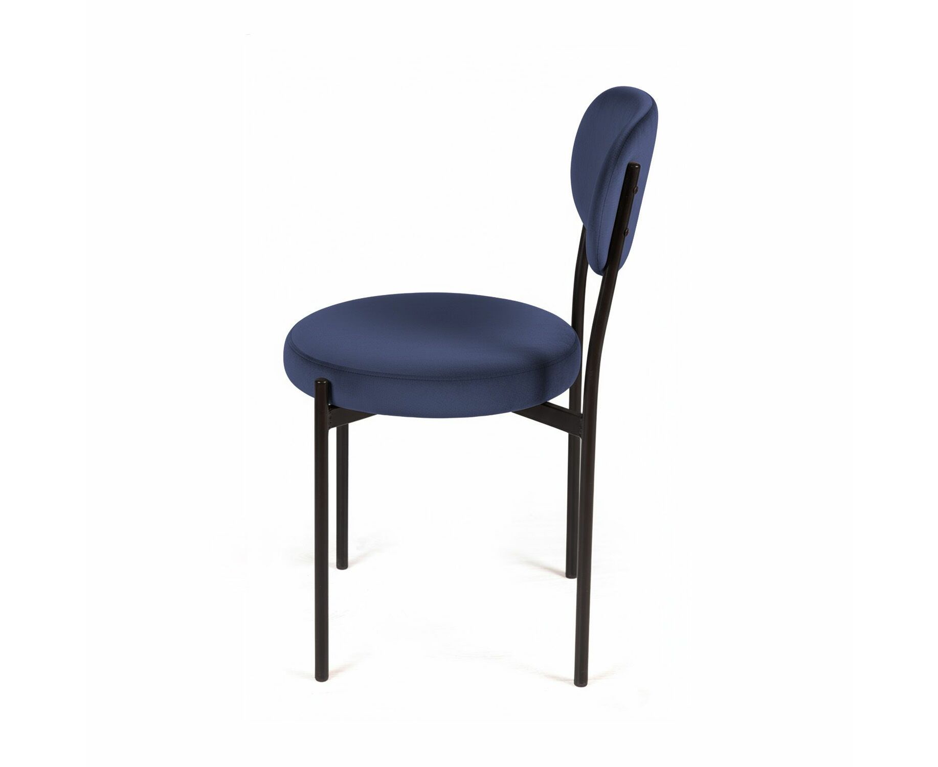 Металлические опоры черного матового цвета. На опорах предусмотрены защитные пластиковые накладки, которые придают стулу дополнительную устойчивость и защищают пол от царапин.