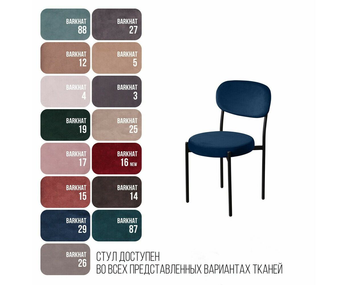Металлические опоры черного матового цвета. На опорах предусмотрены защитные пластиковые накладки, которые придают стулу дополнительную устойчивость и защищают пол от царапин.