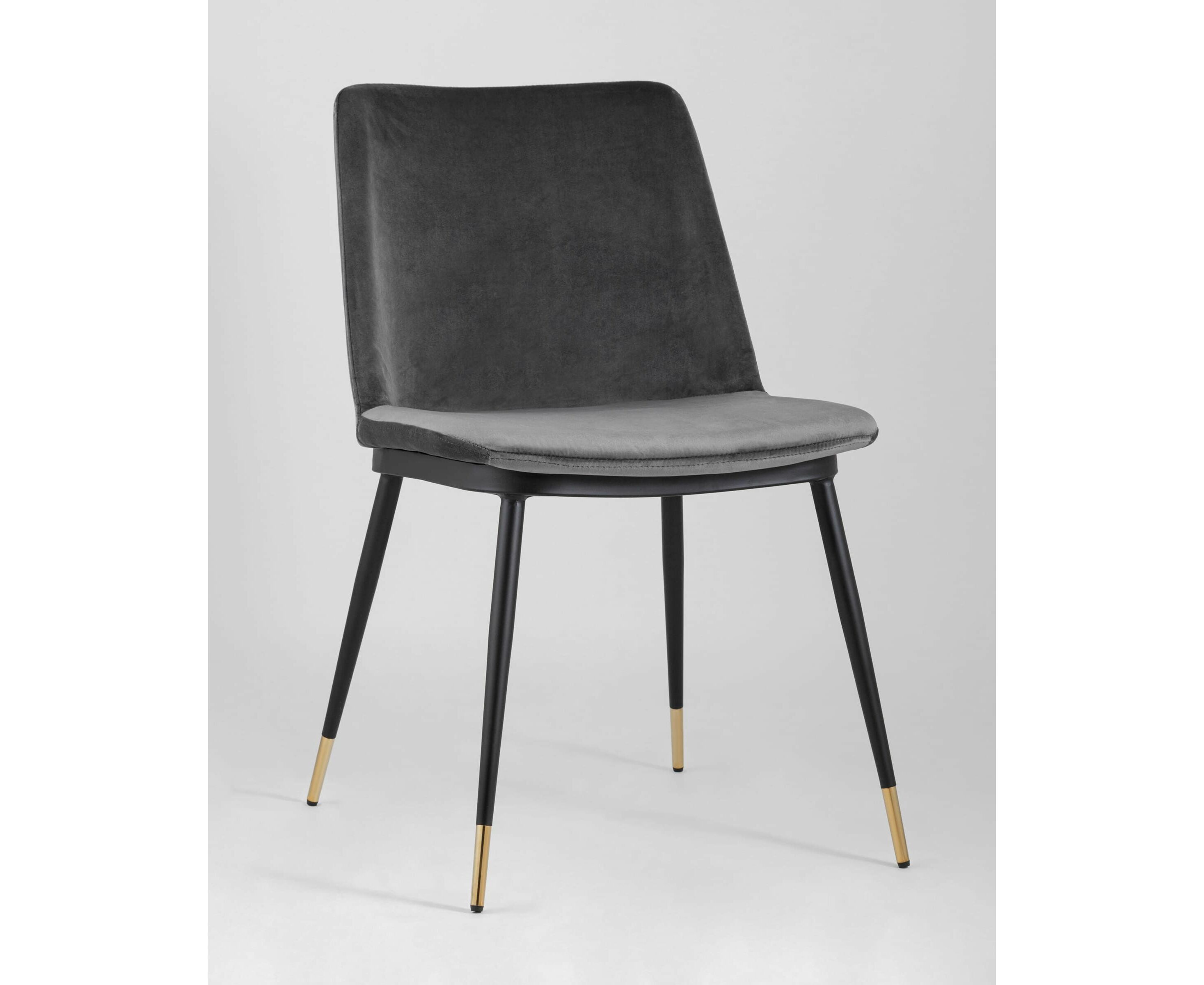 Стильный кухонный стул с обивкой из велюра. Надежная опора достигается благодаря металлическому каркасу и удобным устойчивым ножкам, красиво украшенным золотом.