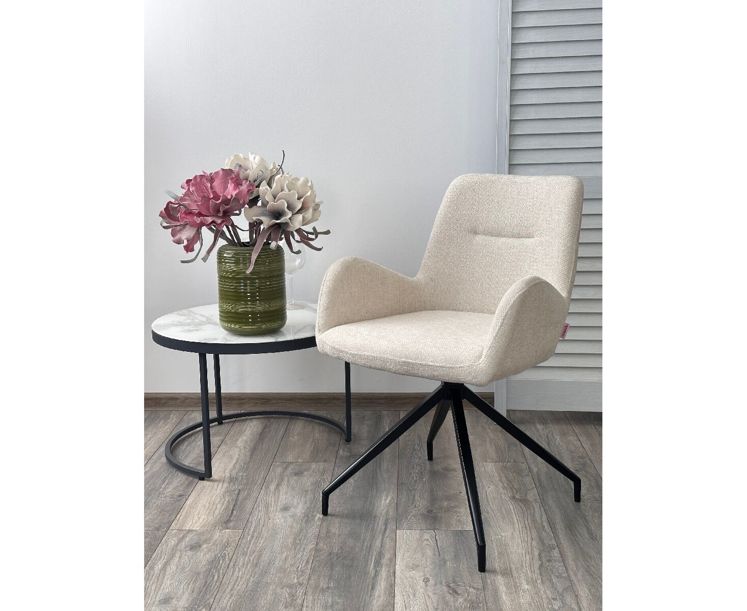 Стул NIKO 180 град. поворот. UF885-2 кремовый, ткань/ черный каркас, ®DISAUR
