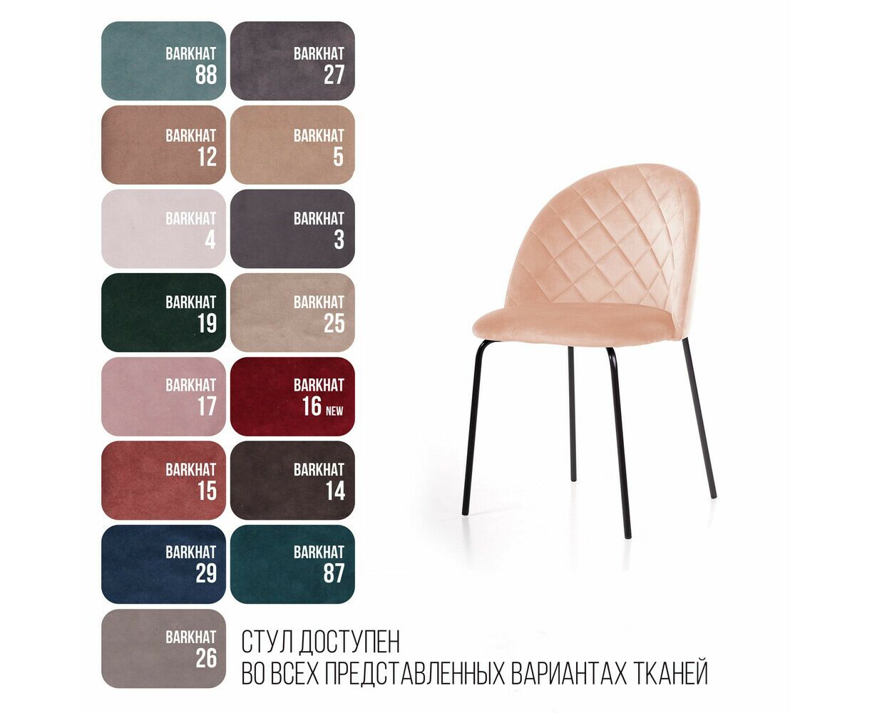 Металлические ножки окрашены в черный матовый цвет, расположены так, чтобы обеспечивать абсолютную устойчивость и защитить стул от раскачивания. На ножках предусмотрены специальные пластиковые накладки, которые защищают пол от царапин.