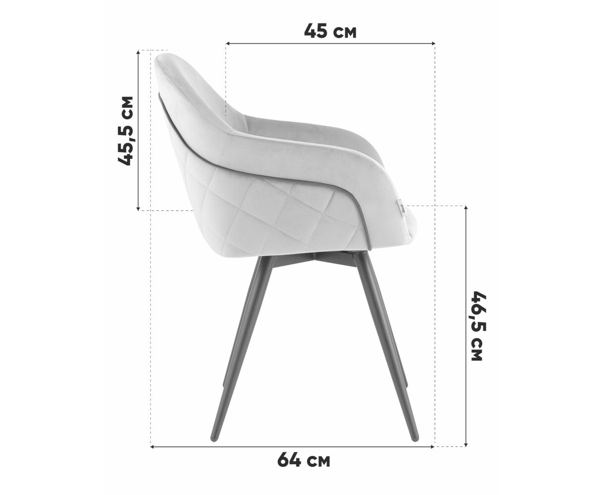 Обивка выполнена из велюра, прочного и износостойкого материала. Внешняя сторона спинки украшена ромбовидной стежкой. Подлокотники, высотой 20 см, обеспечат максимальный комфорт. Прочные металлические ножки в черном цвете выдерживают нагрузку до 120 кг. На ножках дополнительно предусмотрены специальные подпятники, которые предотвращают скольжение и повреждение напольного покрытия.