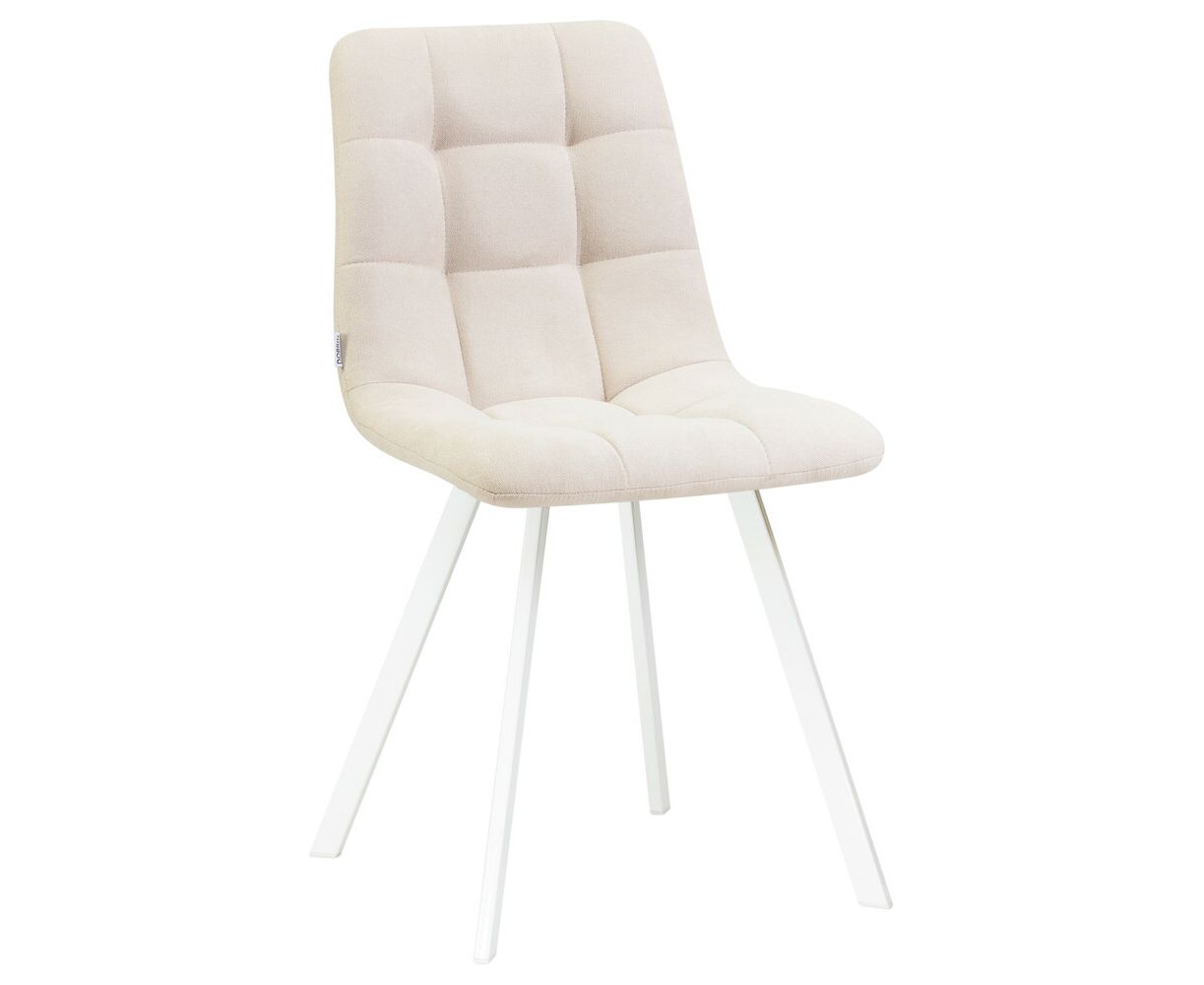 Стул обеденный DOBRIN ALEX SQUARE, белые ножки, кремовая ткань (UF860-01B)