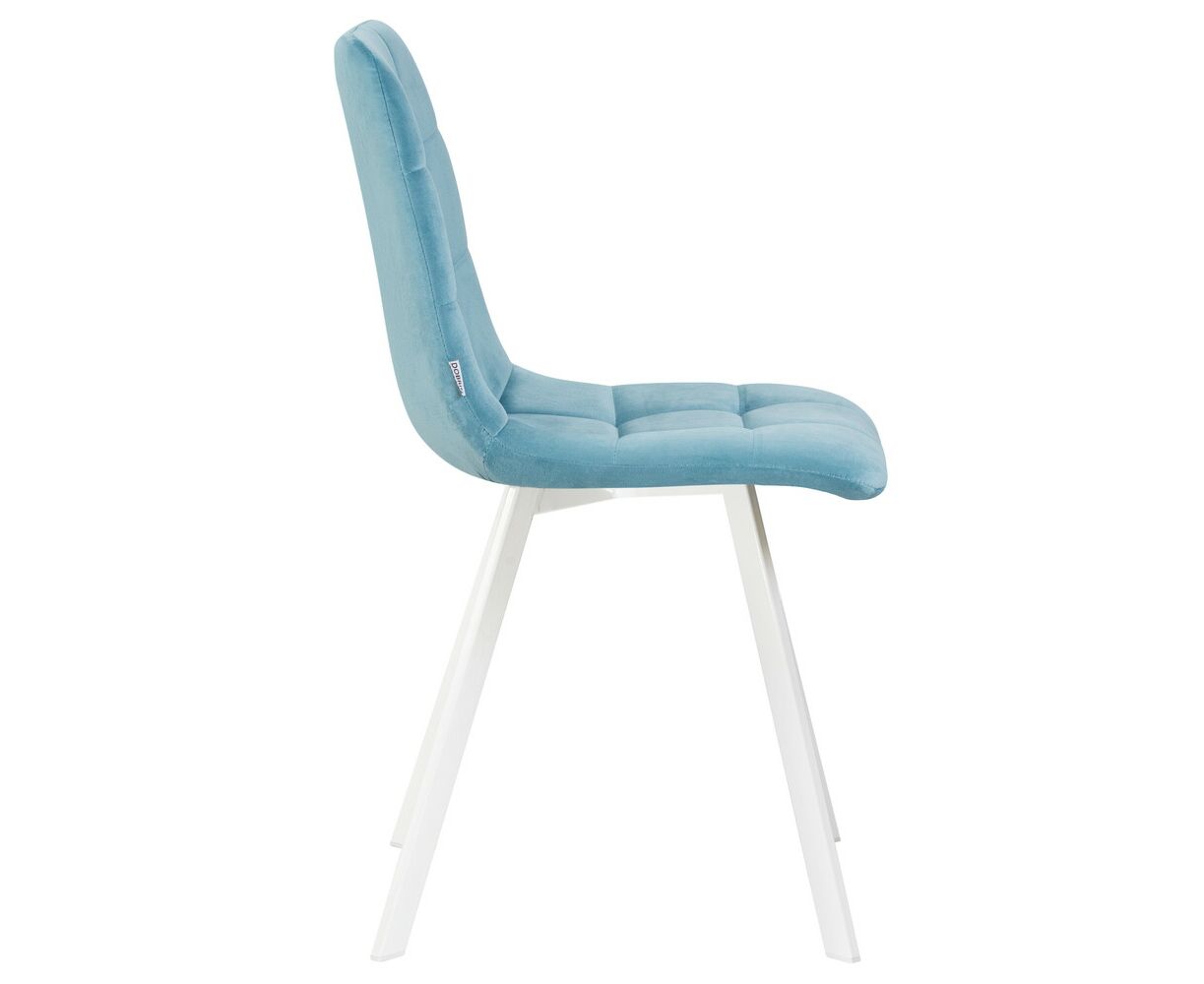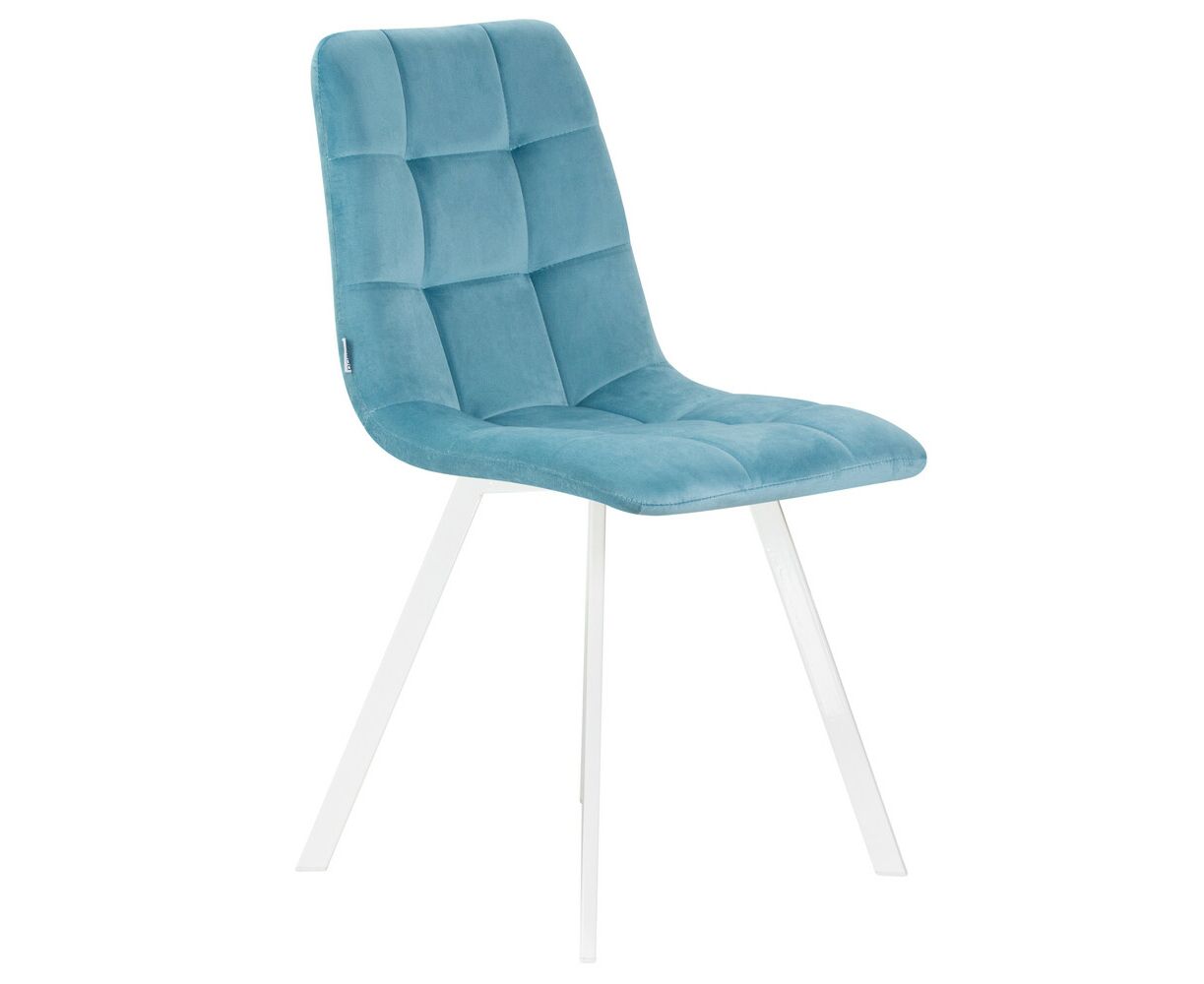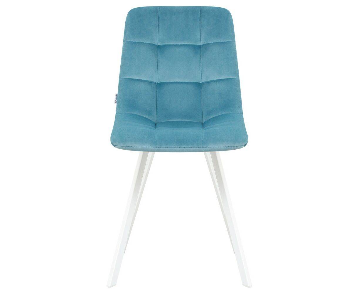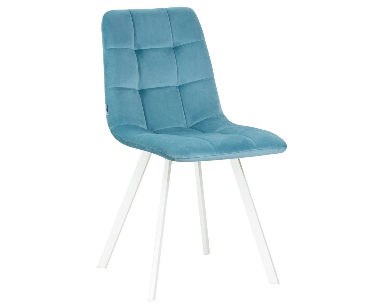 Стул обеденный DOBRIN ALEX SQUARE, белые ножки, морской волны велюр (V108-57)