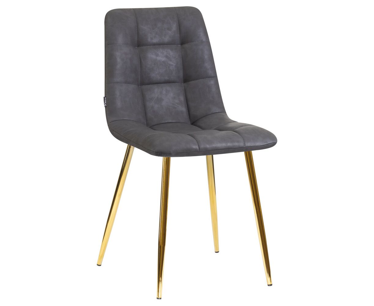 Стул обеденный DOBRIN ALEX, золотые ножки, серая антрацитовая винтажная экокожа (RU-08)