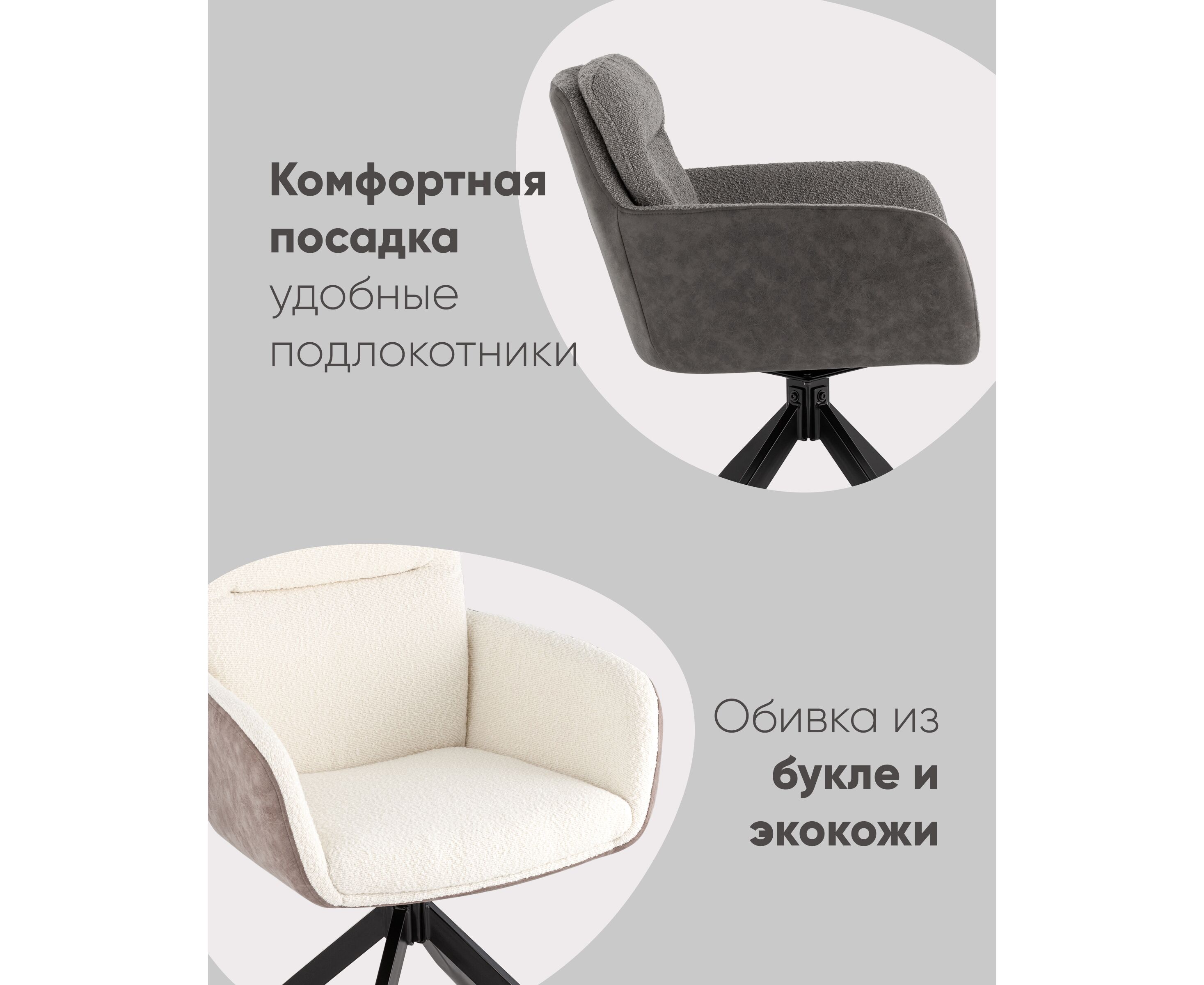 Стул обеденный Waldo серый с серой экокожей вращающийся