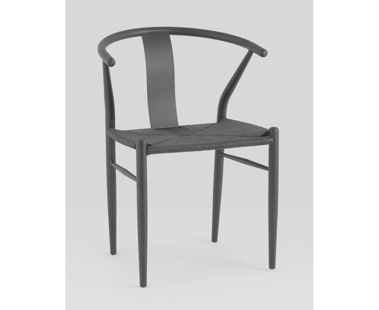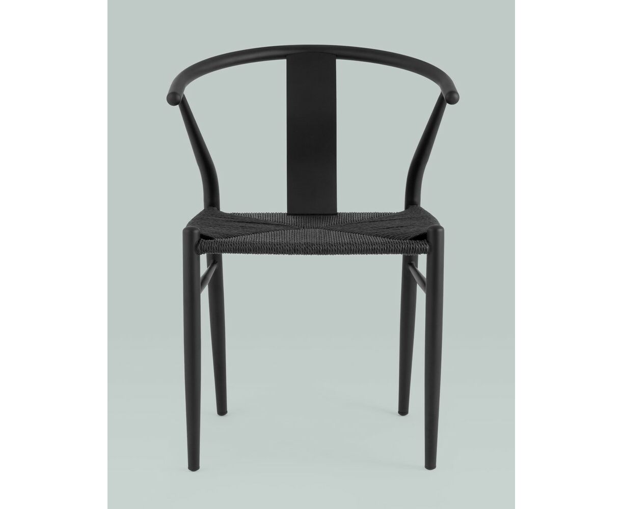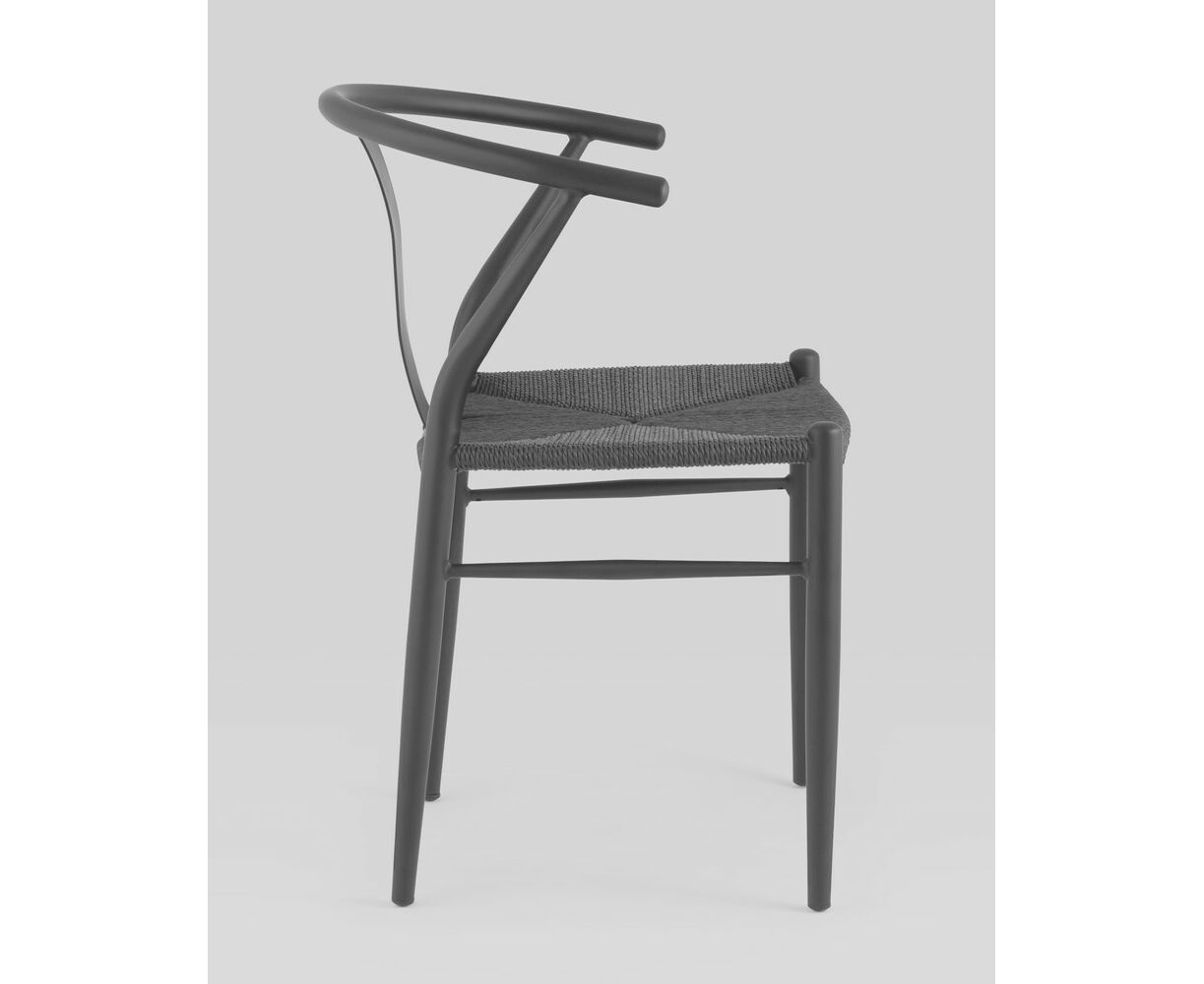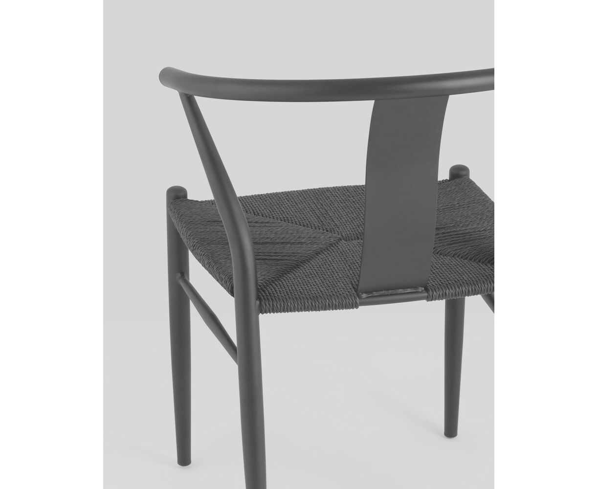 Стул обеденный Wishbone Style черный с сиденьем из джута