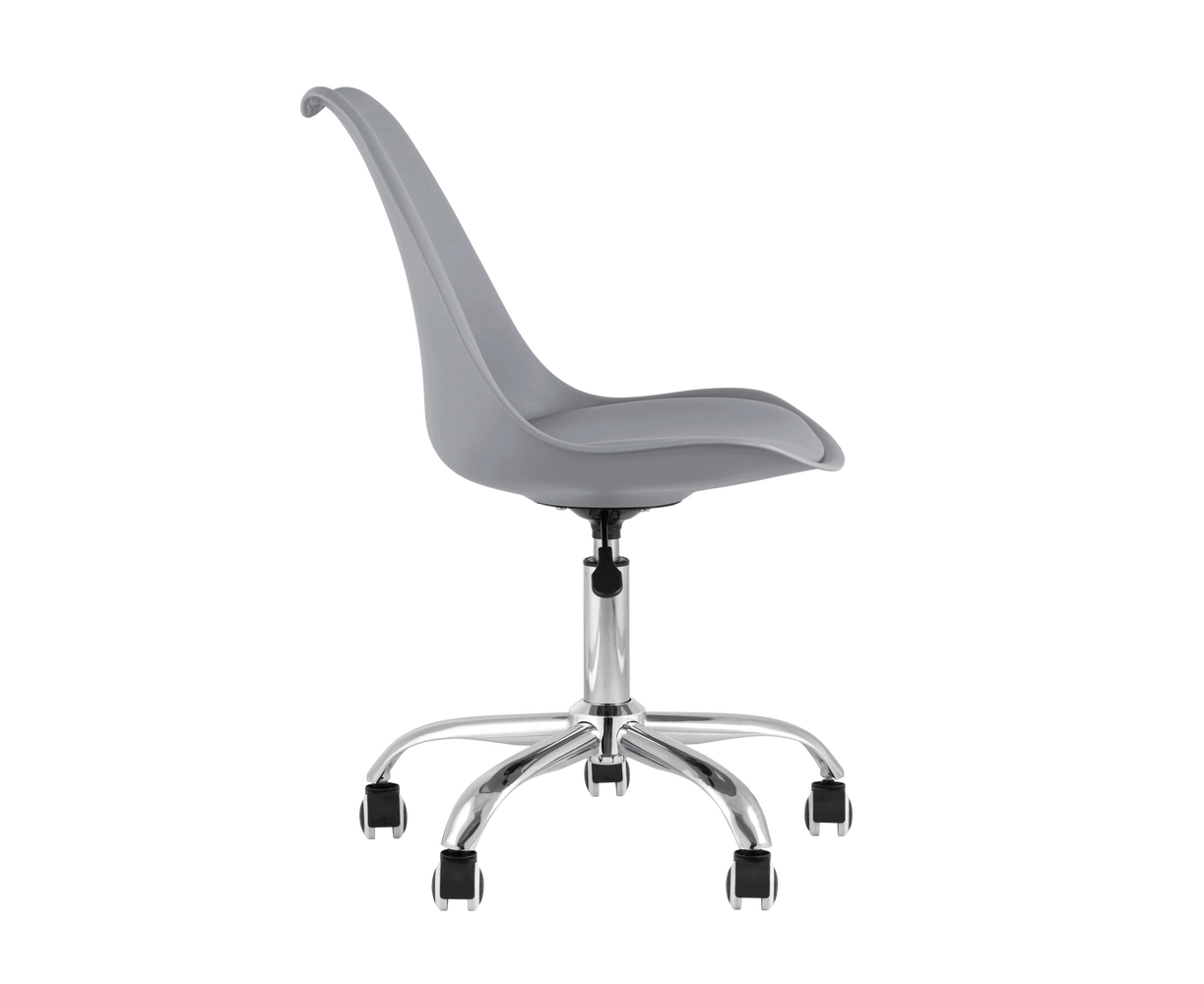 Дизайнерский офисный стул на металлической крестовине. Сиденье выполнено из экокожи, устойчивой к повреждениям. Каркас сиденья плавно перетекает в аккуратную спинку - они выполнены из высококачественного пластика.
