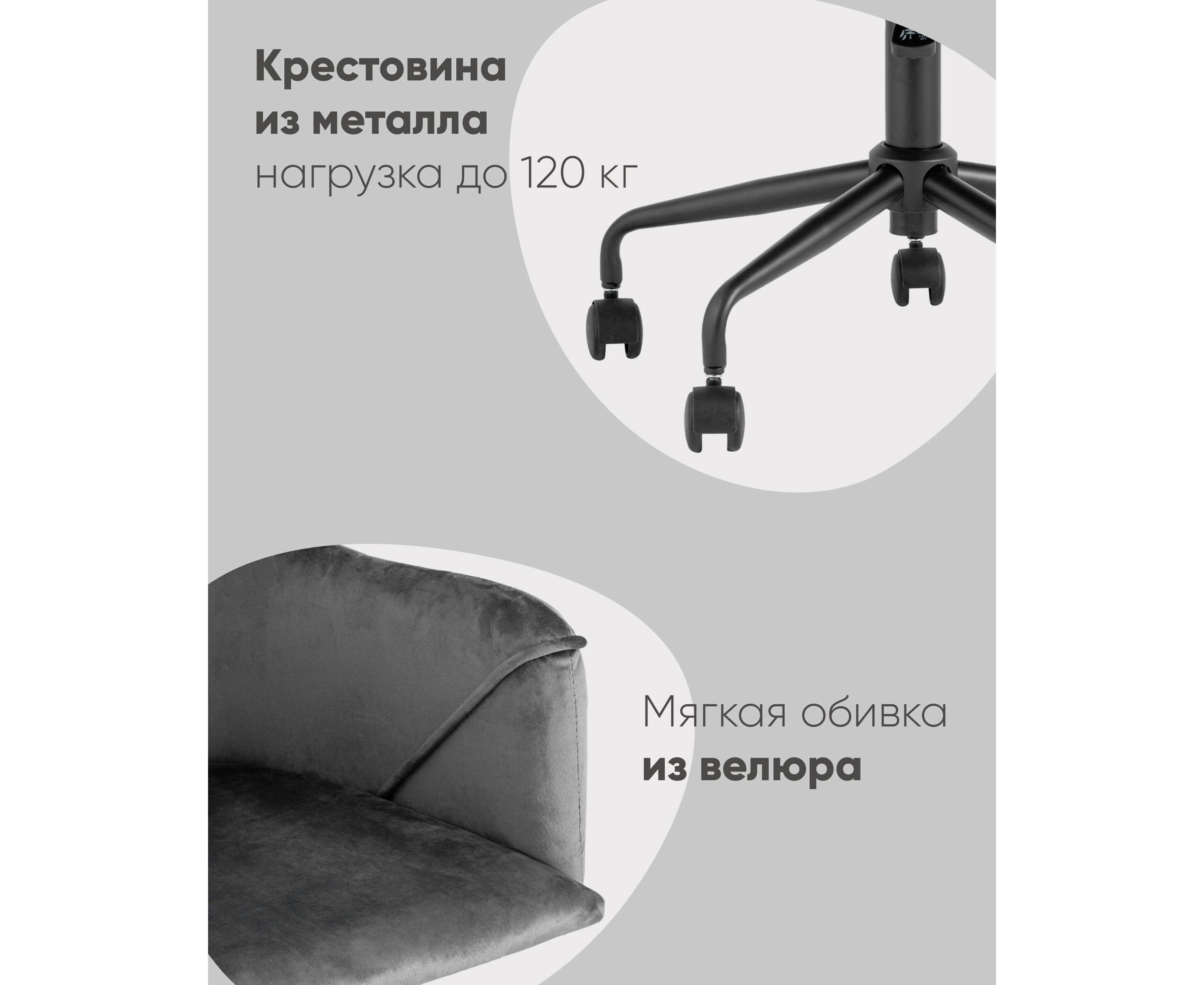 Стильный офисный стул из велюра. Дизайнерская форма добавит помещению уюта и стиля, а обивка из велюра выглядит очень изысканно.