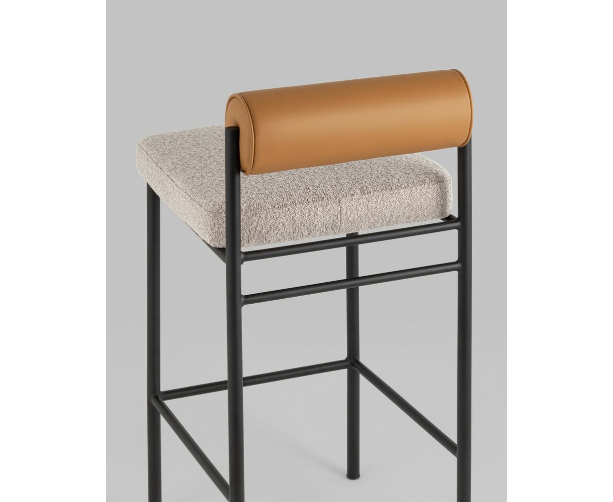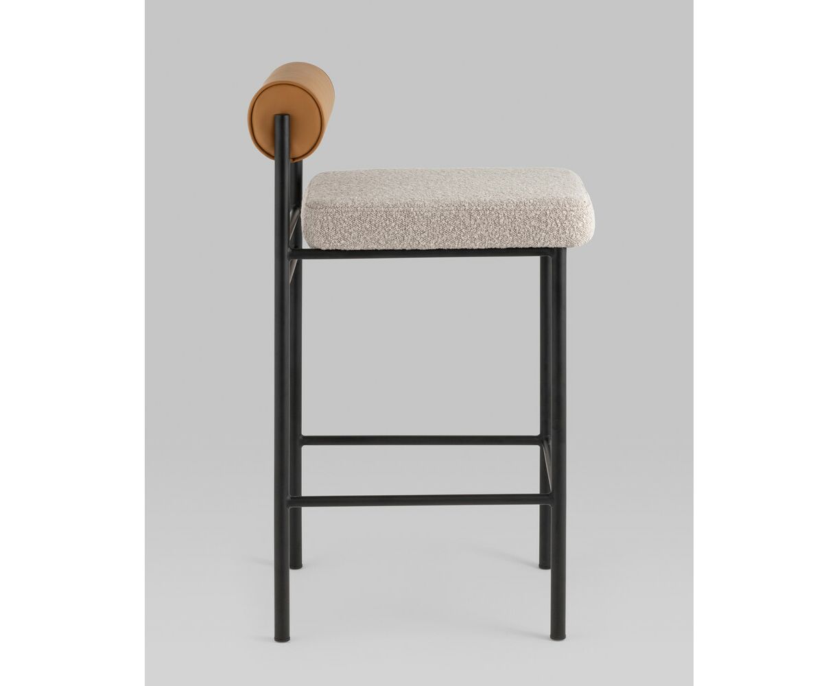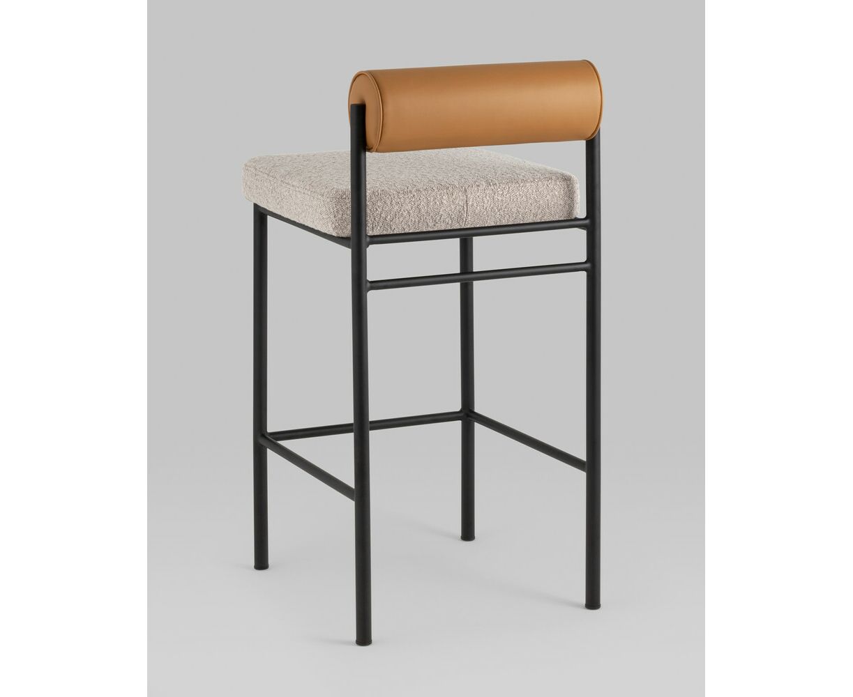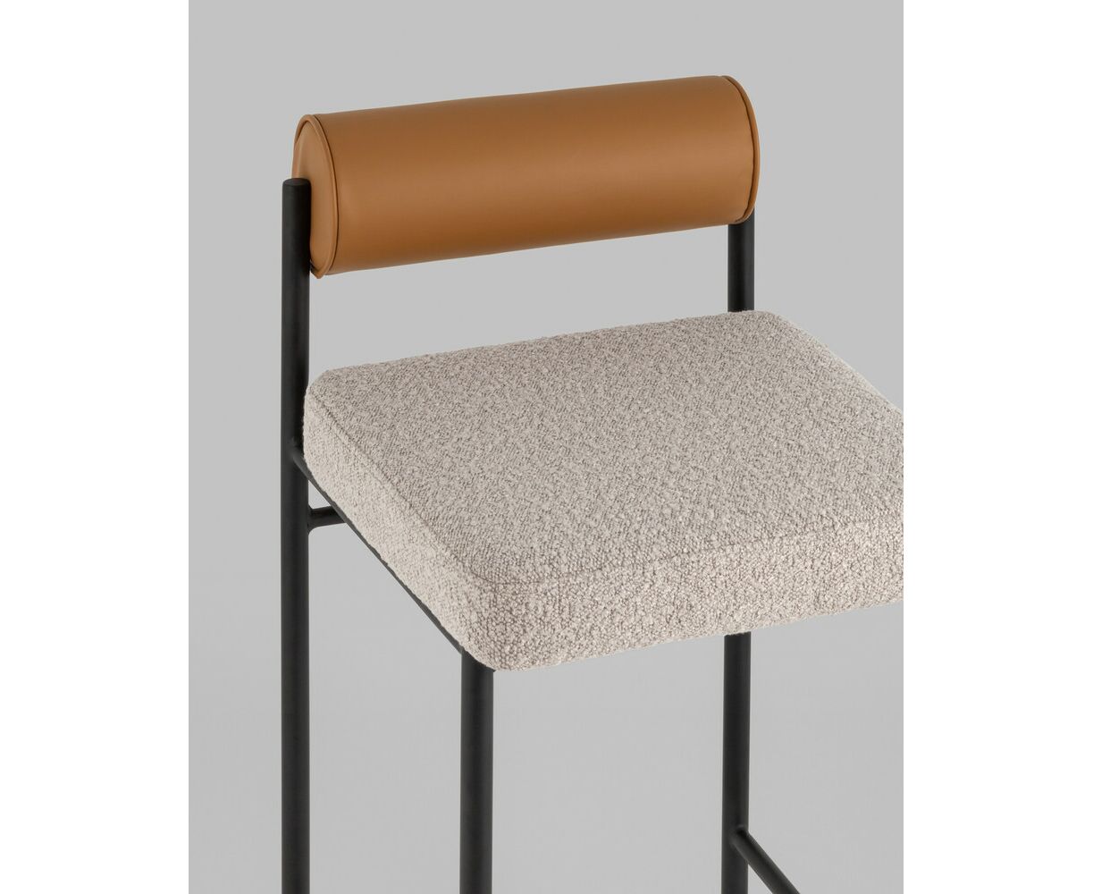 Стул полубарный Балла бежевый сиденье букле, со спинкой в форме валика экокожа, ножки черные металл