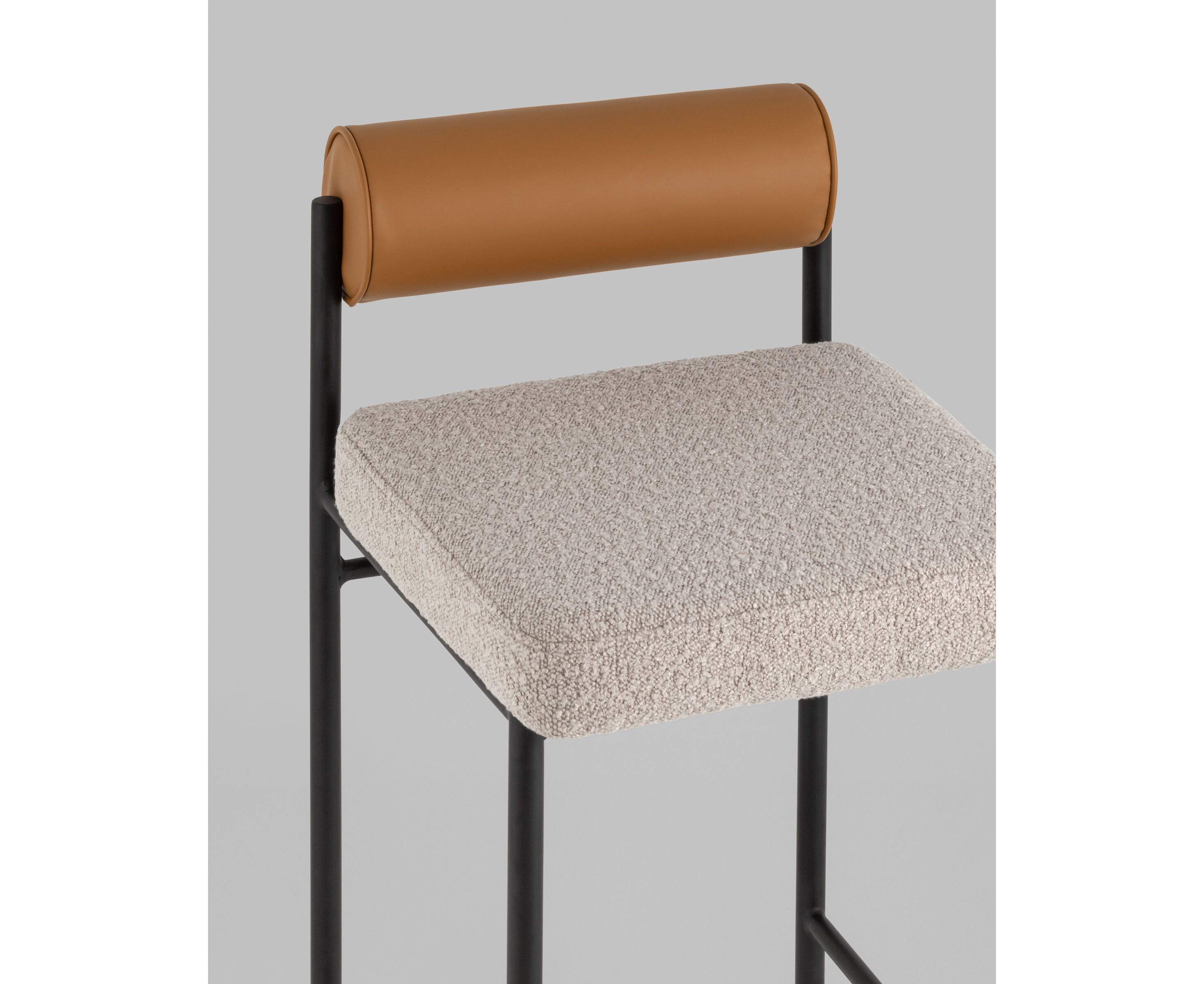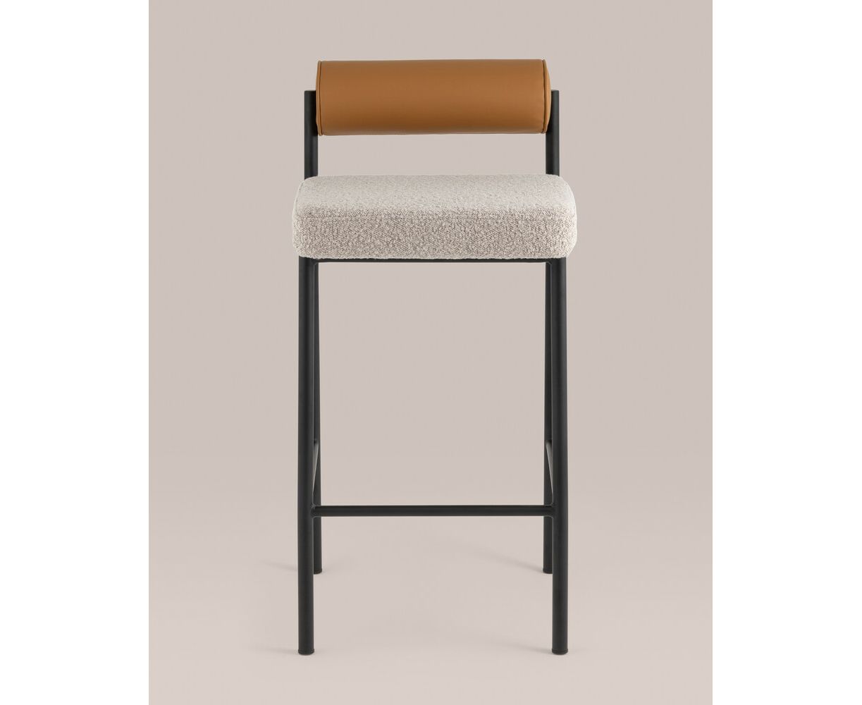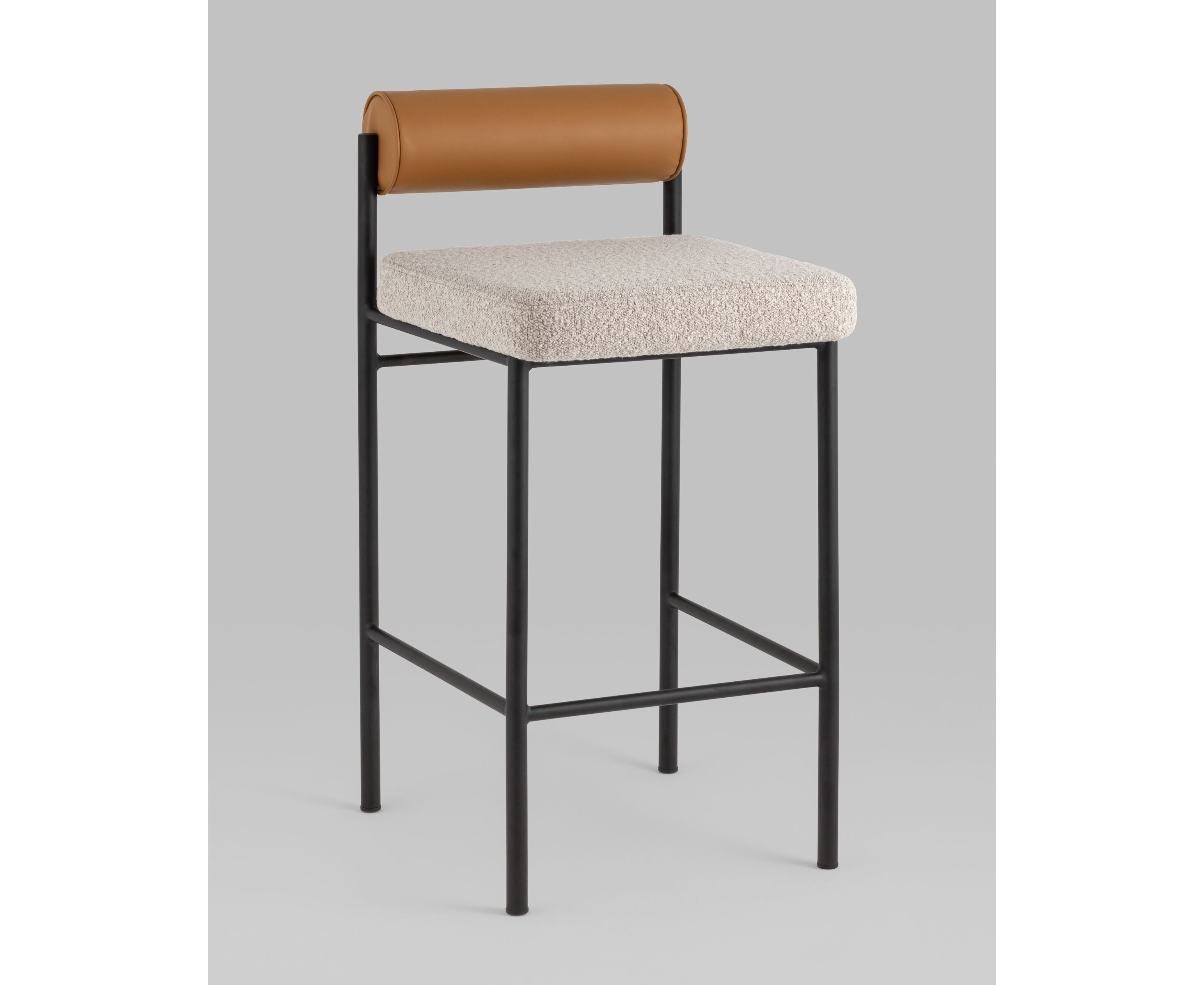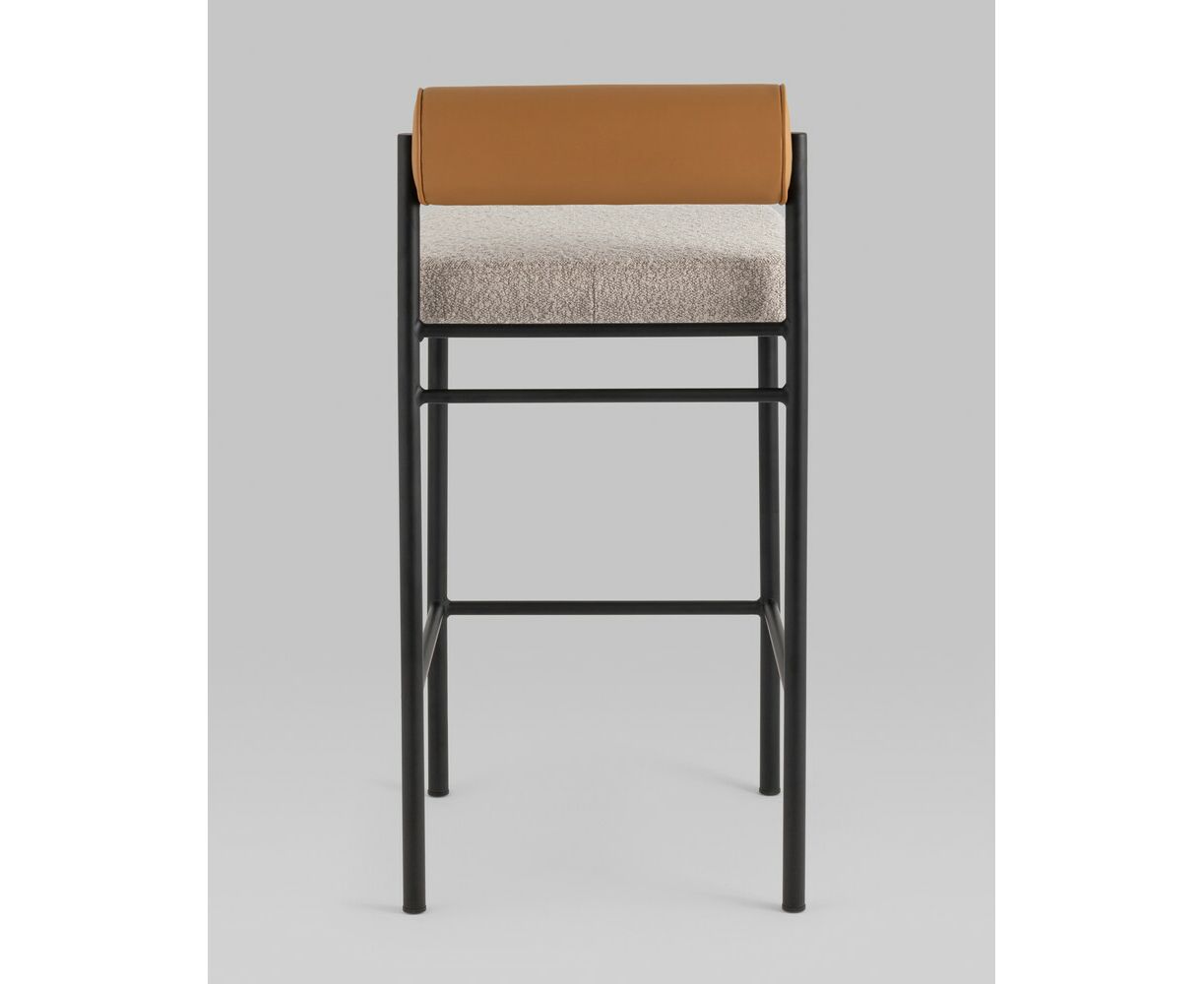 Стул полубарный Балла бежевый сиденье букле, со спинкой в форме валика экокожа, ножки черные металл