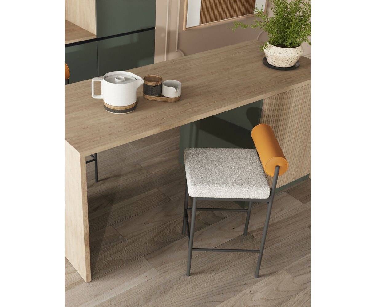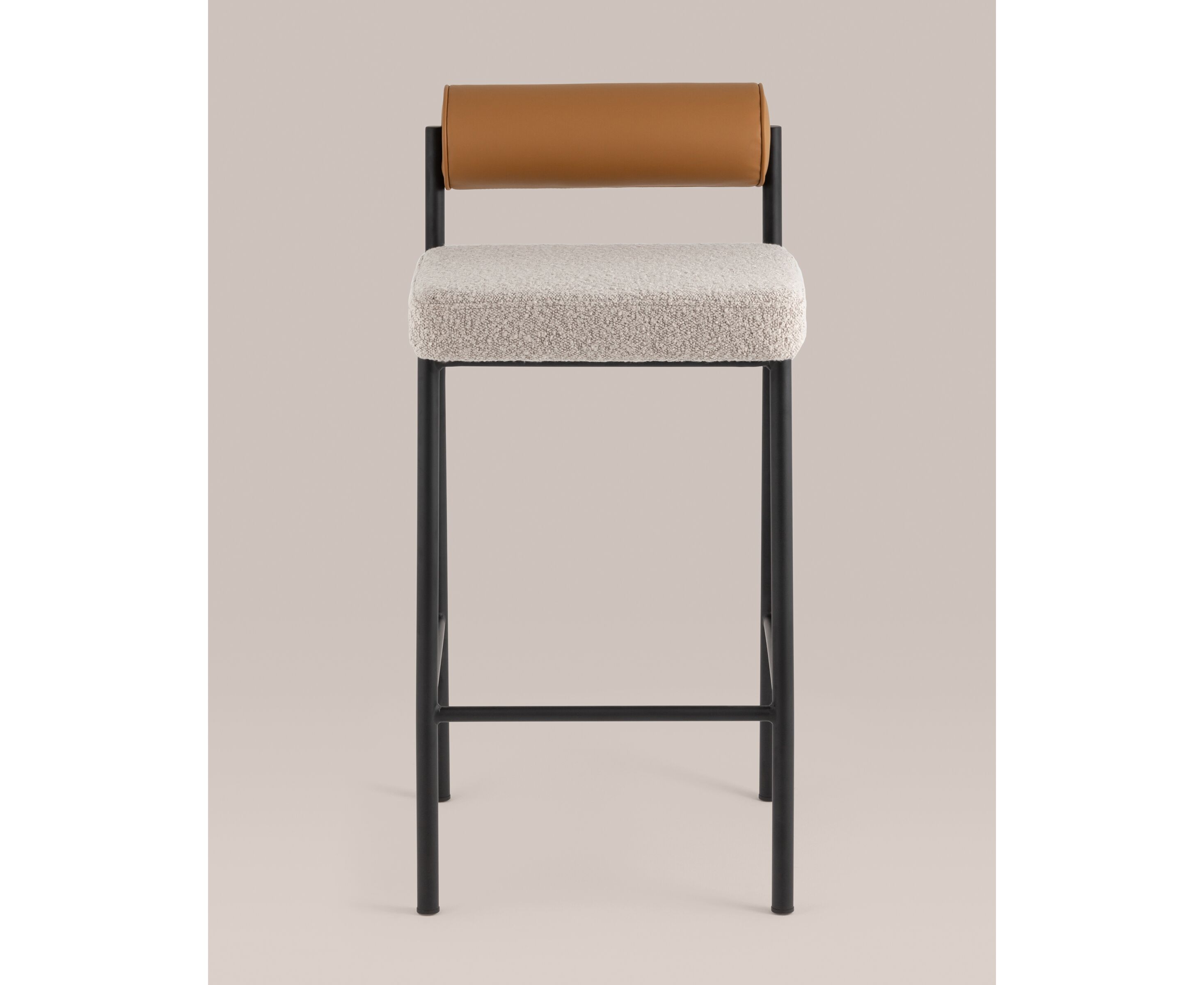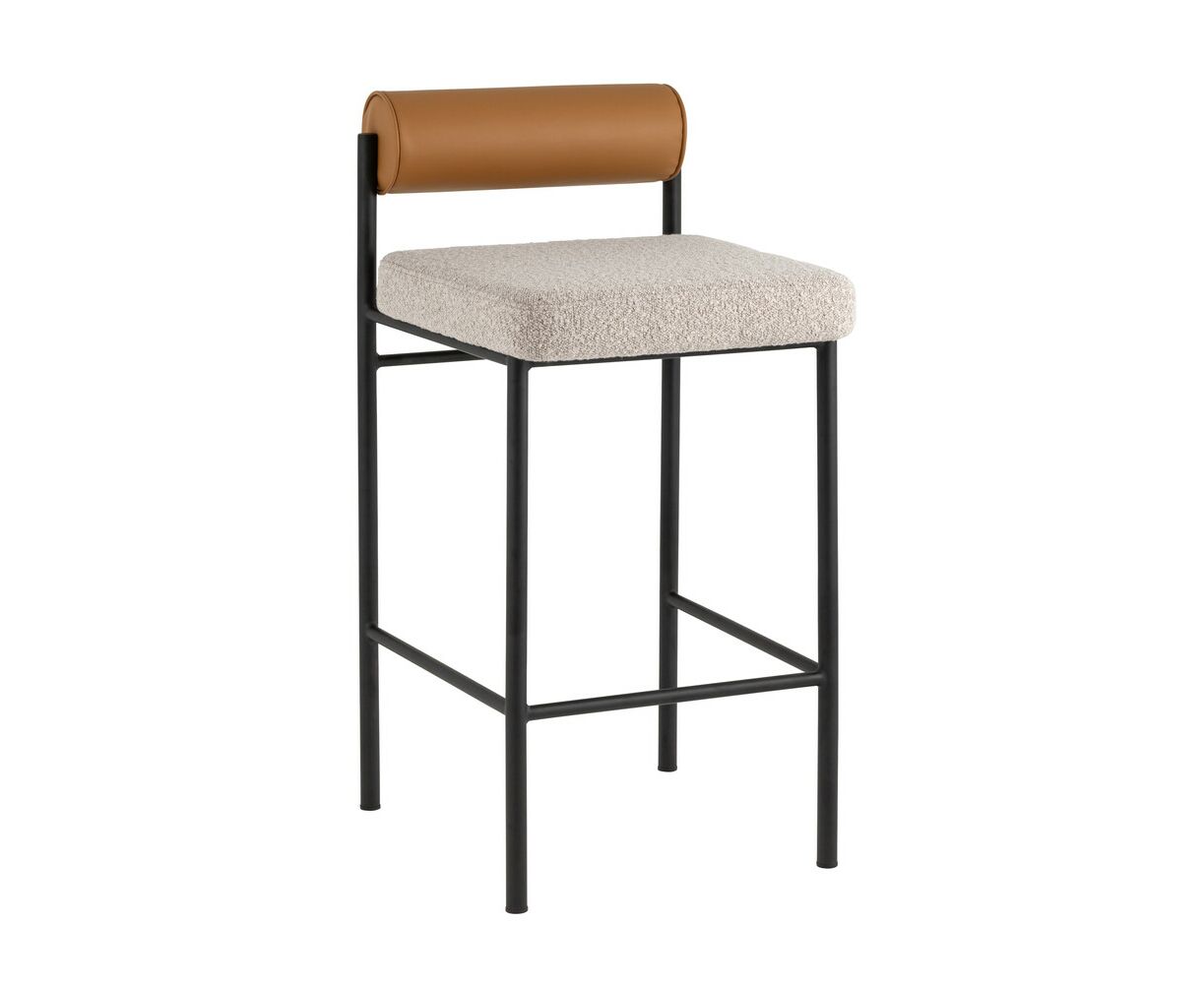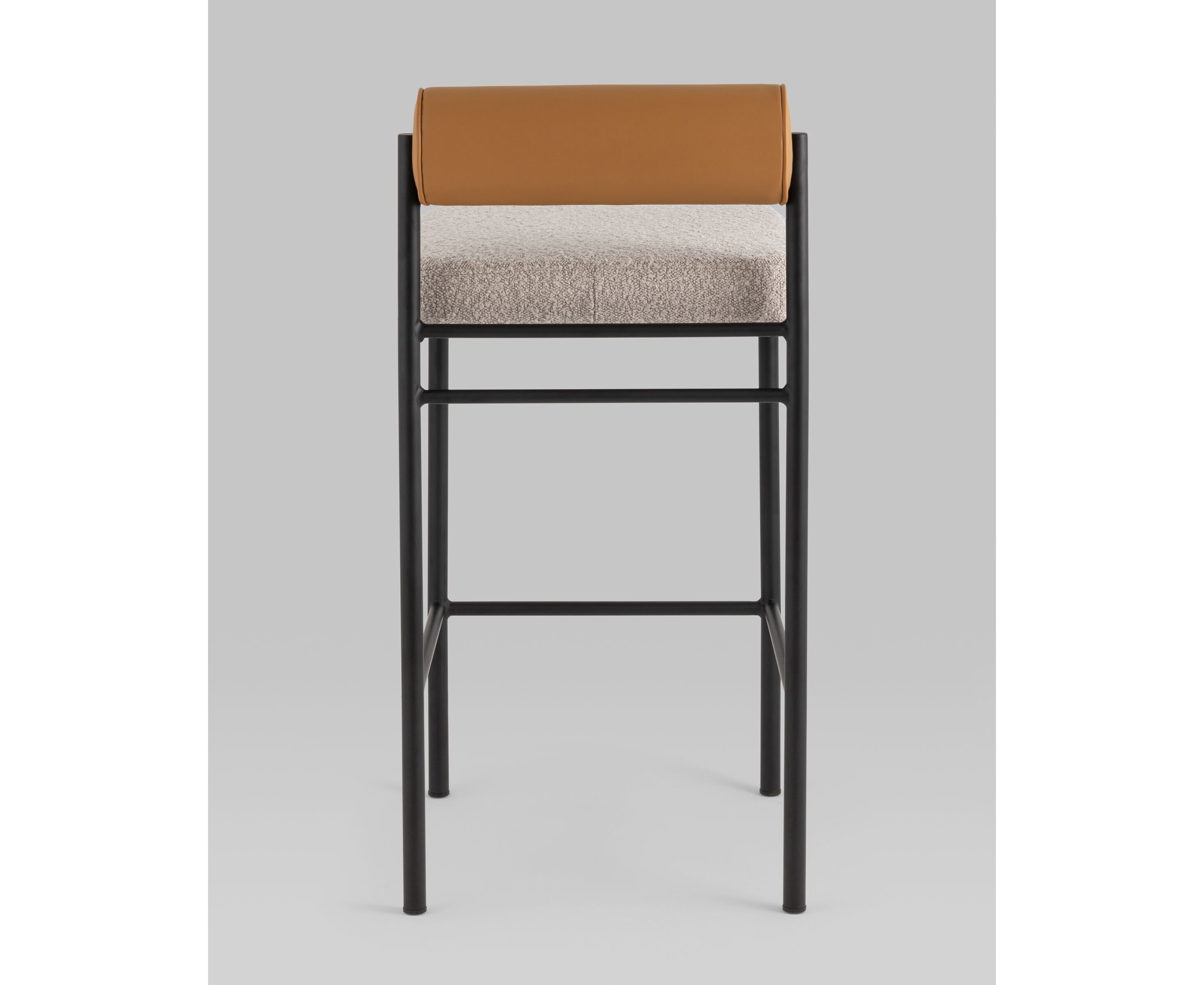 Стул полубарный Балла бежевый сиденье букле, со спинкой в форме валика экокожа, ножки черные металл