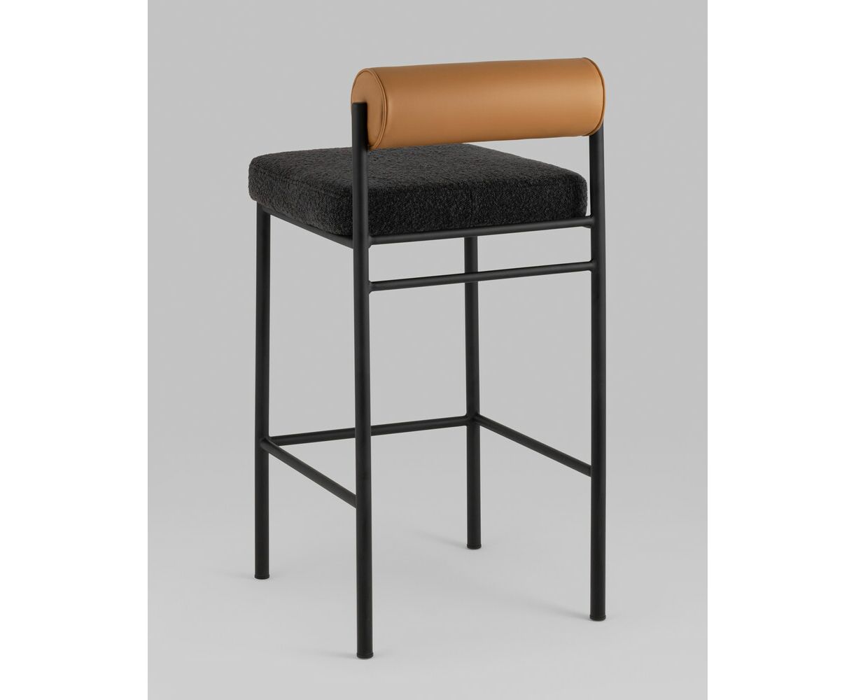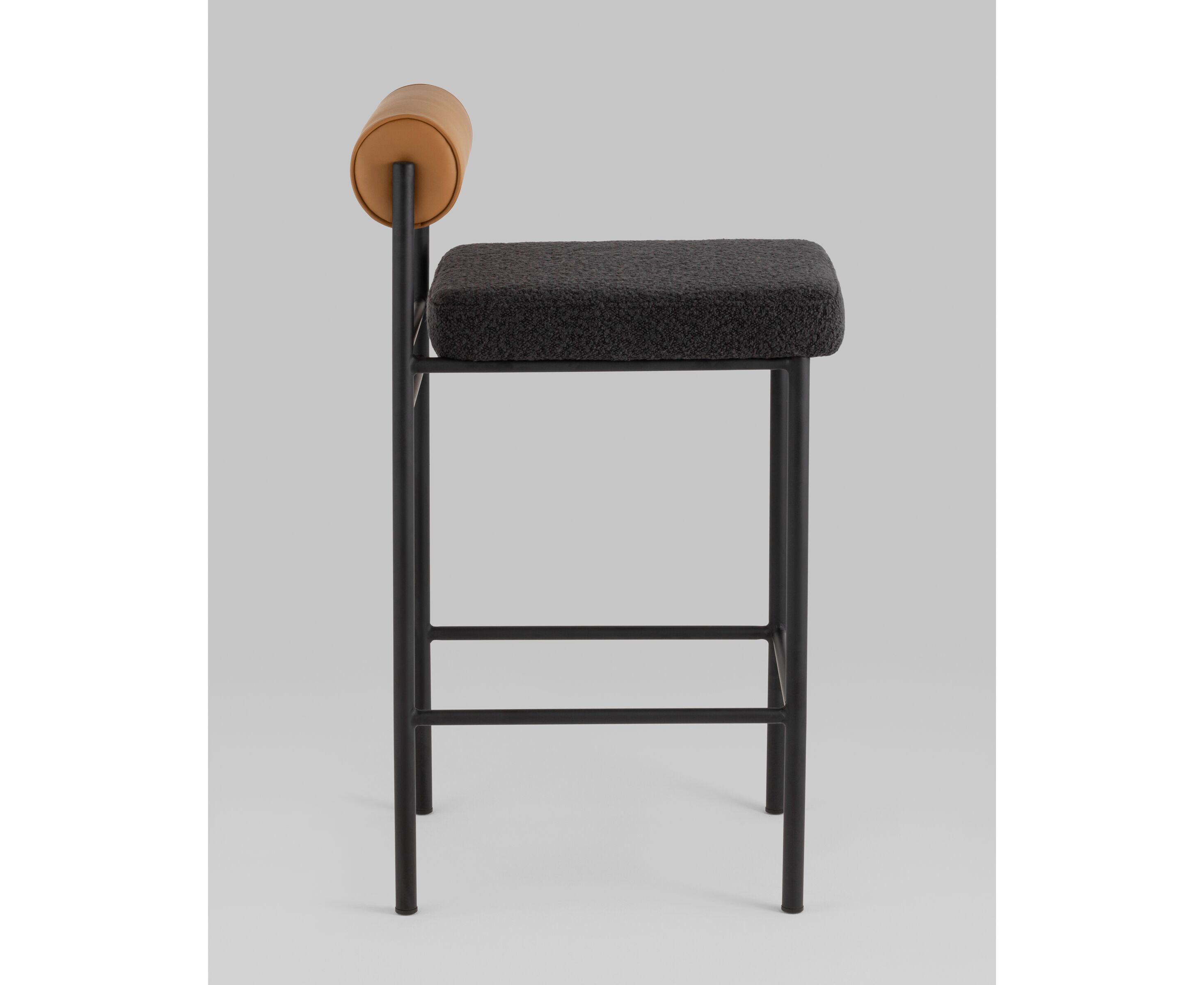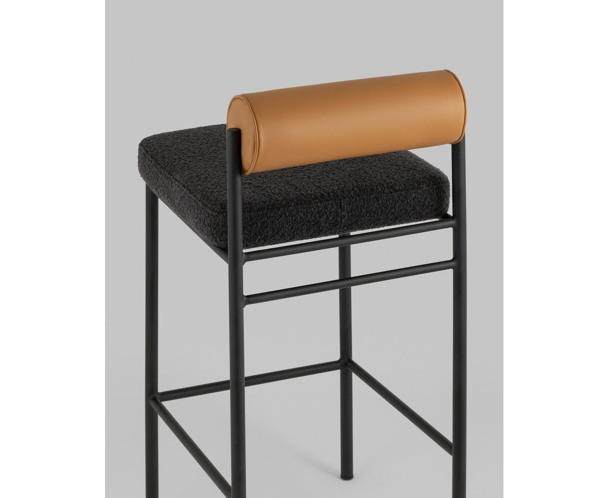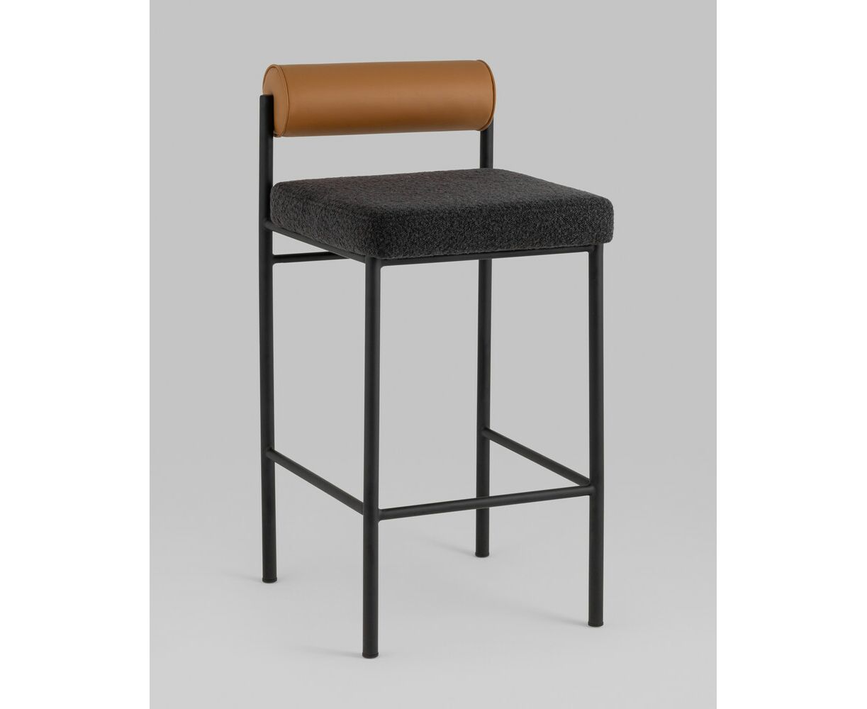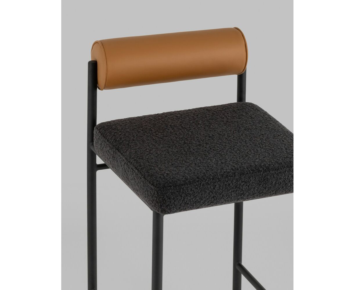 Стул полубарный Балла темно-серый сиденье букле, со спинкой в форме валика экокожа, ножки черные металл