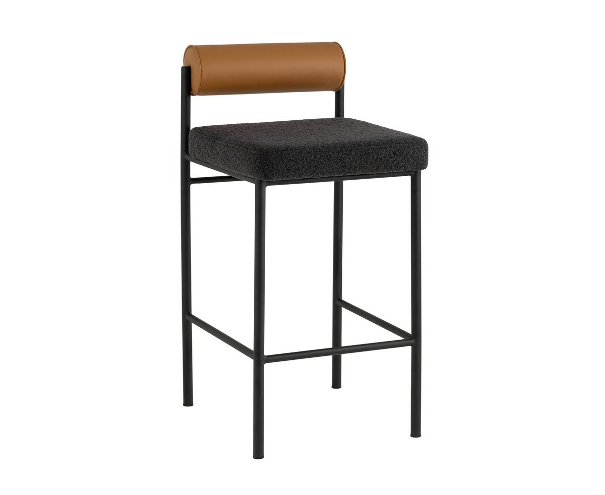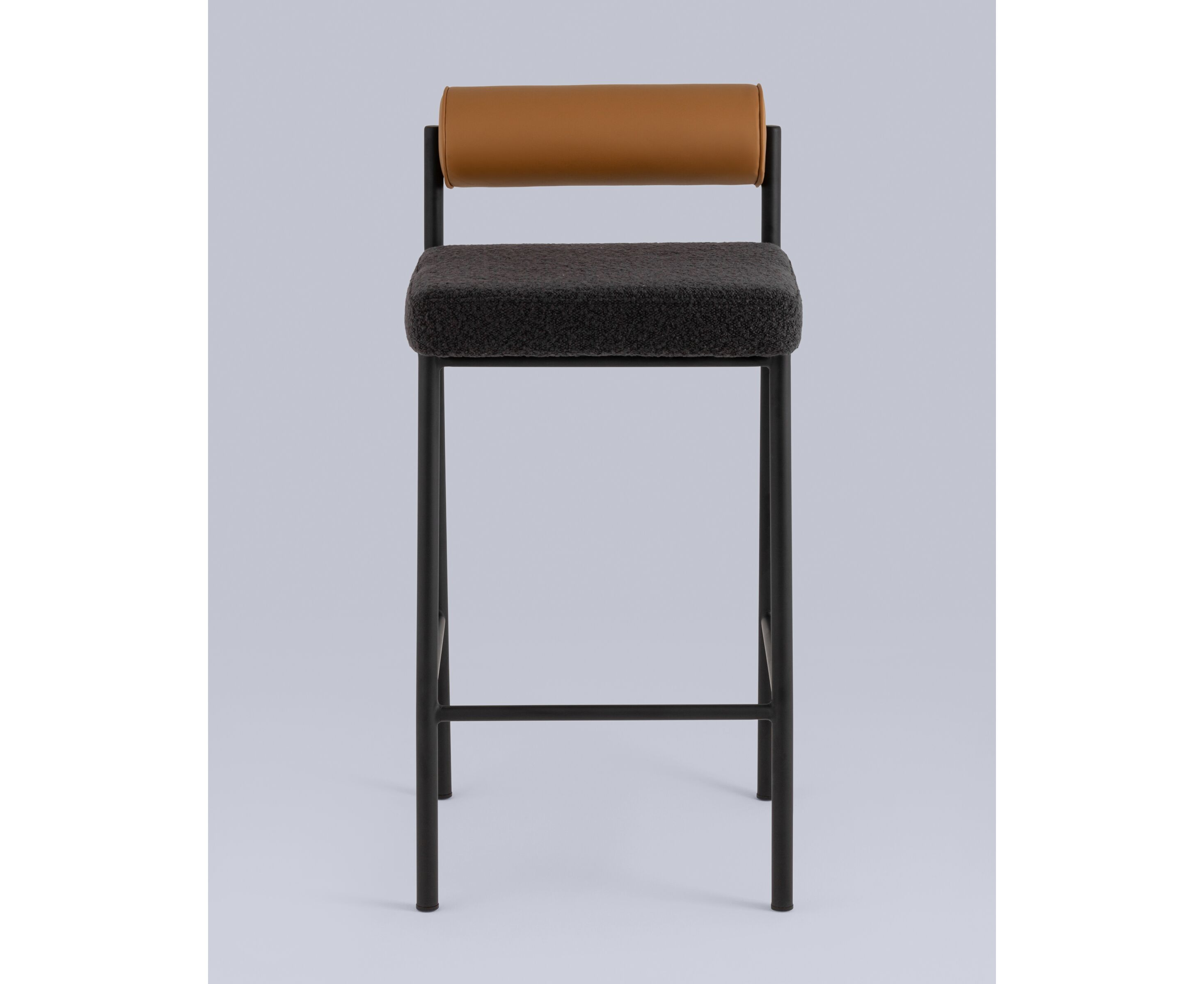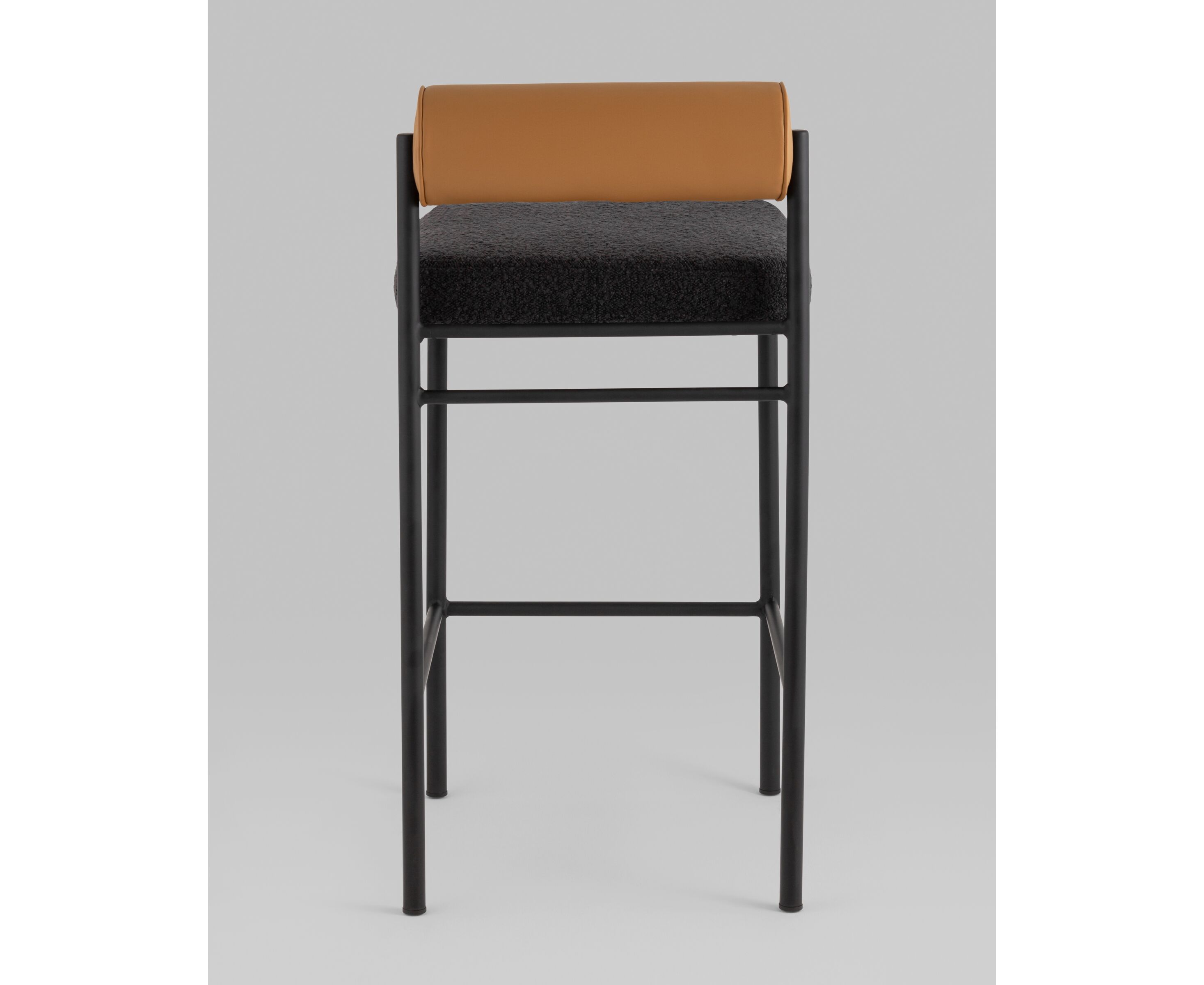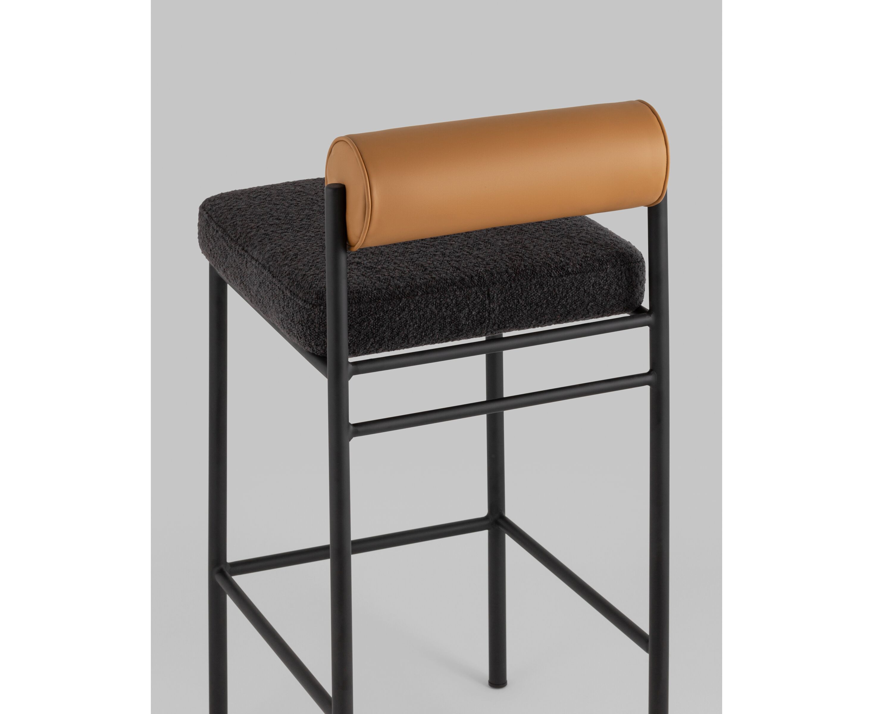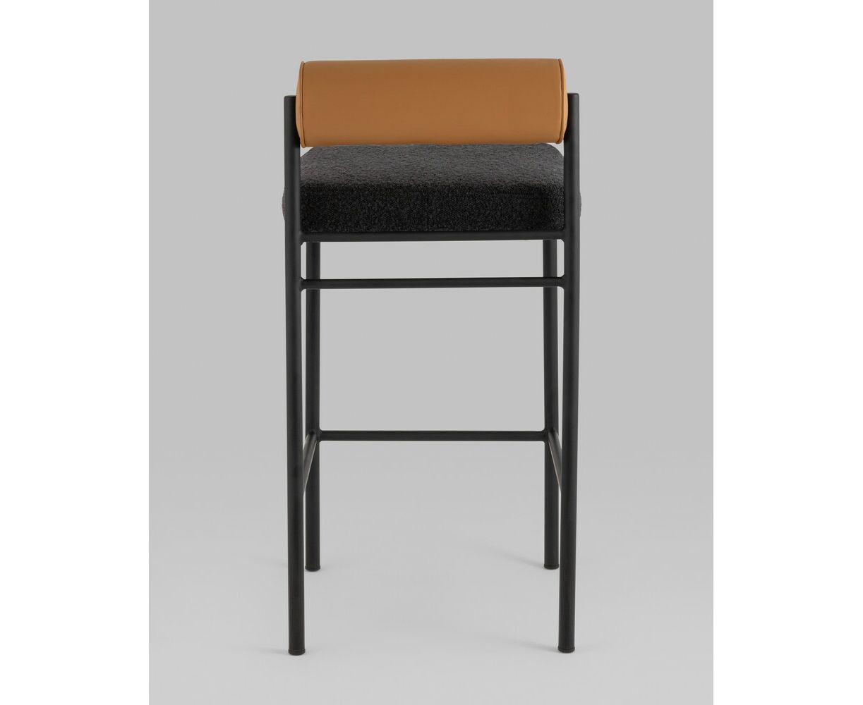 Стул полубарный Балла темно-серый сиденье букле, со спинкой в форме валика экокожа, ножки черные металл