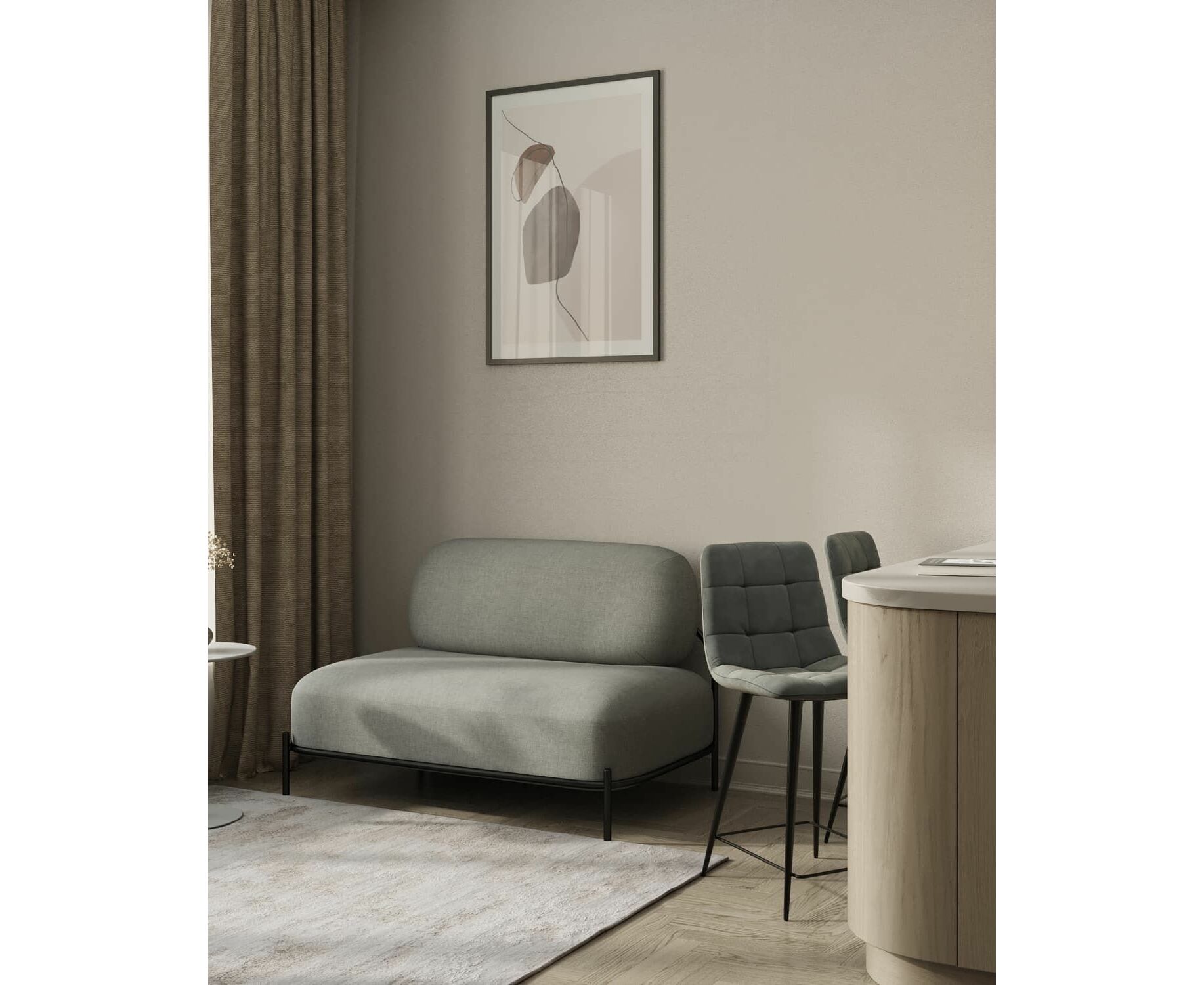 Плавная форма сиденья и спинки обеспечивают комфортную посадку. Красивая строчка на внутренней стороне велюровой обивки, эргономичная спинка, аккуратное исполнение и качественные материалы. Ножки выполнены из металла.