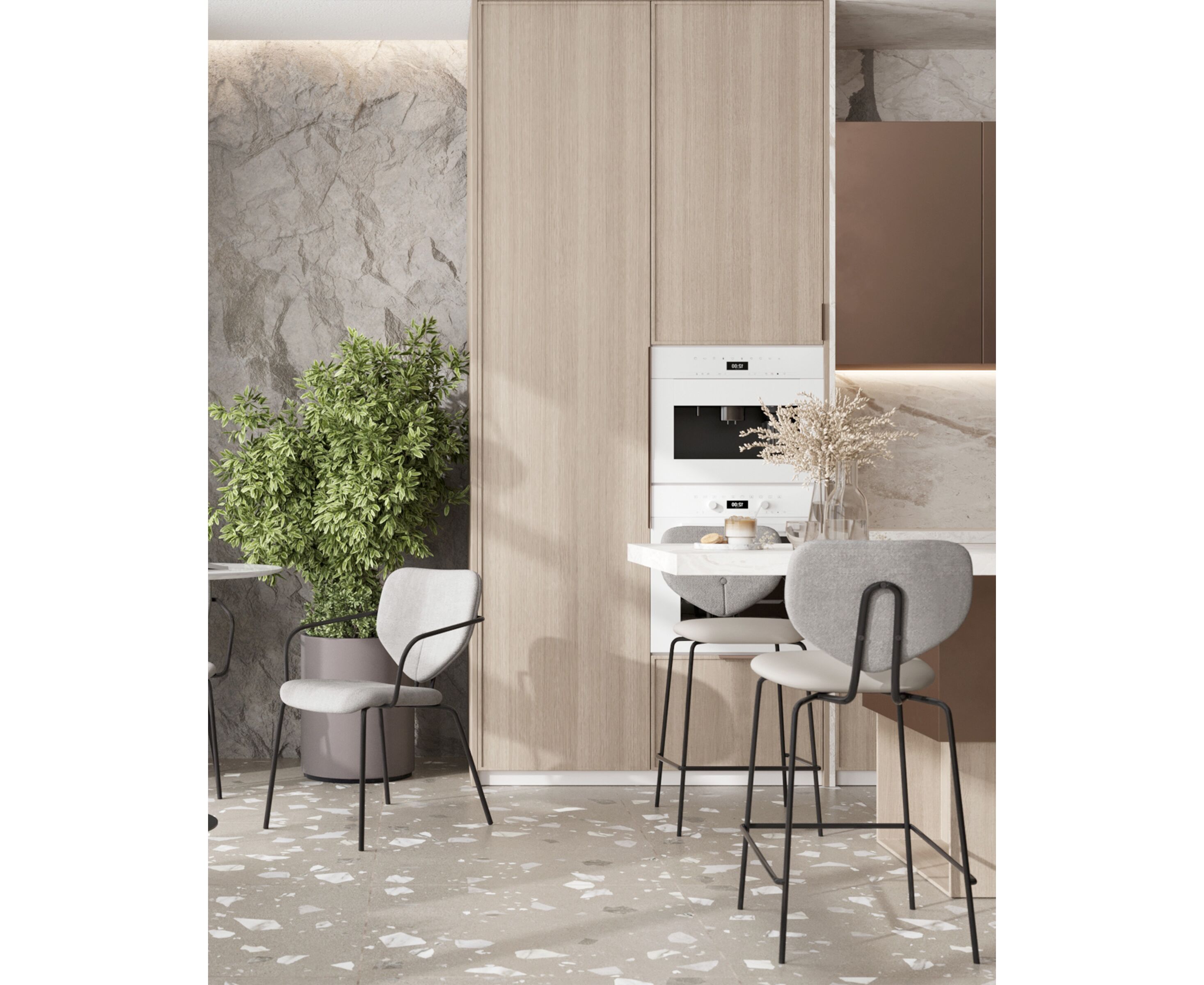 Стул полубарный Masey серый с серой экокожей