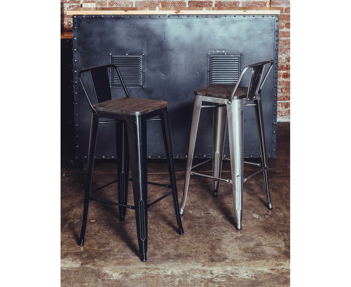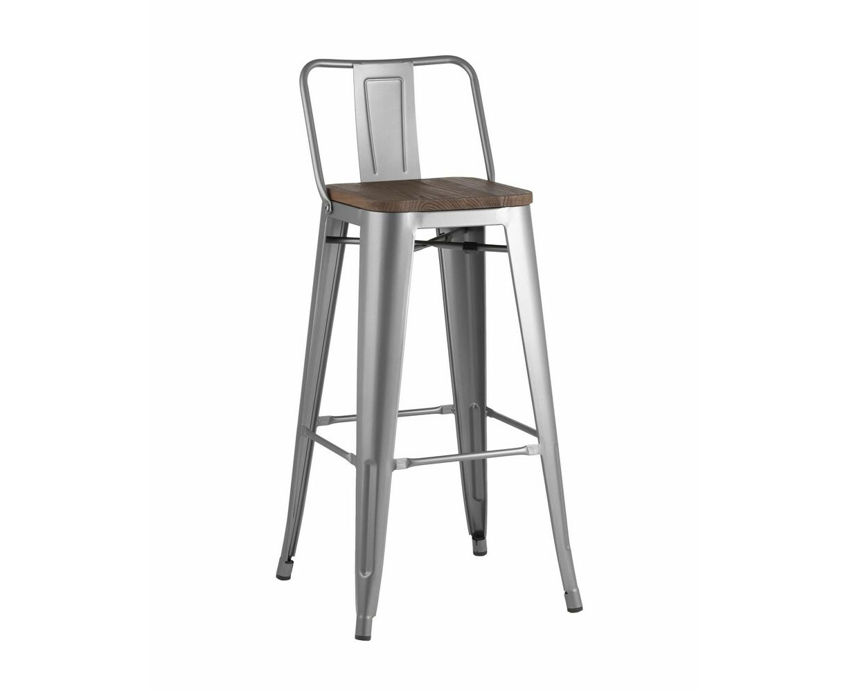 Стул полубарный TOLIX WOOD со спинкой серебристый матовый