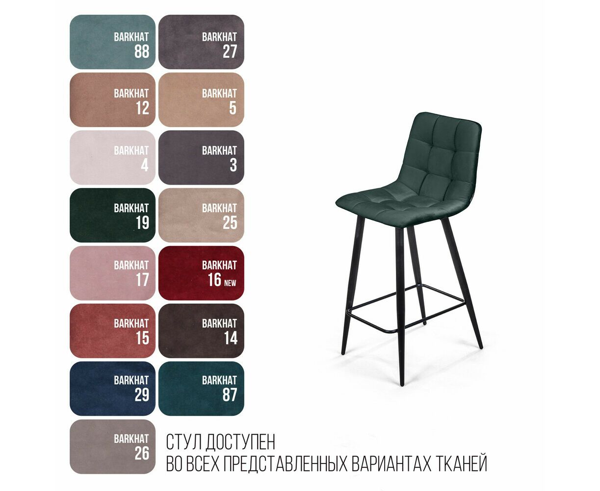 Стул полубарный Уно, бархат зелёный 19/ чёрный конус