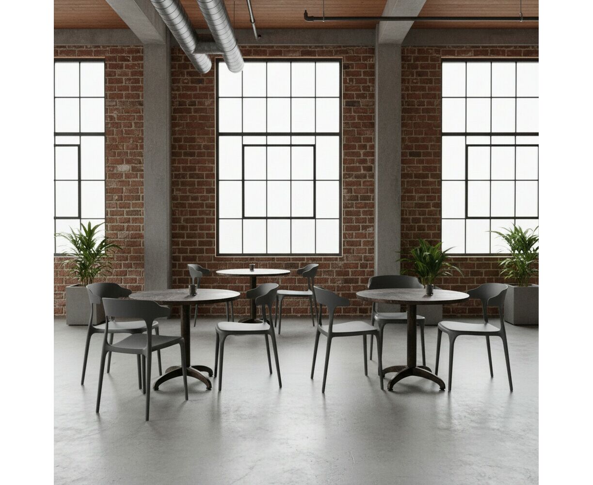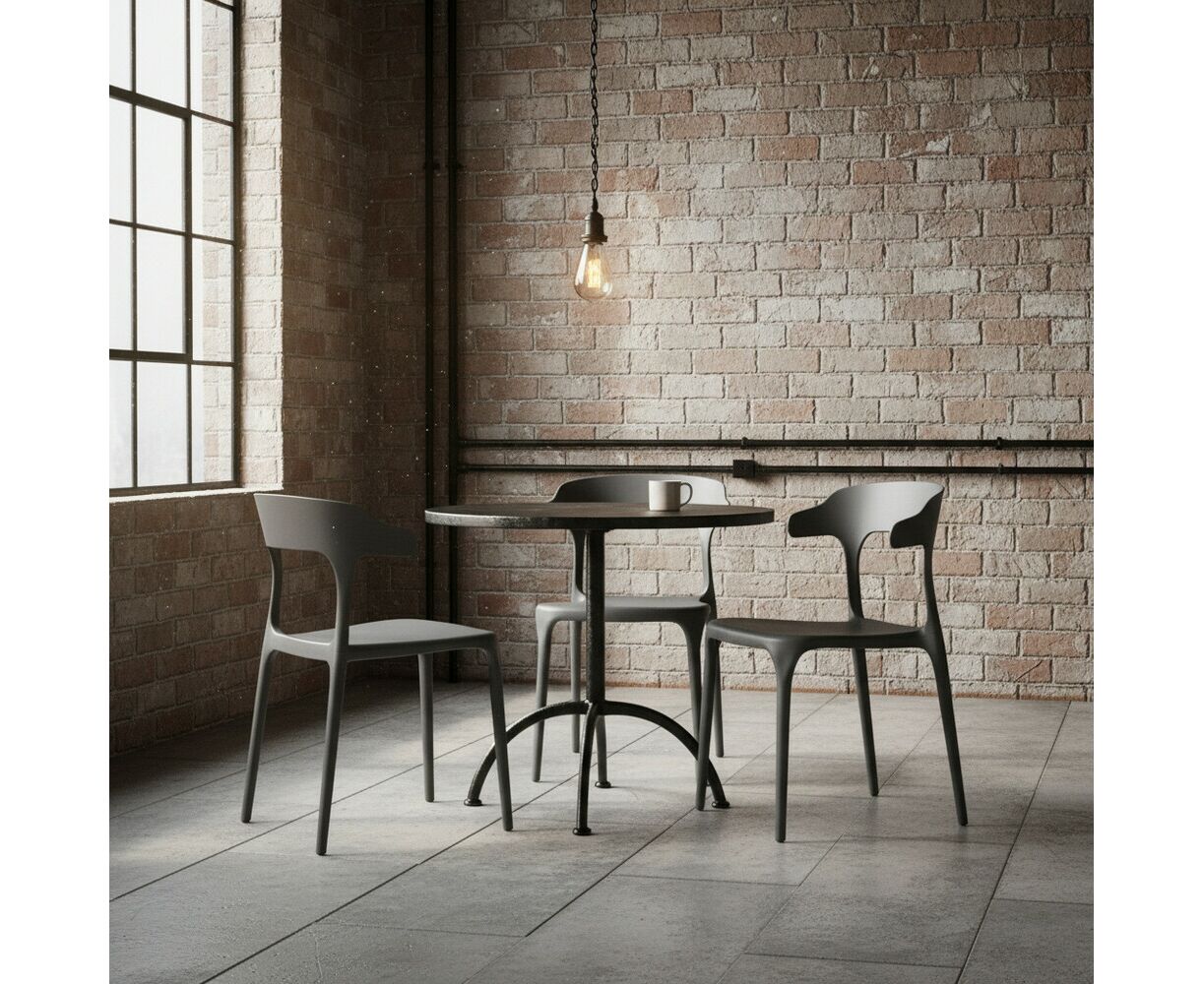 - Удобство хранения и транспортировки. Стулья штабелируются (вкладываются друг в друга), сокращая занимаемый объём в 3–4 раза. Это особенно актуально для заведений с сезонной посадкой (кафе, отели) или при частых переездах.